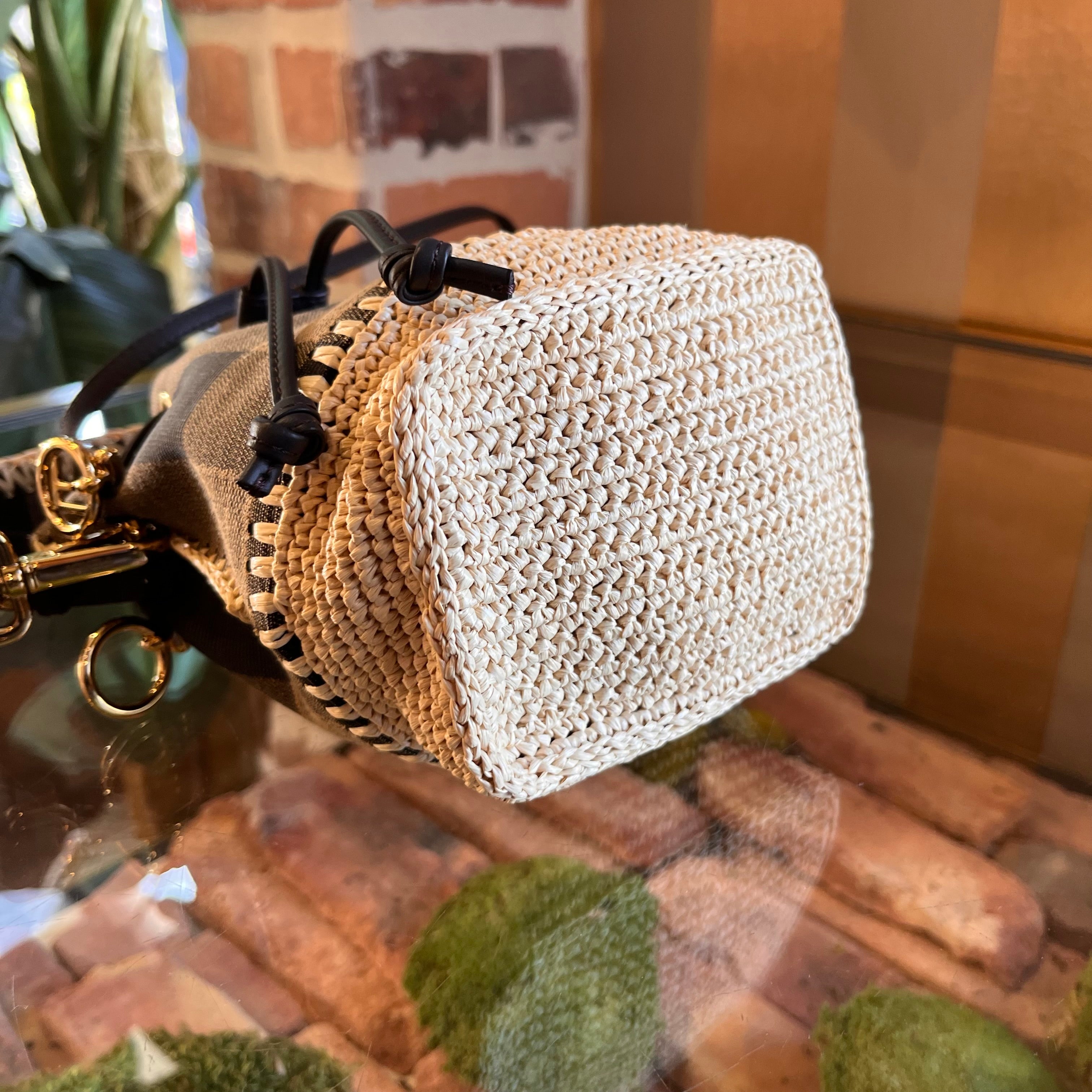 FENDI Mon Tresor Mini Brown Raffia Jacquard Bucket Bag