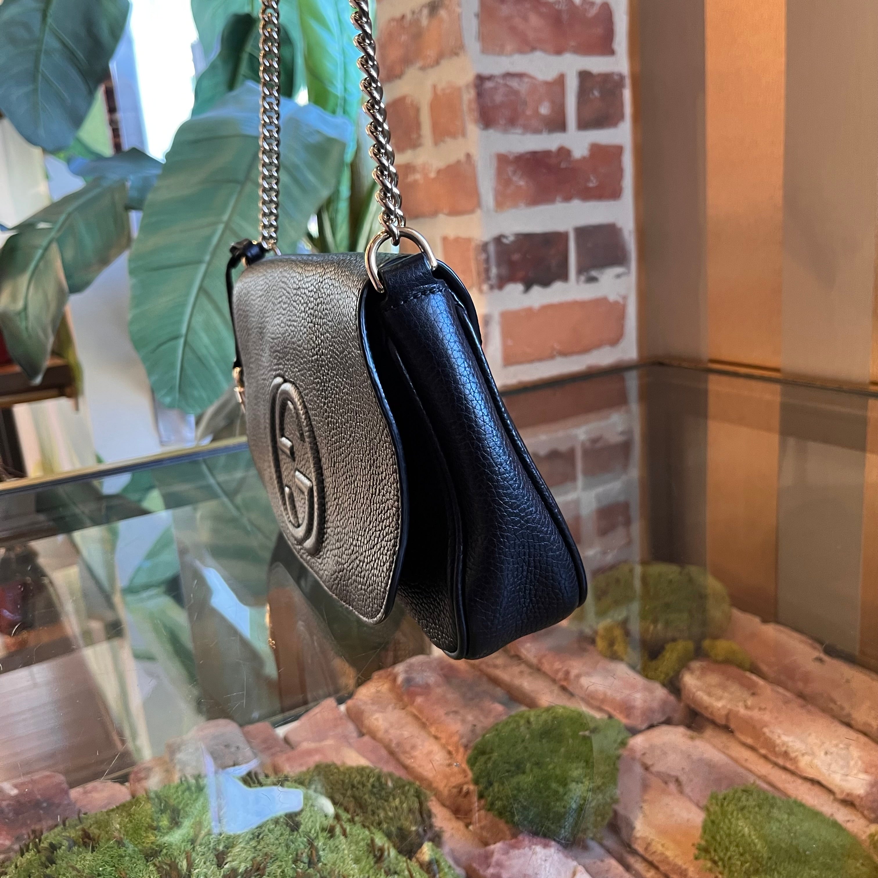 GUCCI Soho Flap Medium Black Pebbled Calfskin Crossbody
