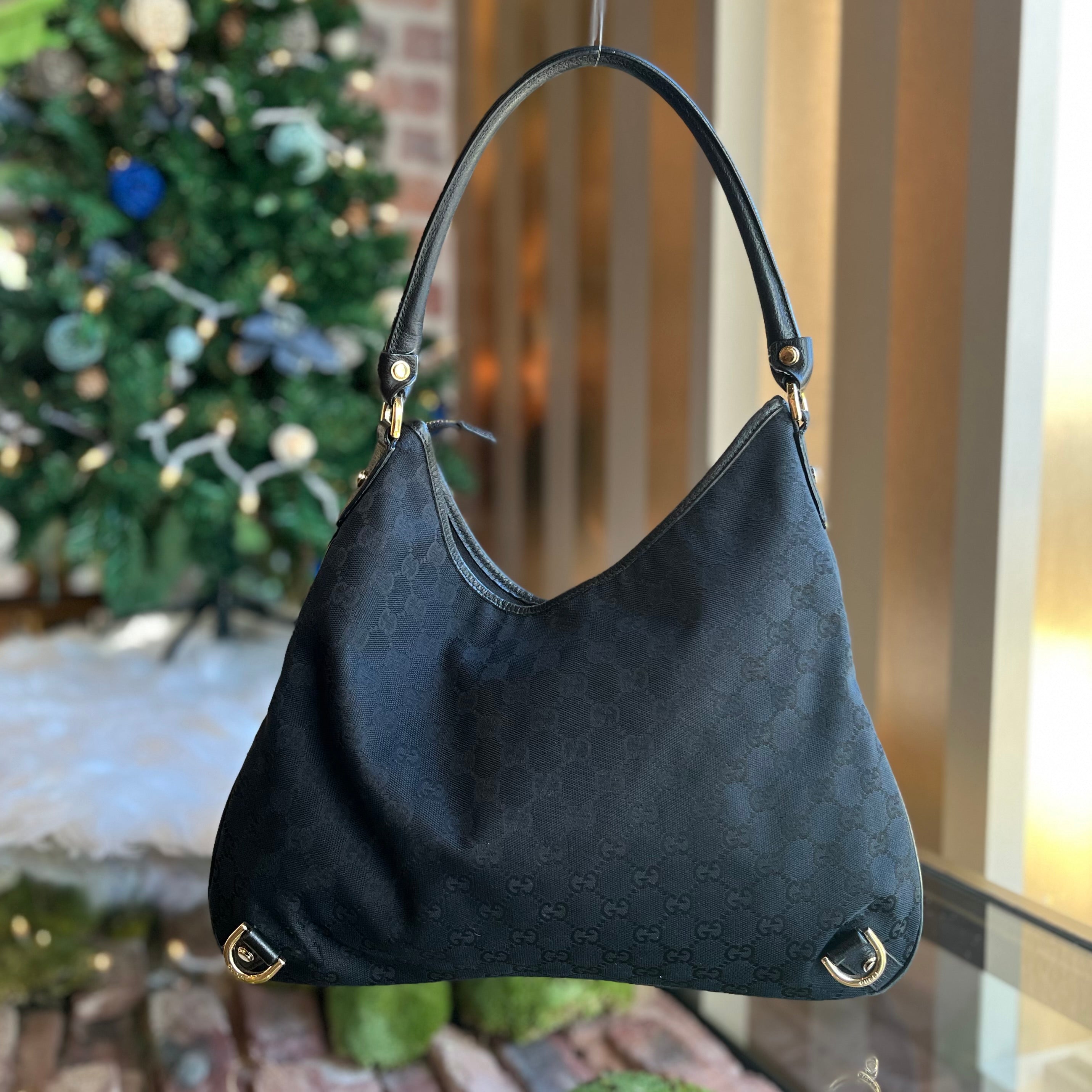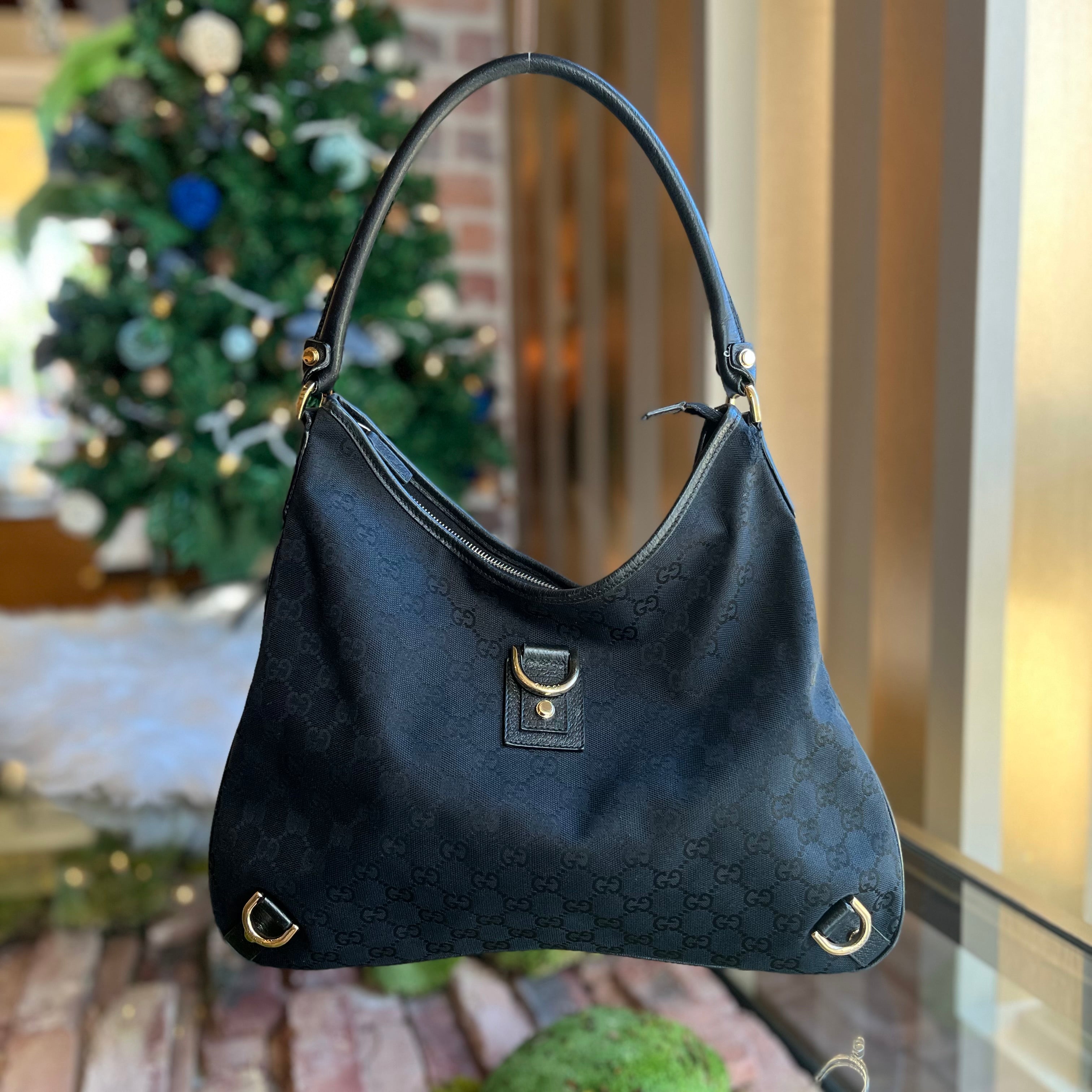 GUCCI Abbey D-Ring Black GG Canvas Tote