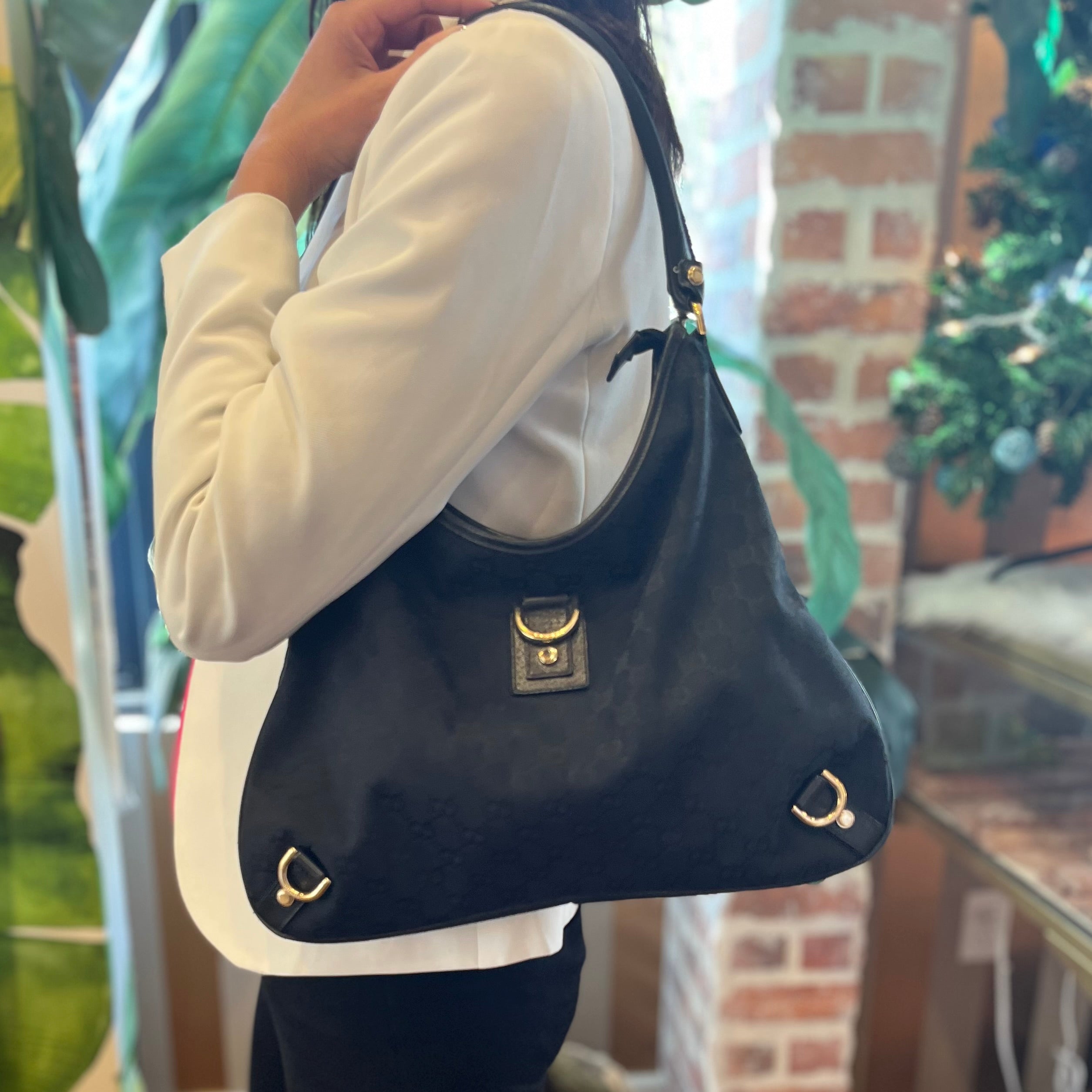 GUCCI Abbey D-Ring Black GG Canvas Tote Second-Hand Collections