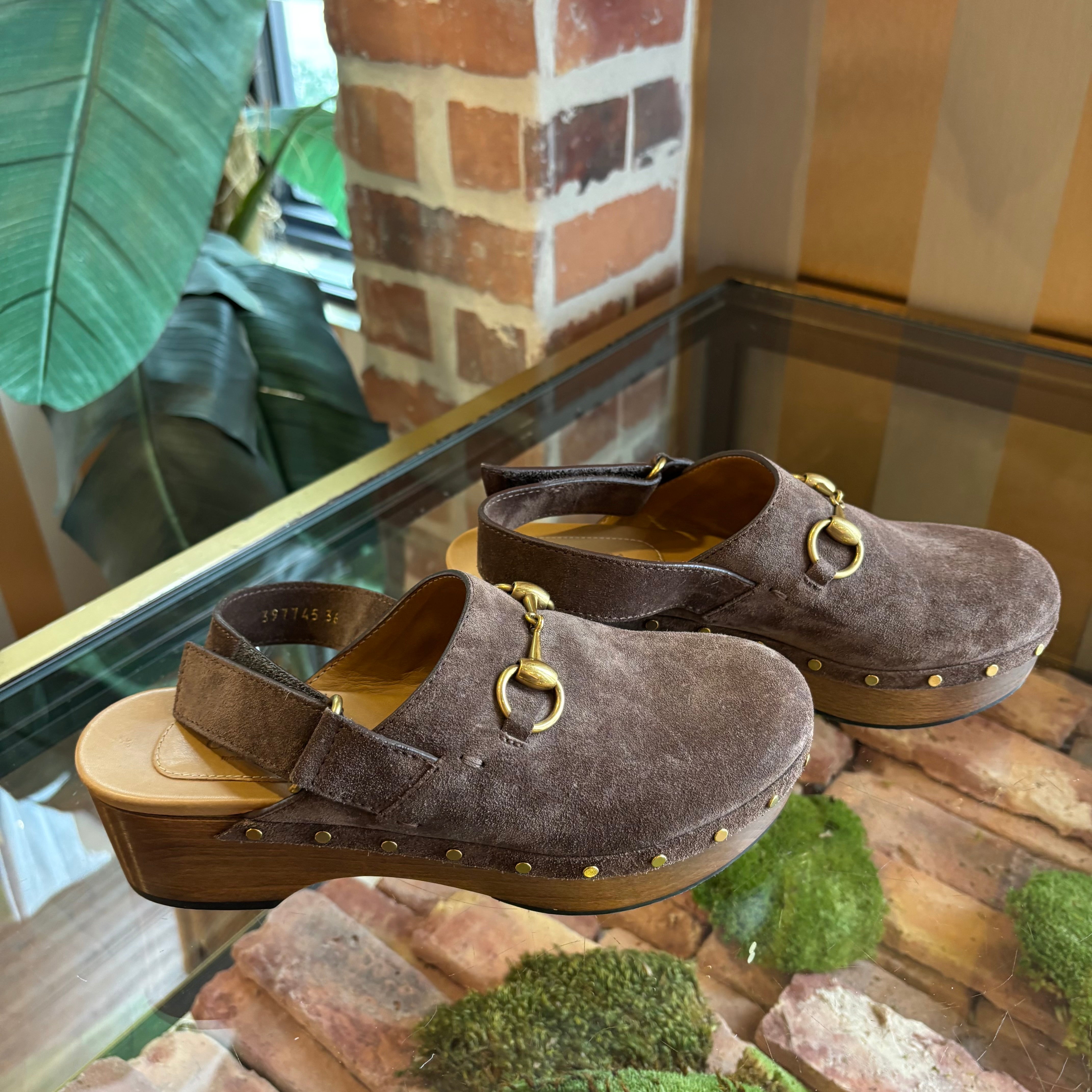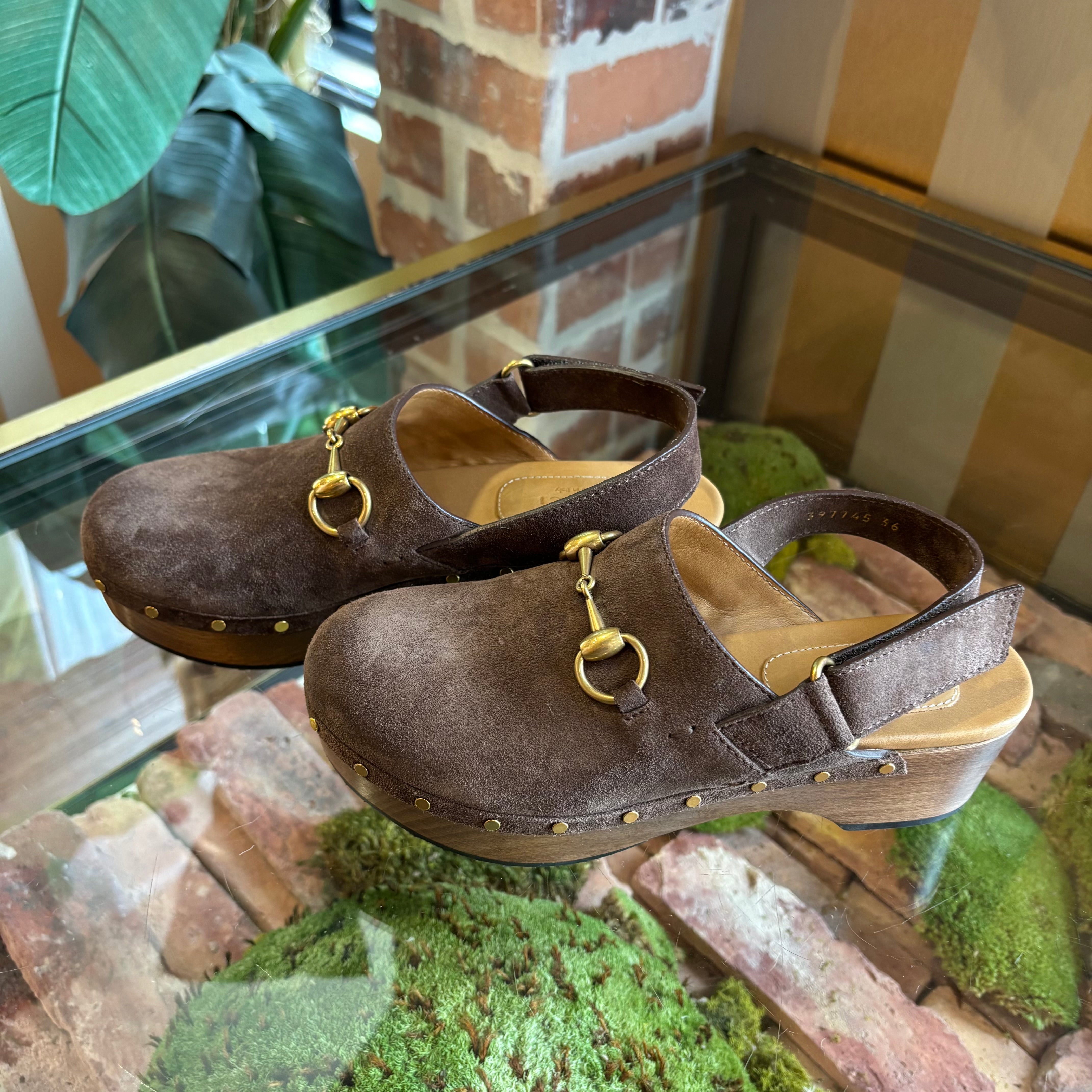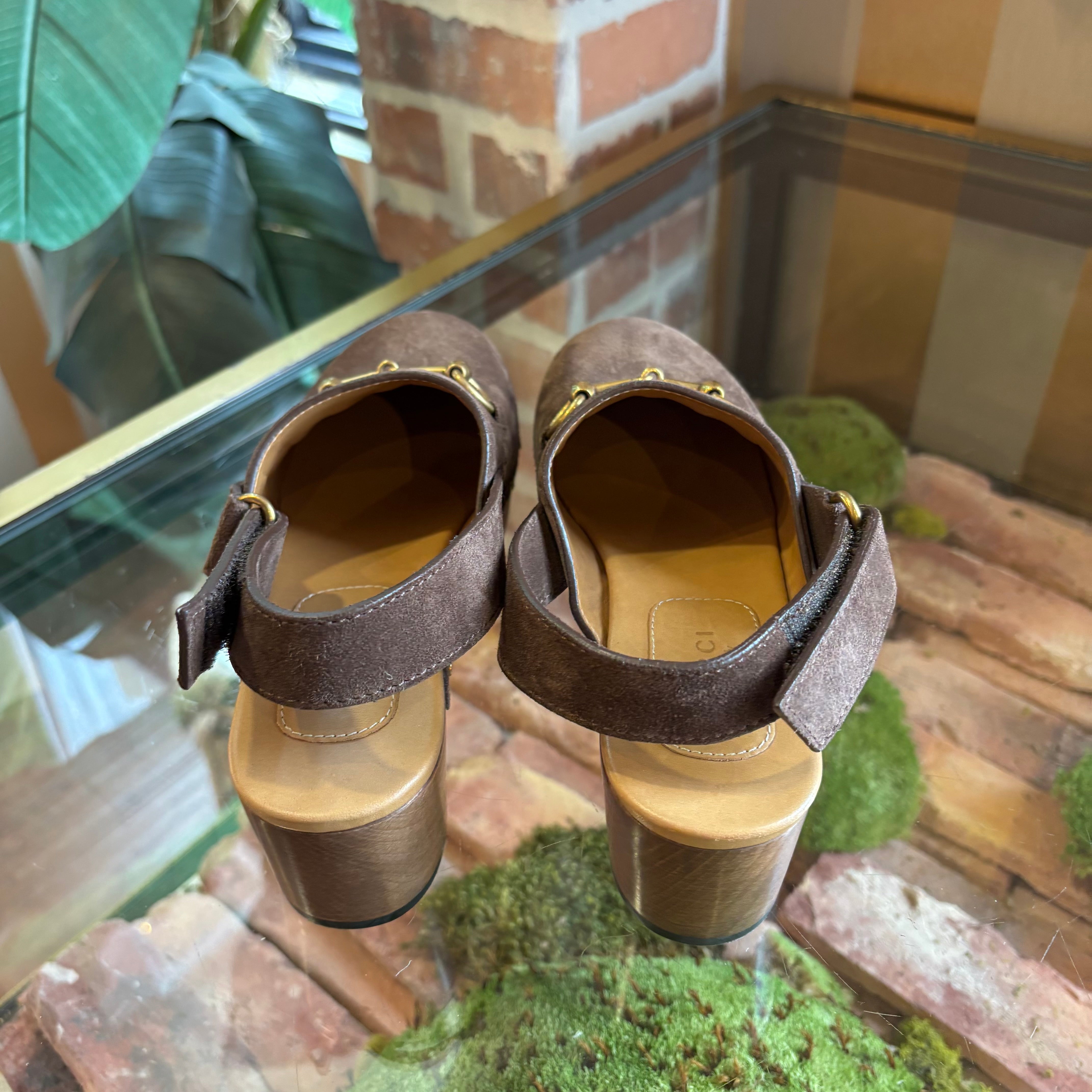 GUCCI Horsebit Accent Suede Slingback Pumps 36