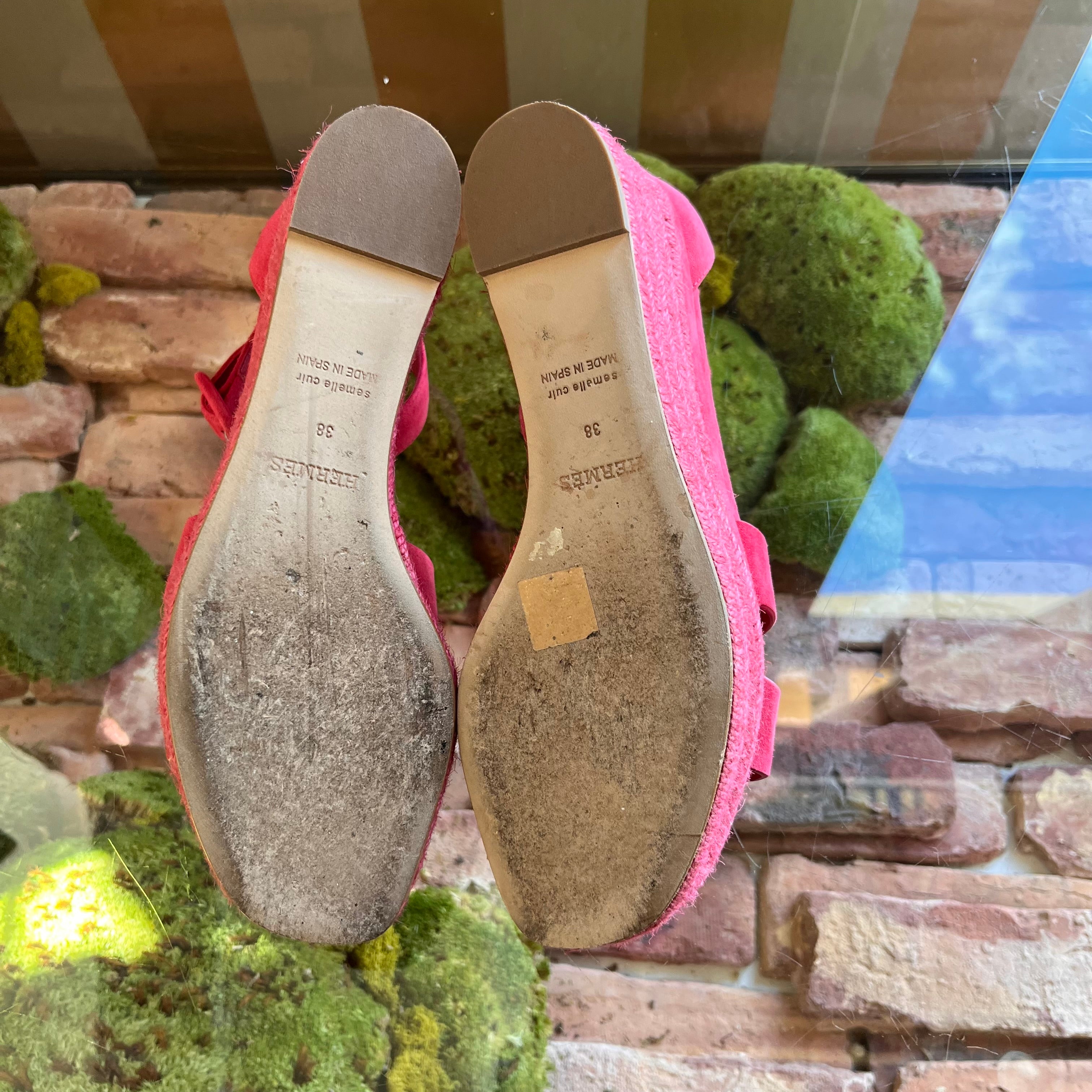 HERMES Elda Suede Goatskin Espadrille Wedge Sandals SZ38(8US)