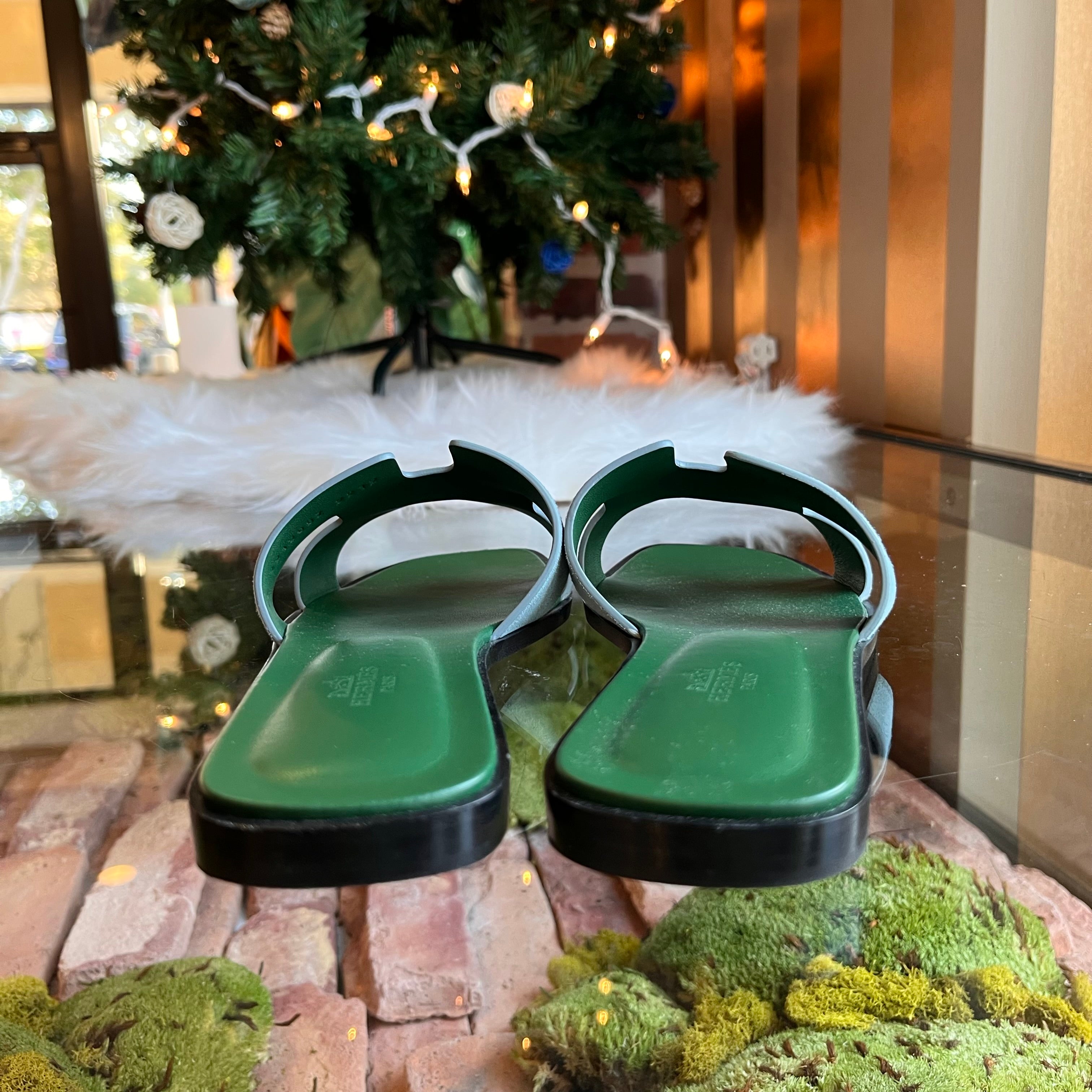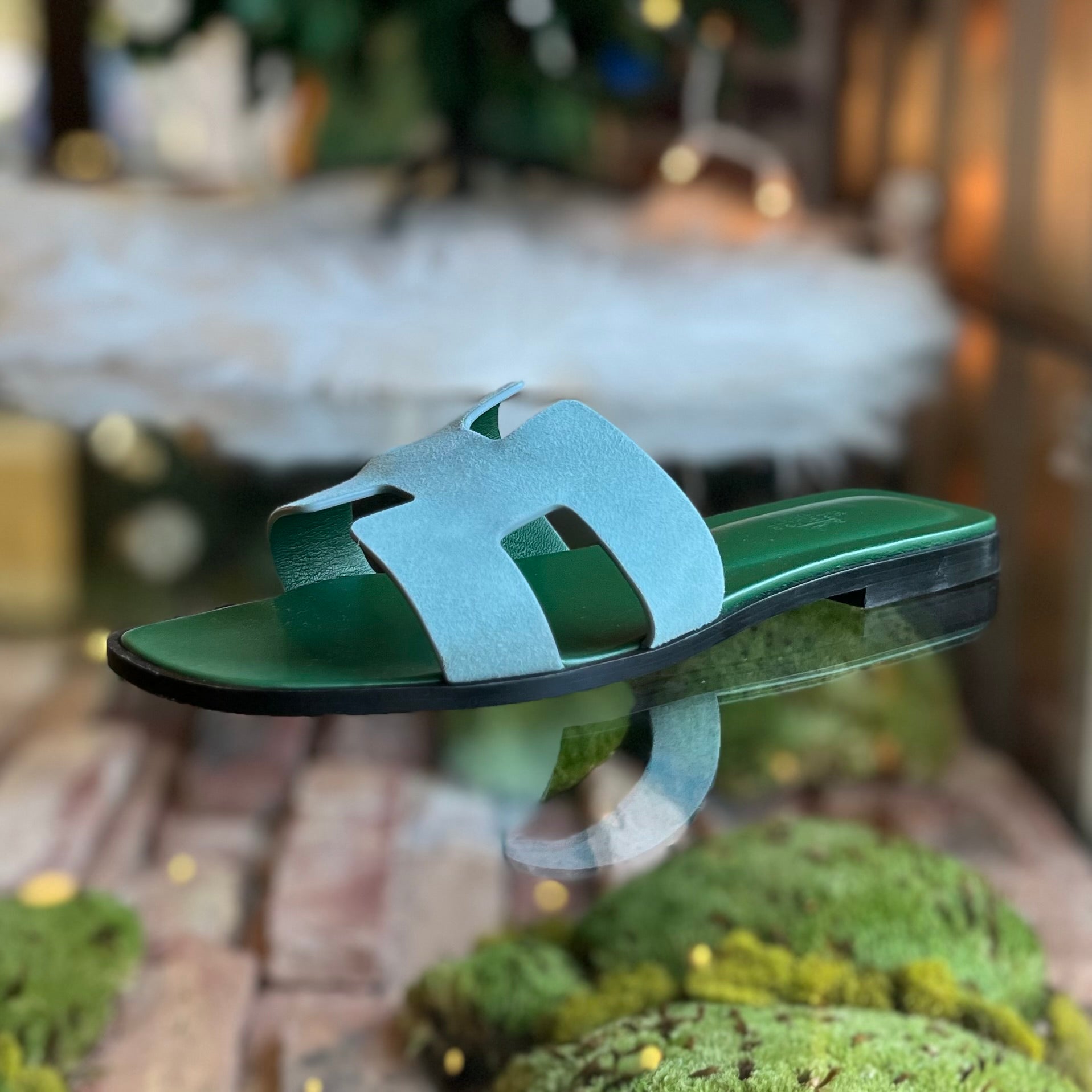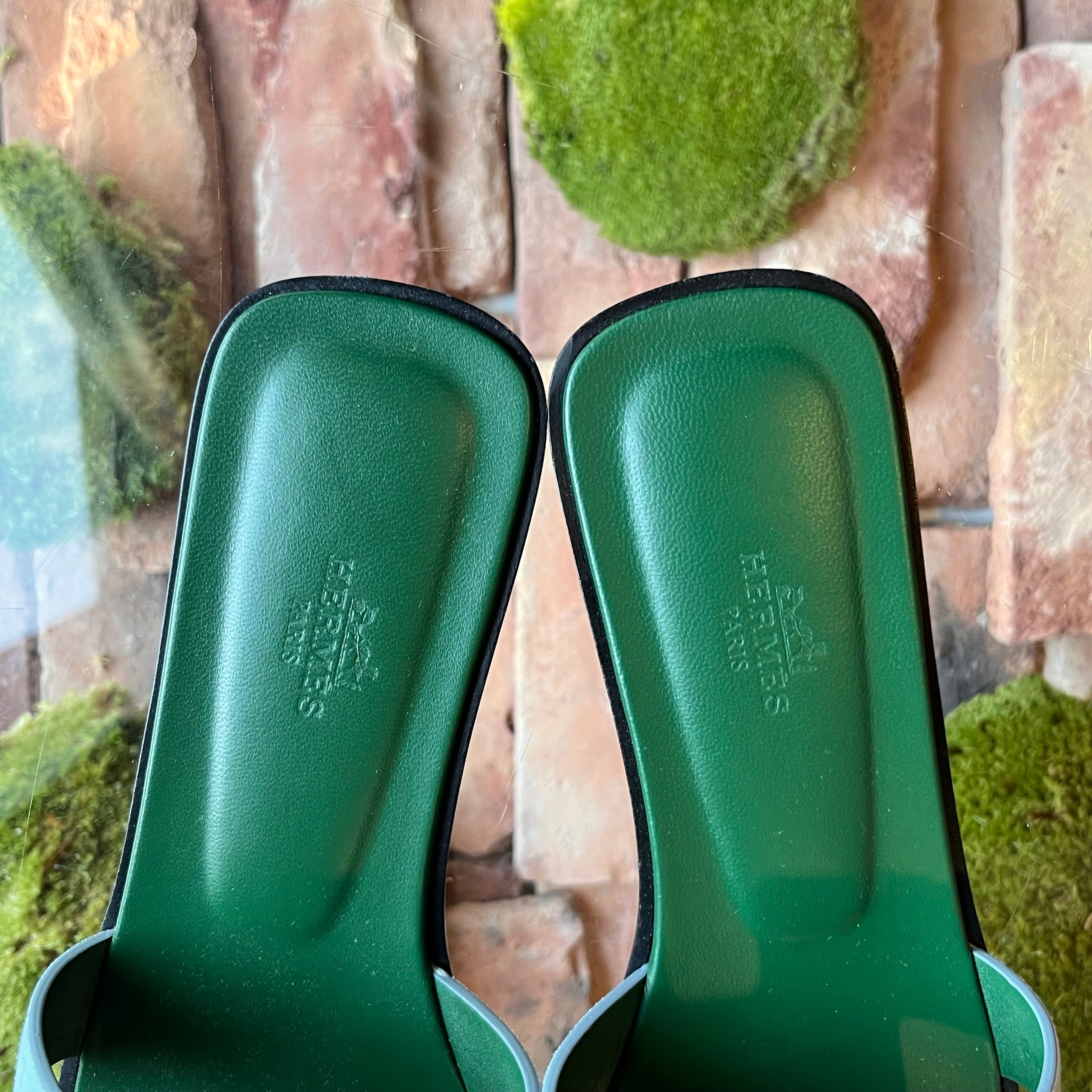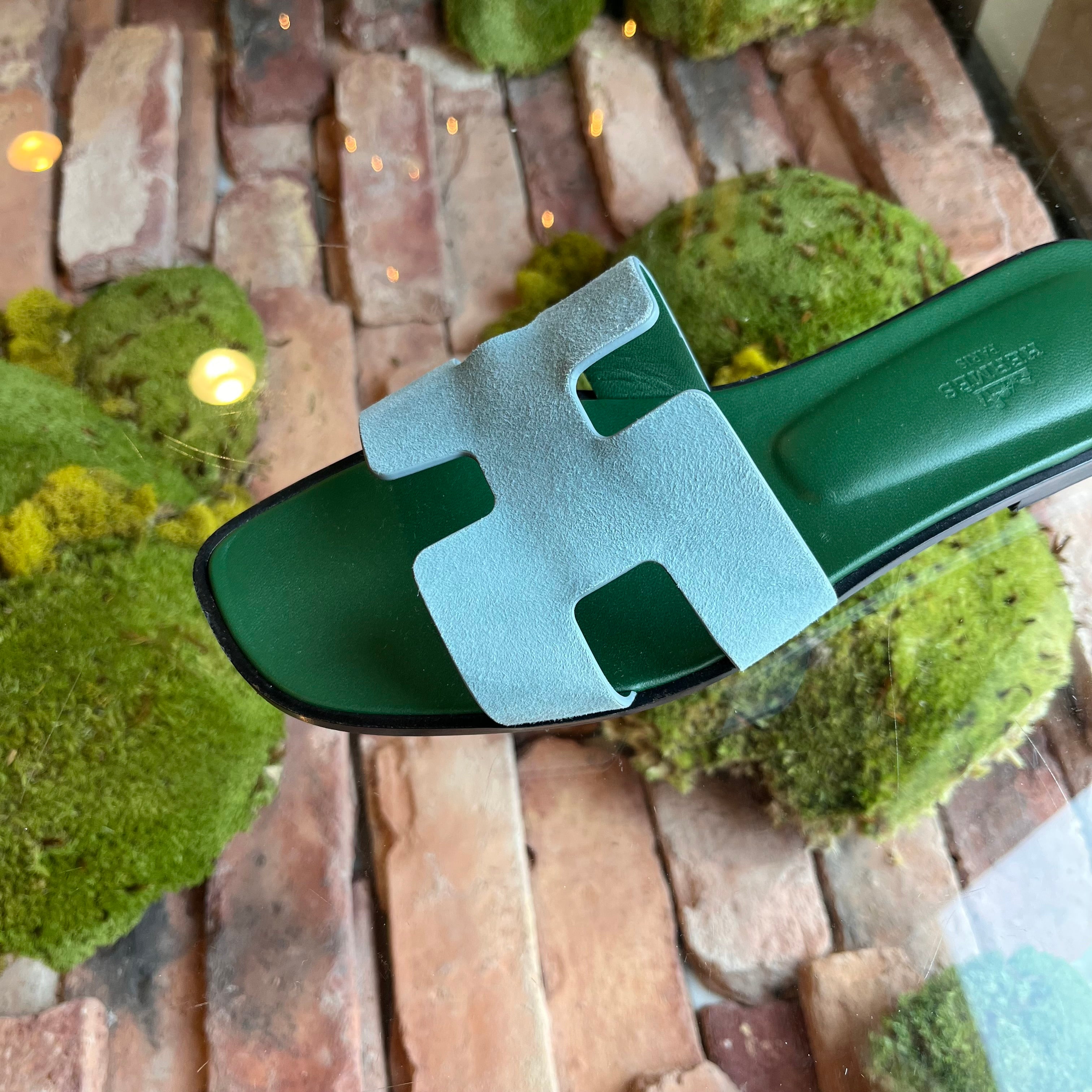HERMES Oran Blue Suede Bicolor Bleu Minéral Sandals SZ39.5(9.5US)
