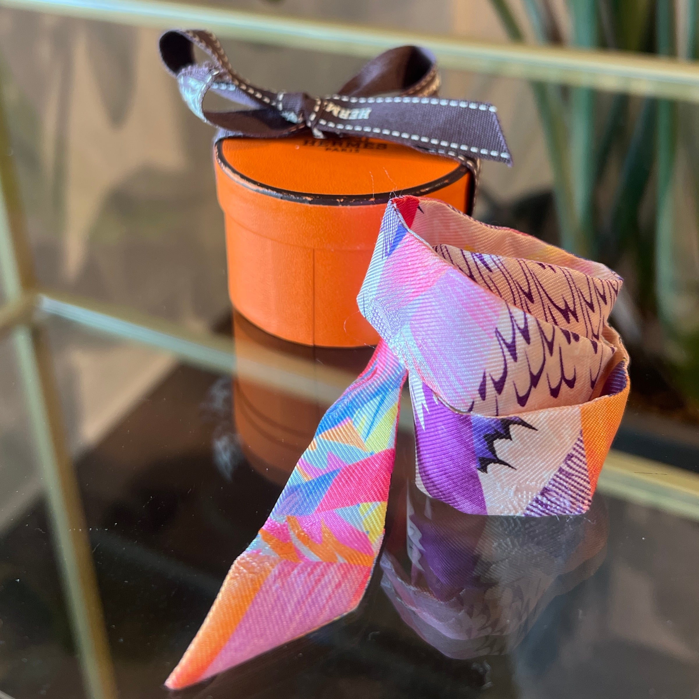 HERMES Marble Doll Rose Multicolore Silk Twilly