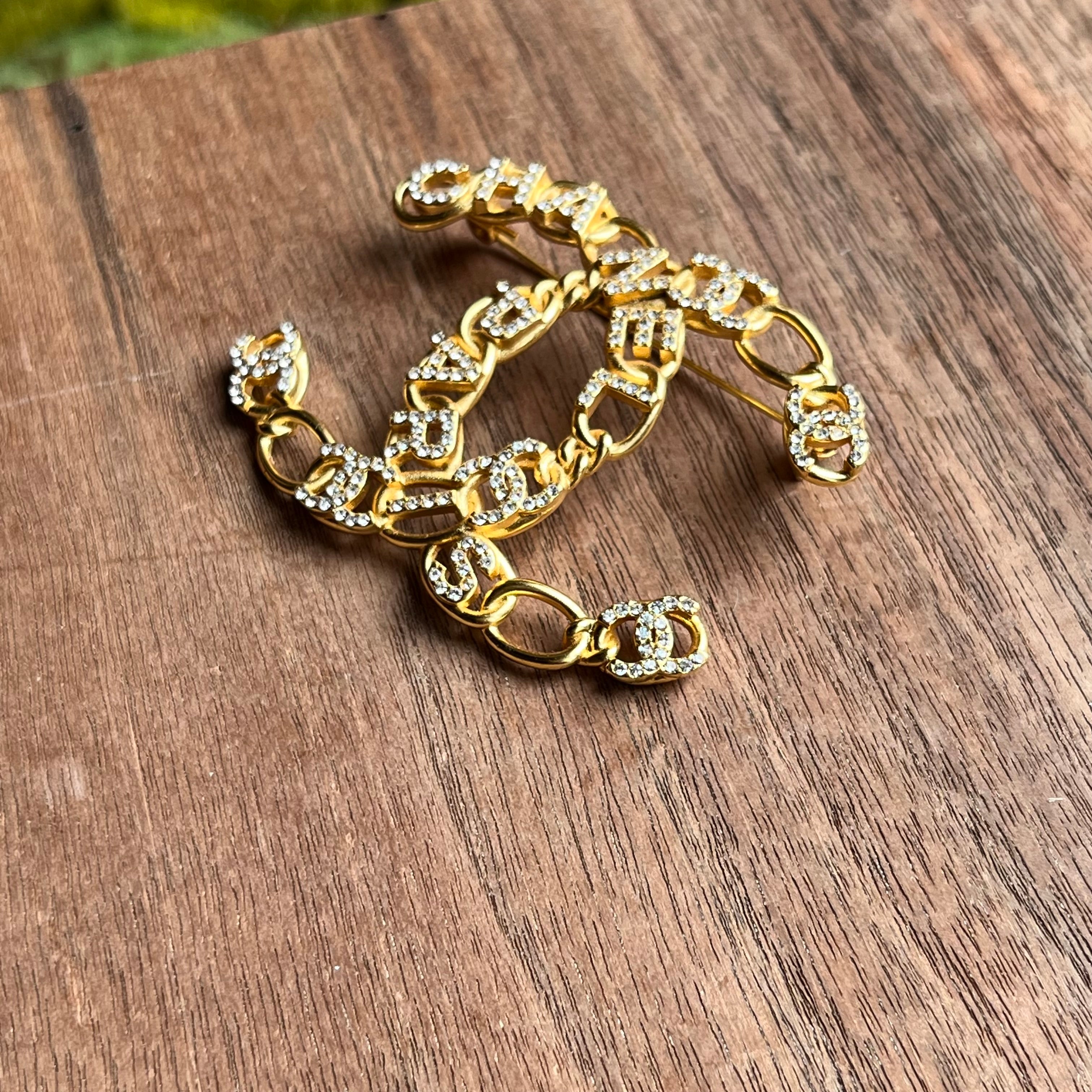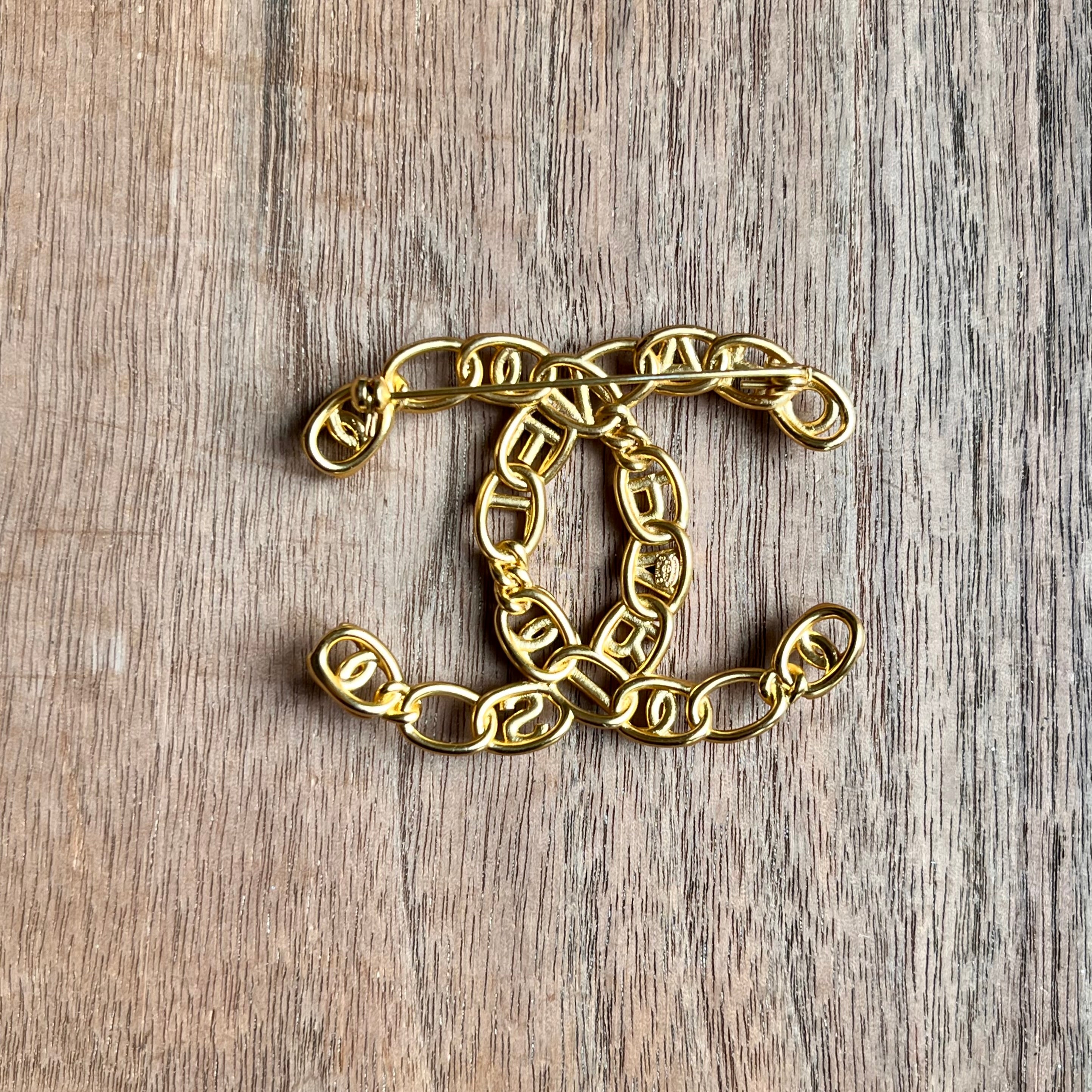 CHANEL CC Gold Chain Chanel Paris Lettering Brooch