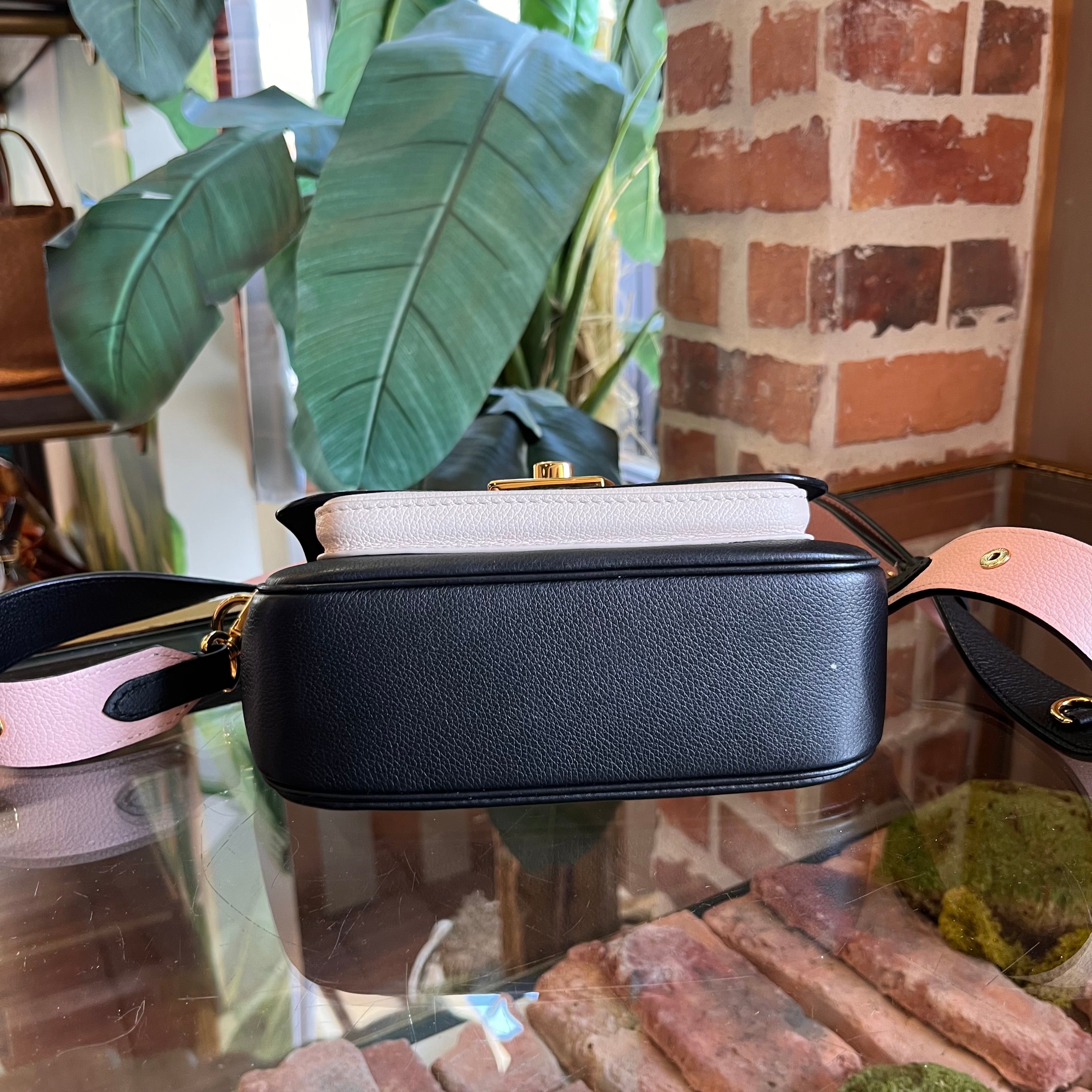 LOUIS VUITTON Lockme Black White Grained Calfskin Crossbody