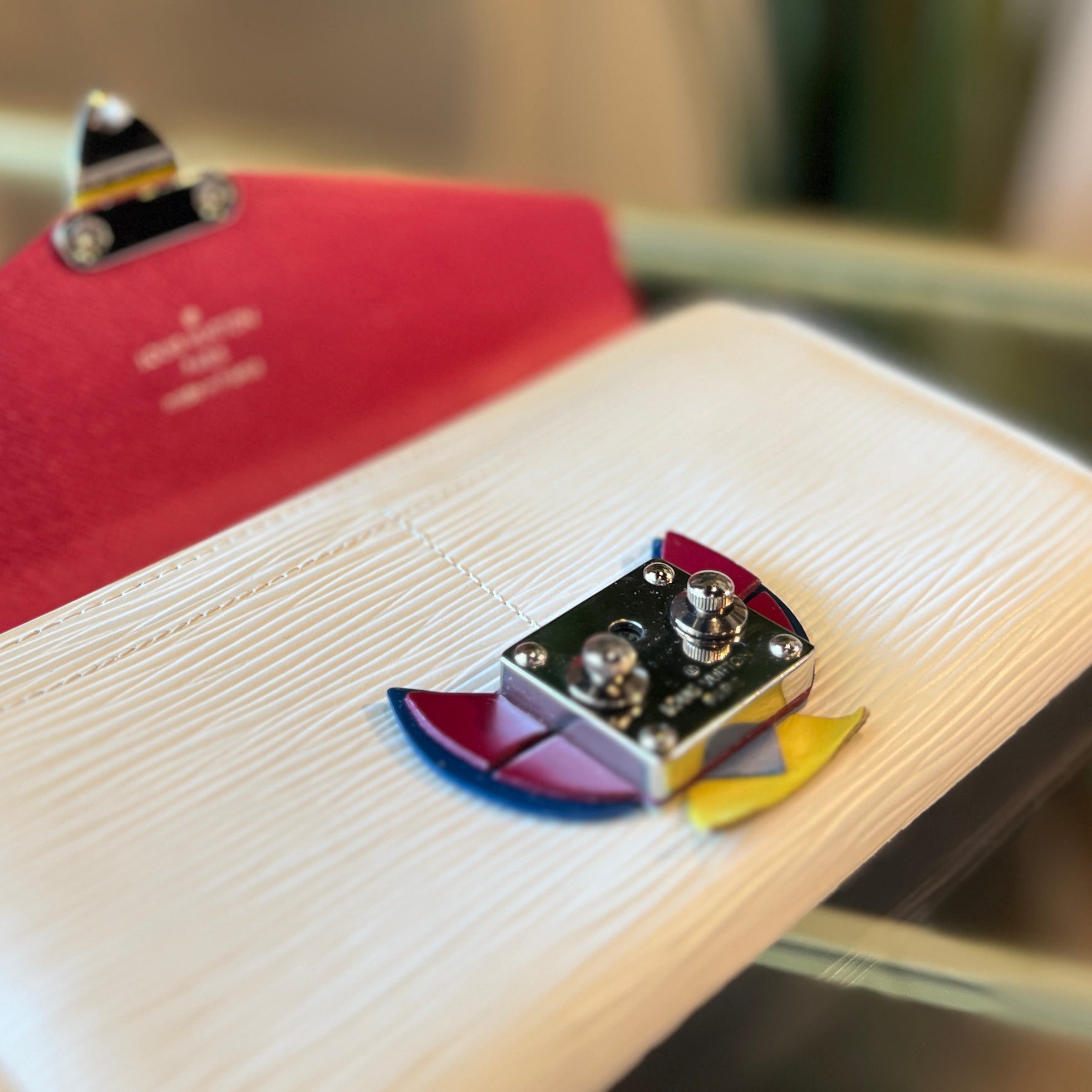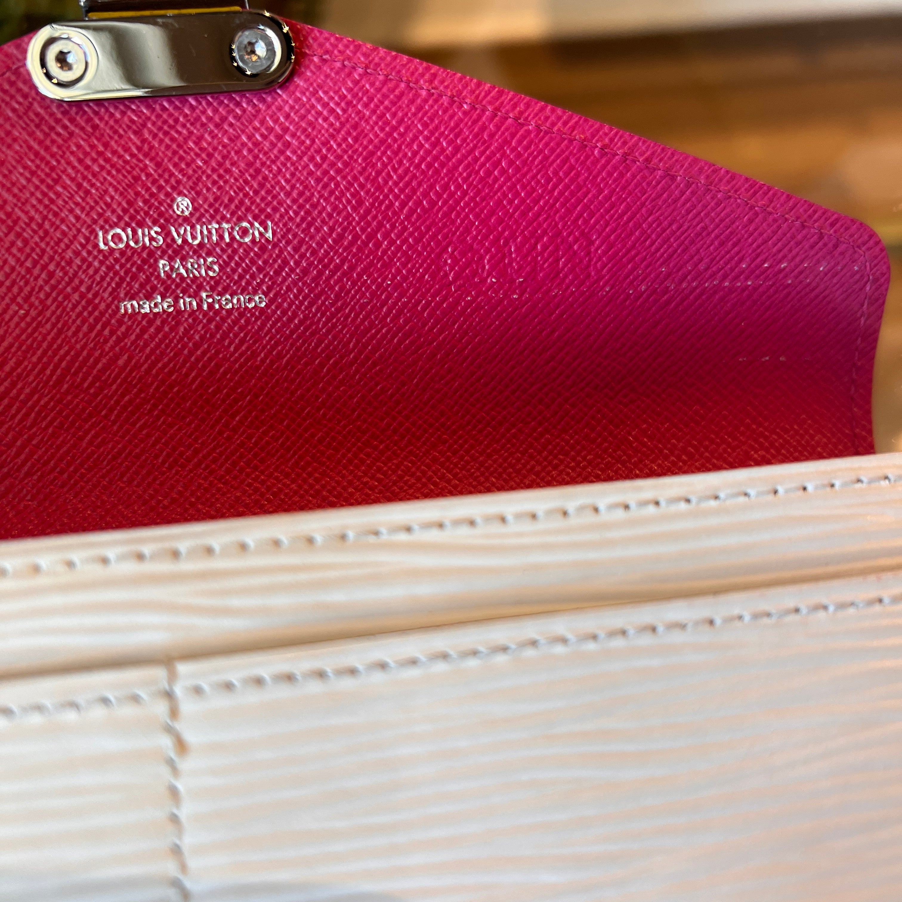 Material: Pivoine and white Epi leather with smooth leather trim