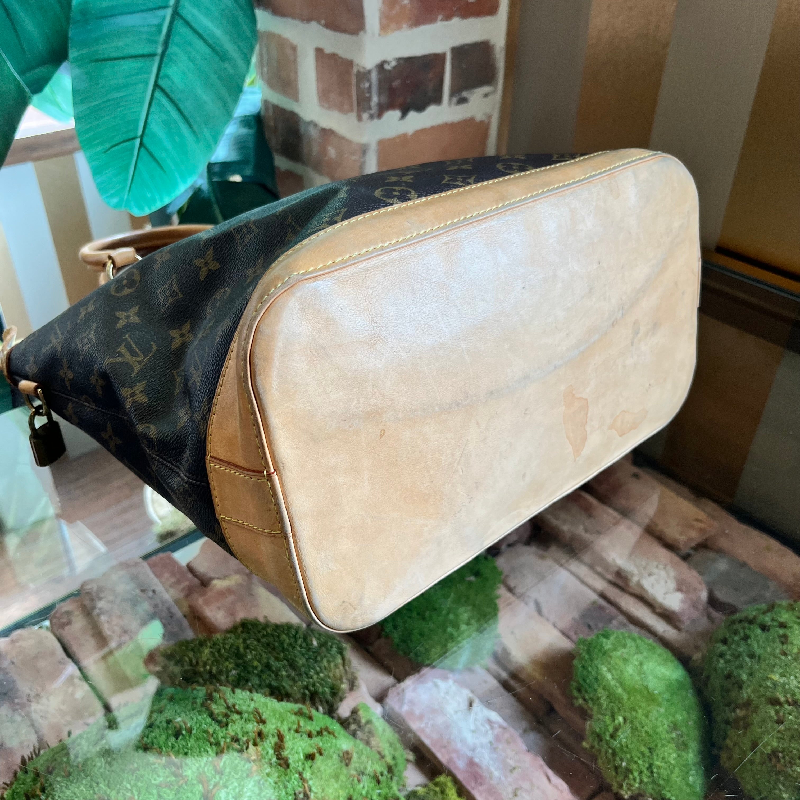 - Handle/Vachetta Leather: The vachetta leather has patianed displaying wear such as: water spots, scuffing, soiling, rubbing, markings, appearing dry, creasing, scratches while appearing darker in certain areas(please refer to photos).