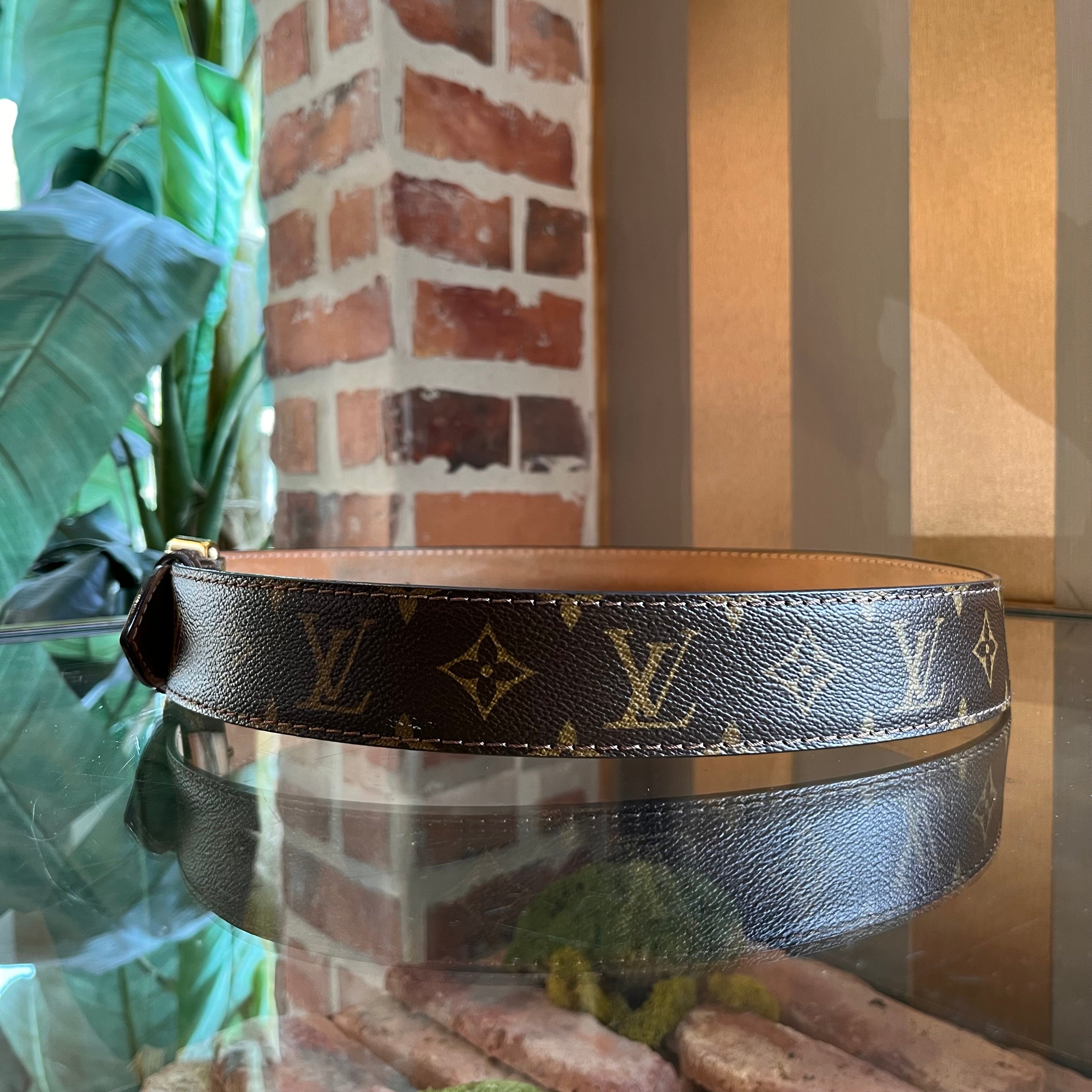 LOUIS VUITTON Brown Monogram Coated Canvas Belt 30/90