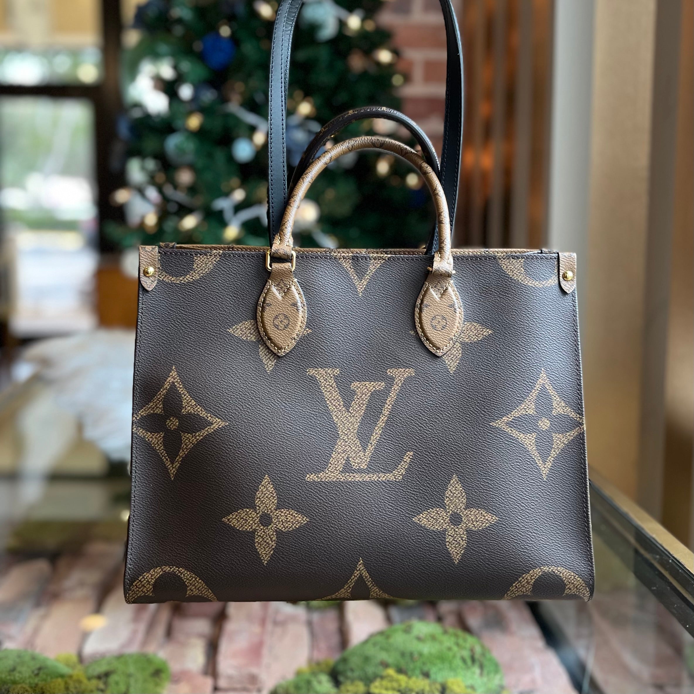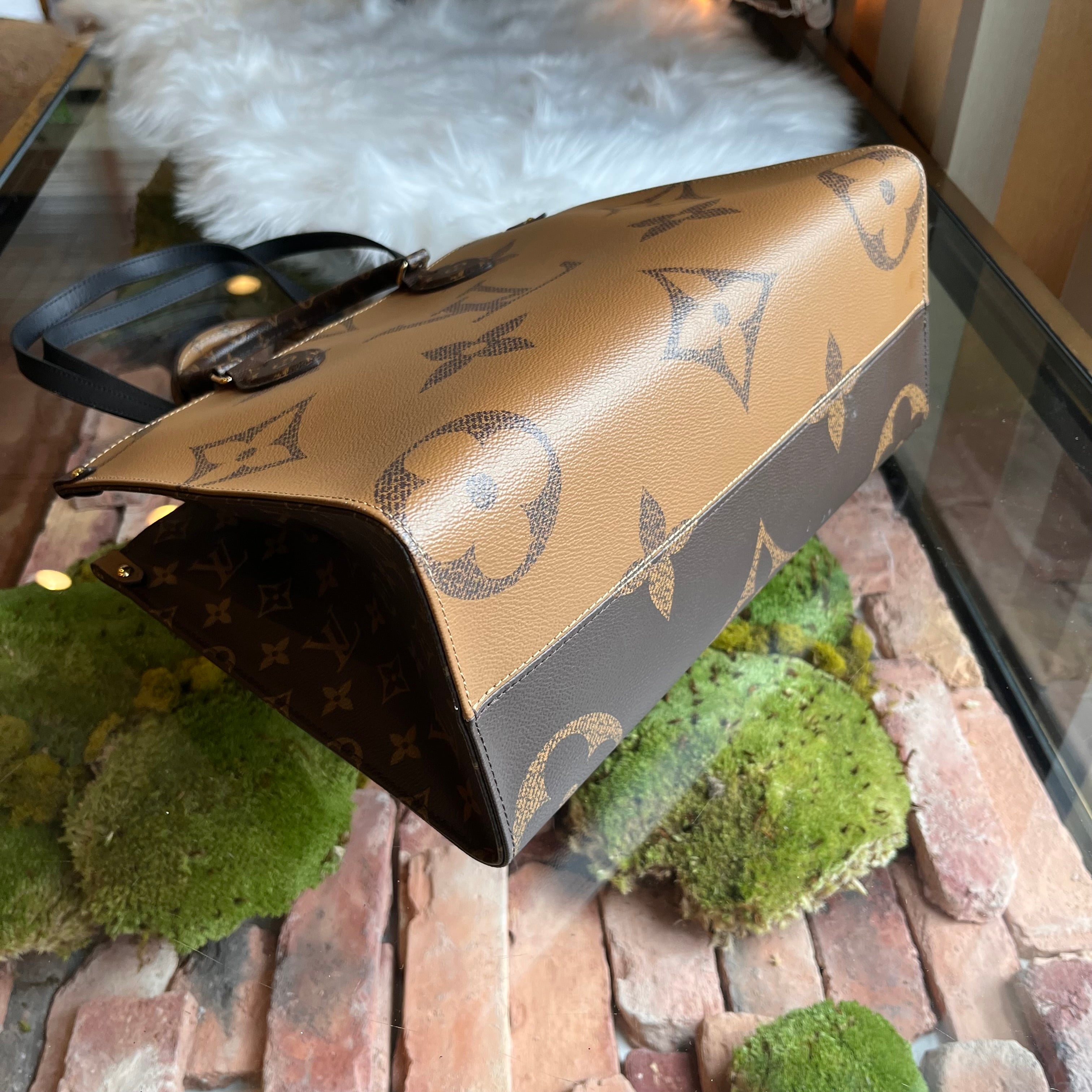 LOUIS VUITTON Onthego MM Brown Monogram Reverse Giant Monogram Canvas Tote Bag