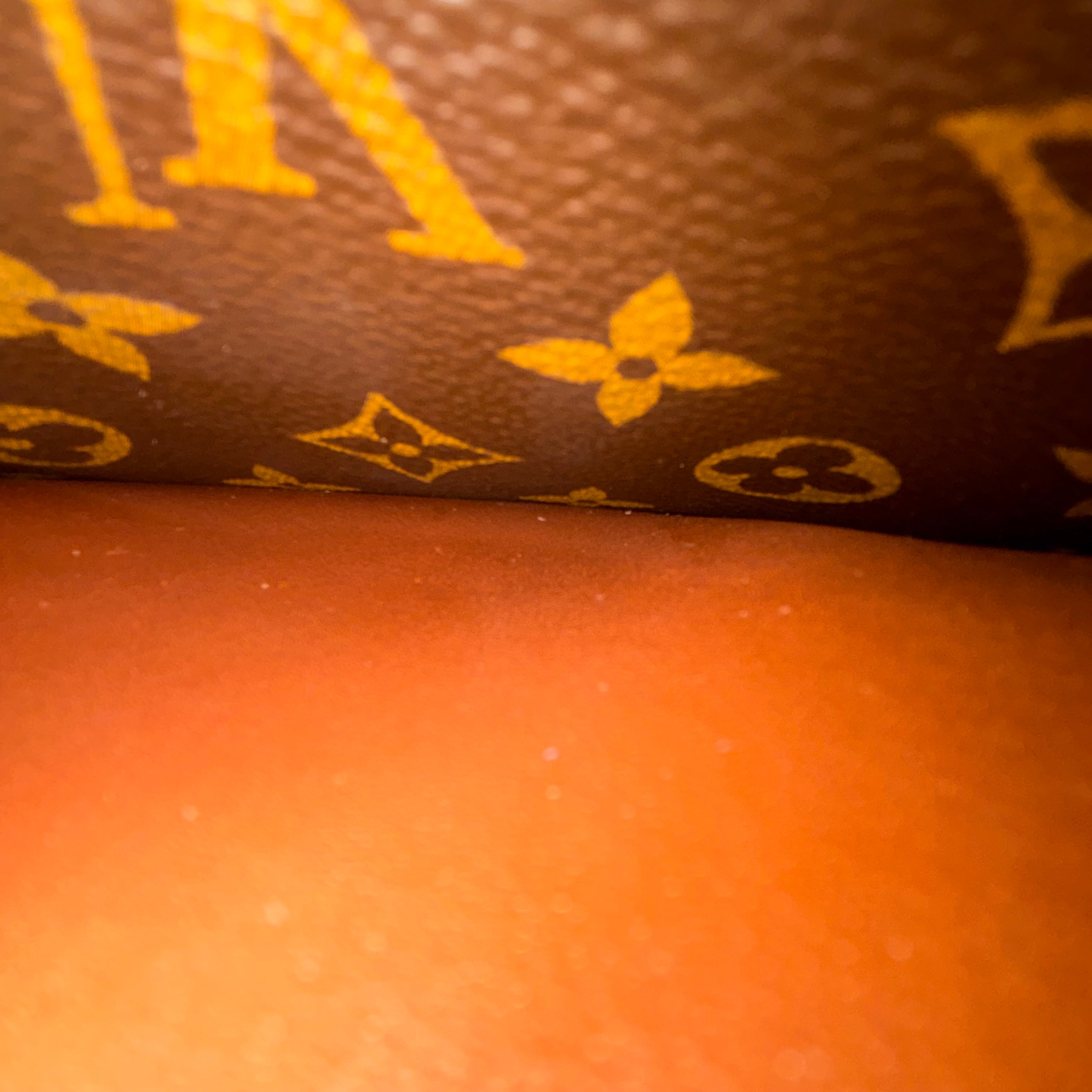 • Crafted from monogram coated canvas with natural vachetta leather trim.
