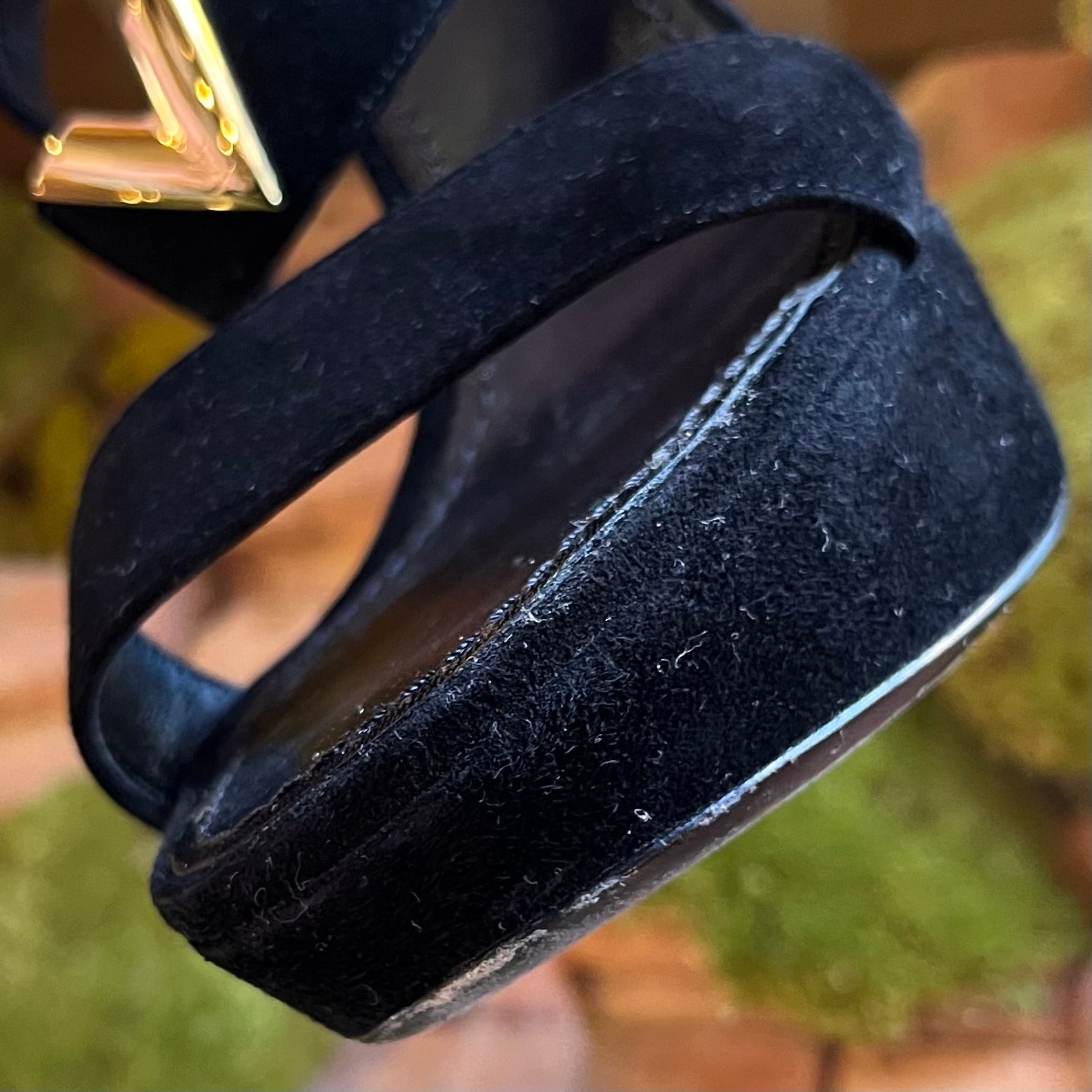 LOUIS VUITTON Suede V Logo Platform Sandals SZ 37 (US 7)