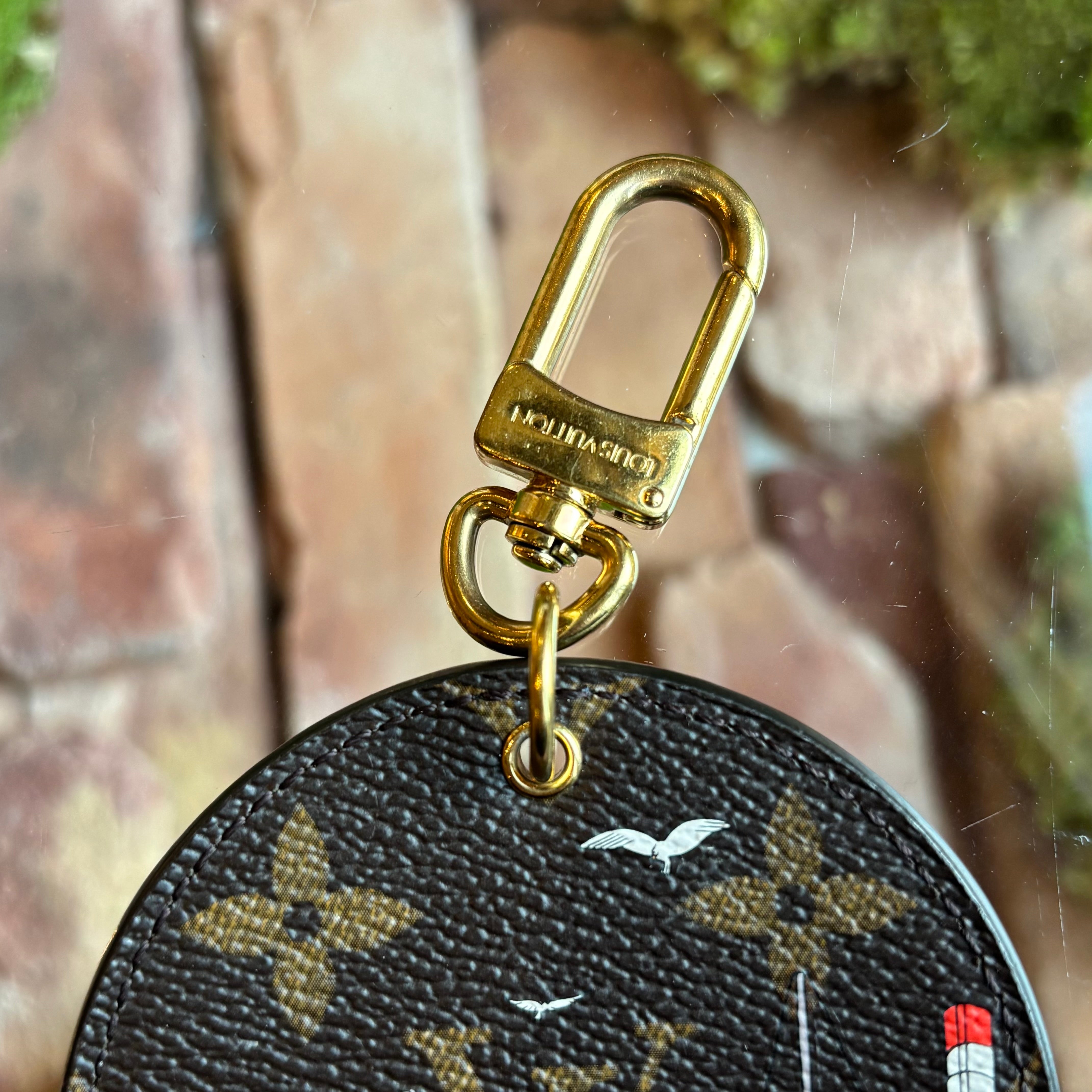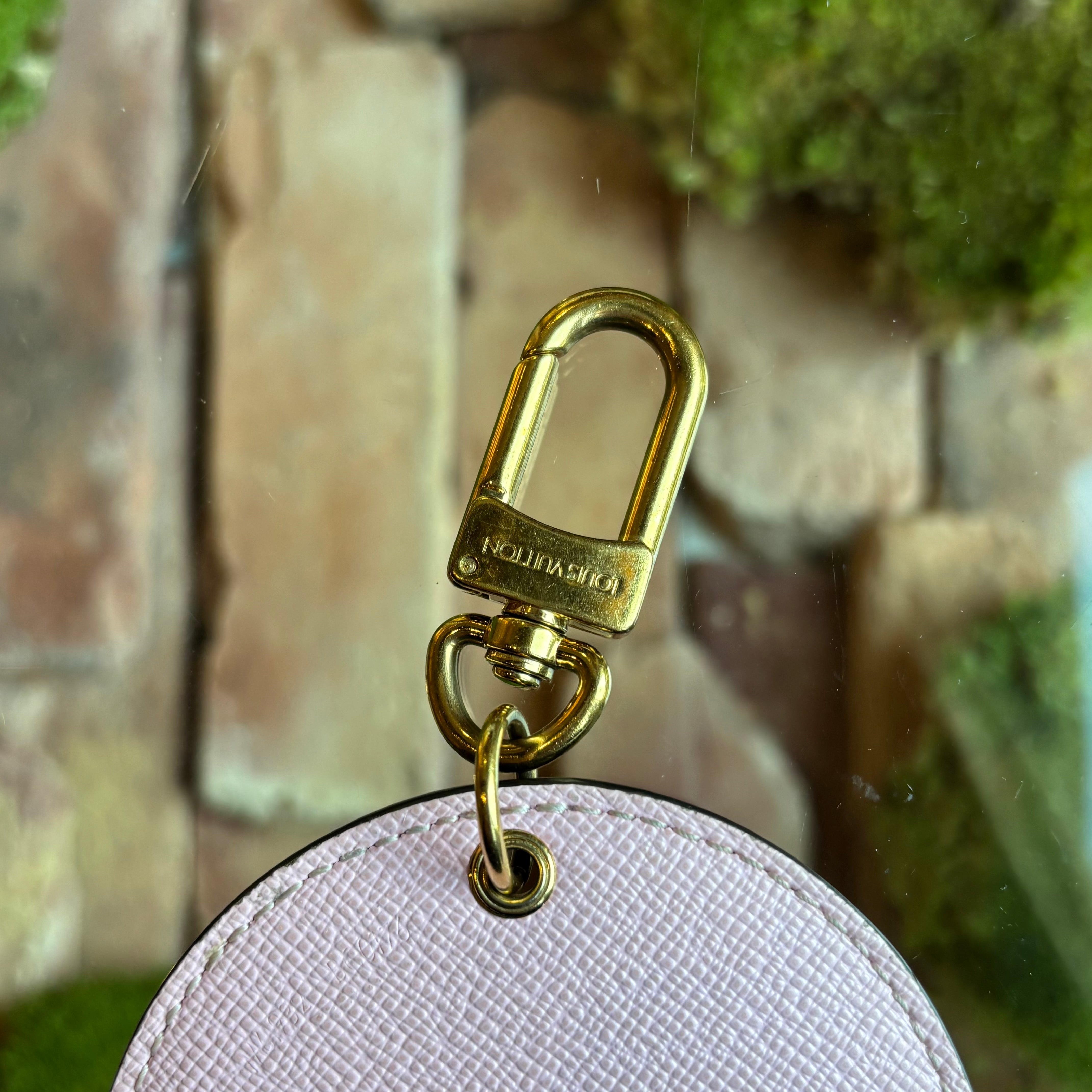 - Hardware: Polished gold-tone key ring and clasp engraved with Louis Vuitton