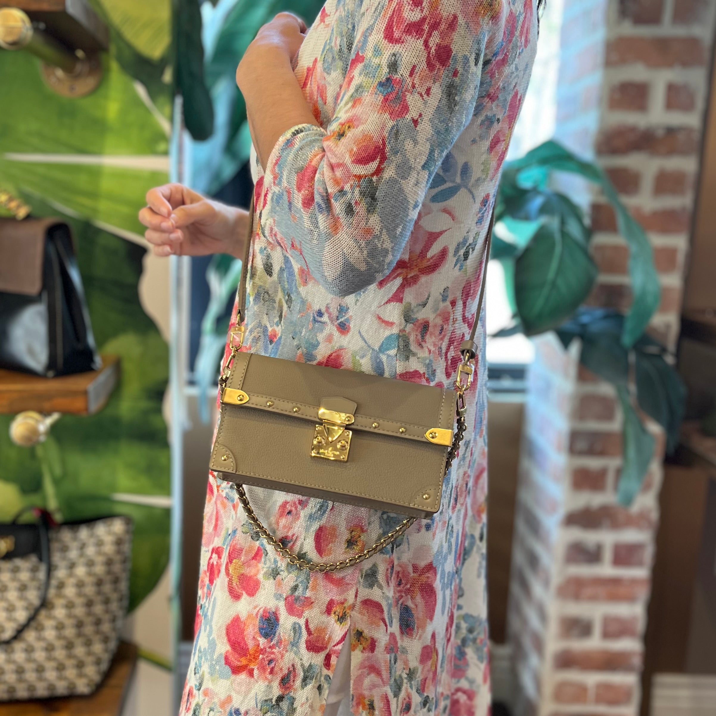 LOUIS VUITTON Trunk Chain Taupe Leather Shoulder Bag