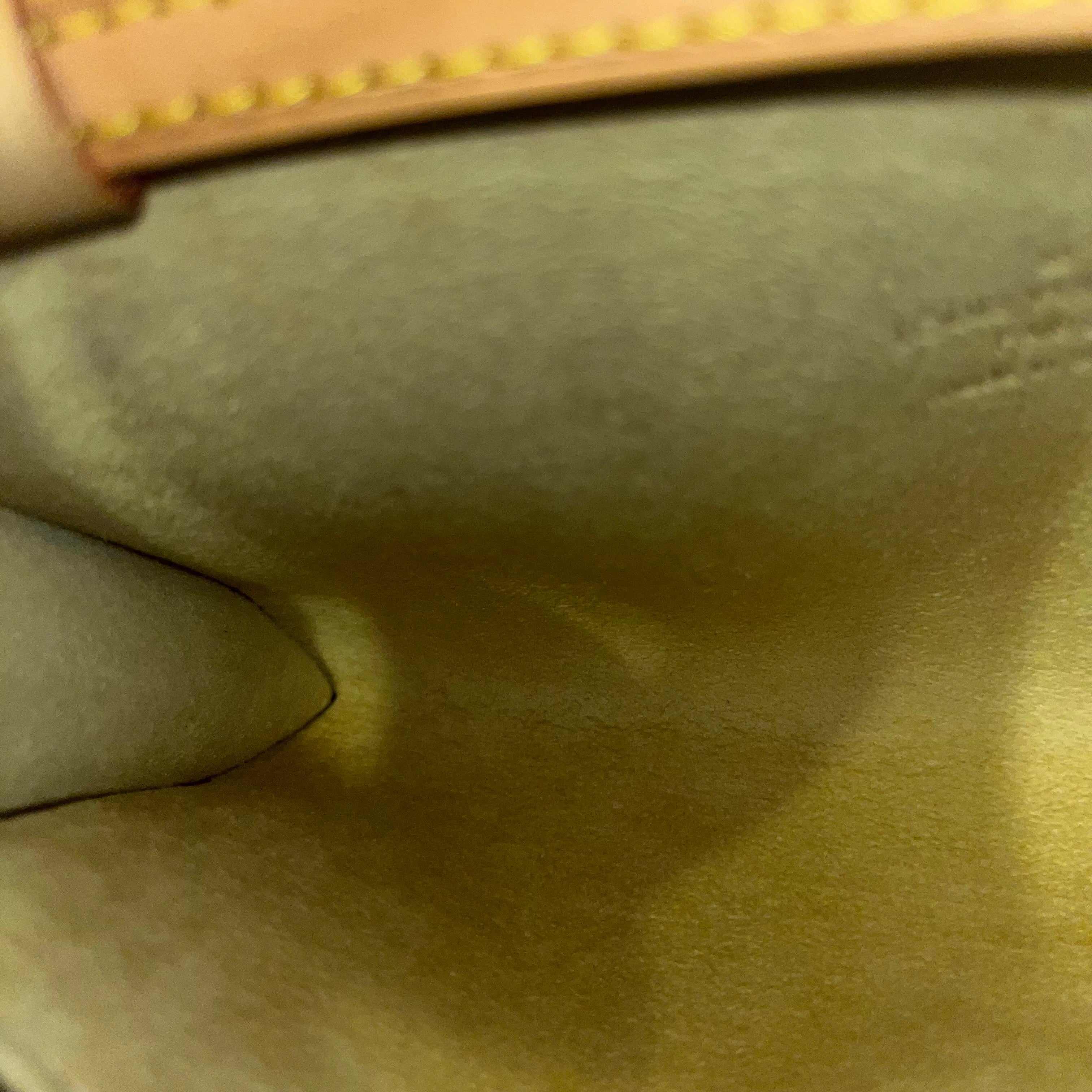 - Handle+Leather Trim: The vachetta leather has developed a light honey patina with subtle signs gentle signs of use remaining sturdy and intact.