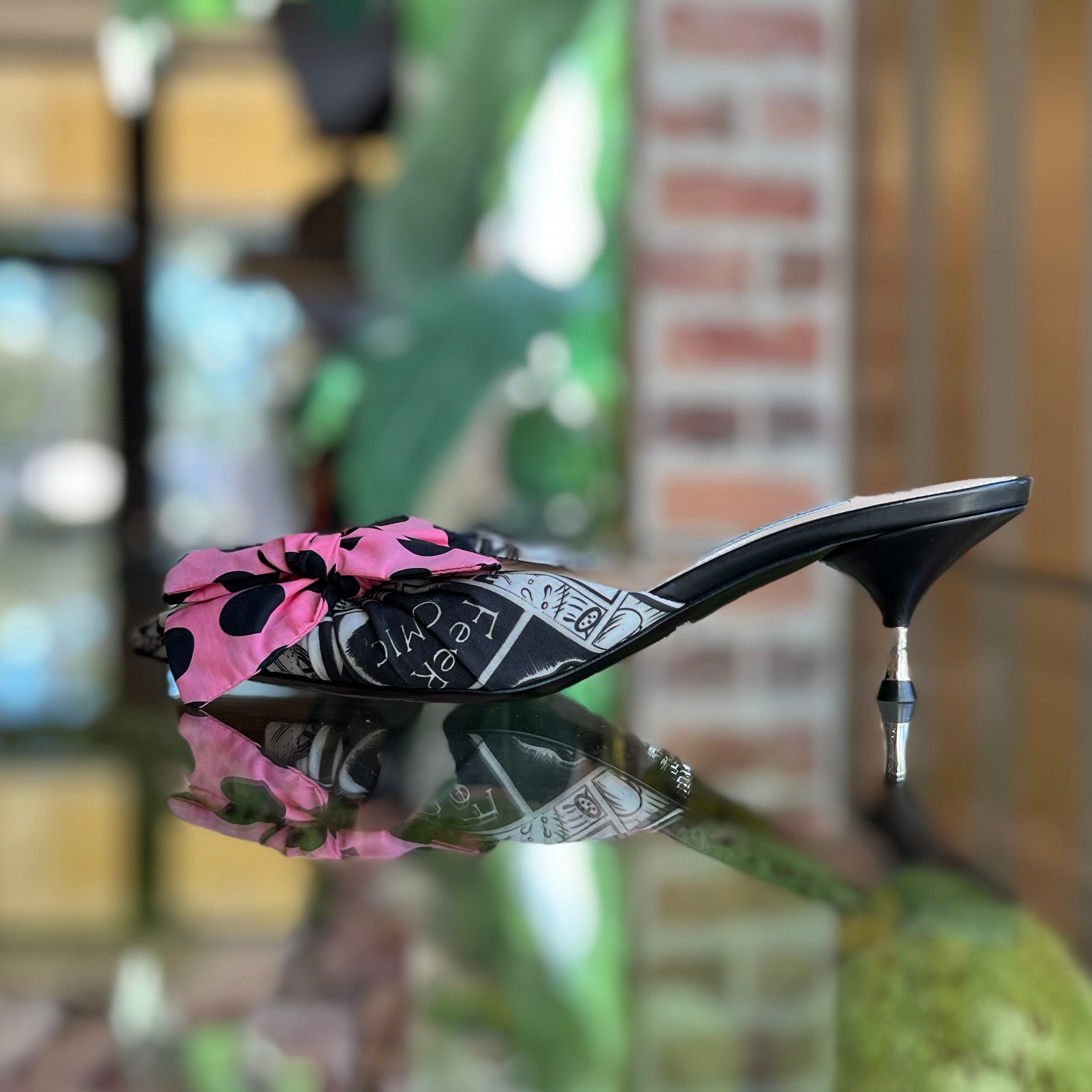 - Pink and Black Polka Dot Bow Details