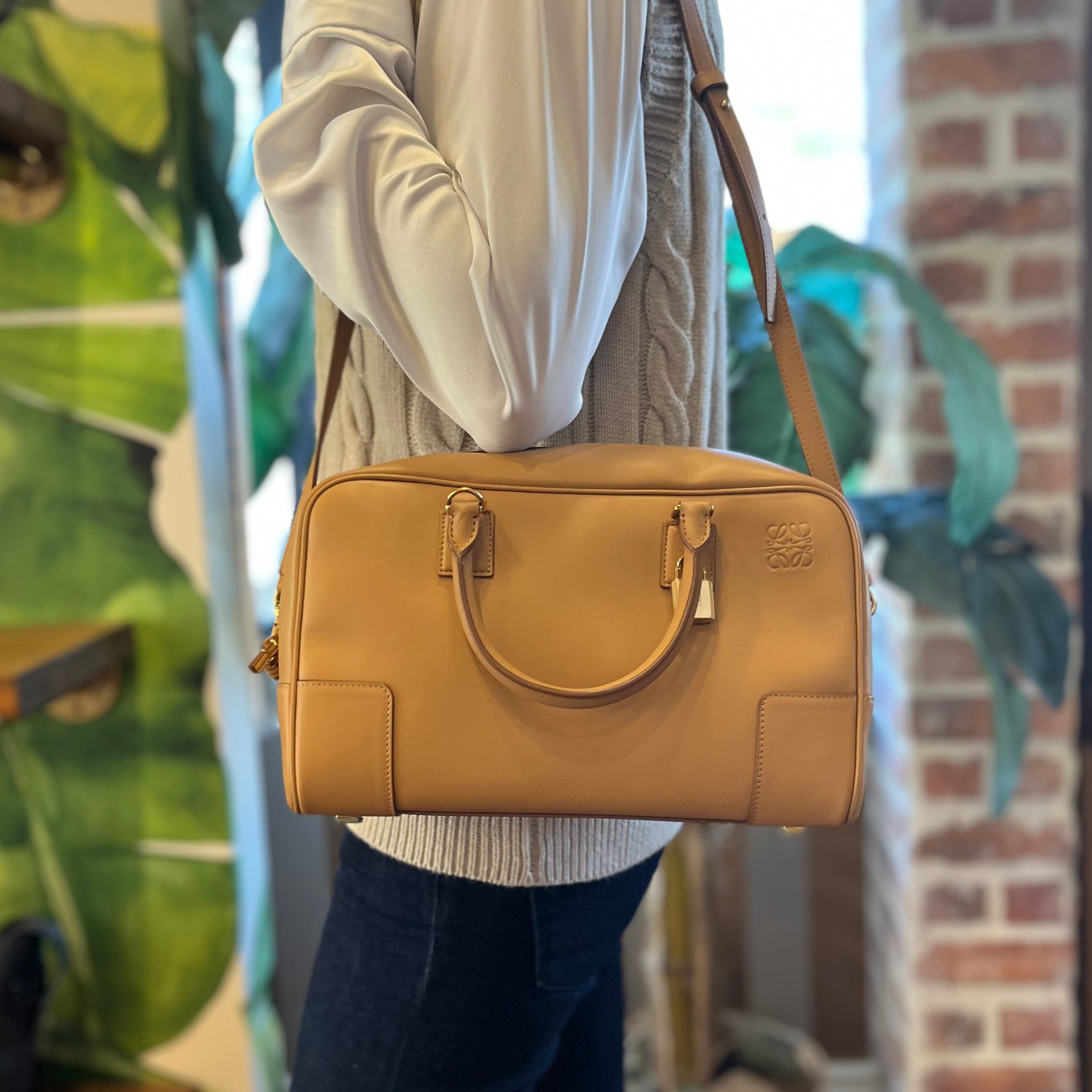 LOEWE Amazona 28 Beige Nappa Calfskin Satchel