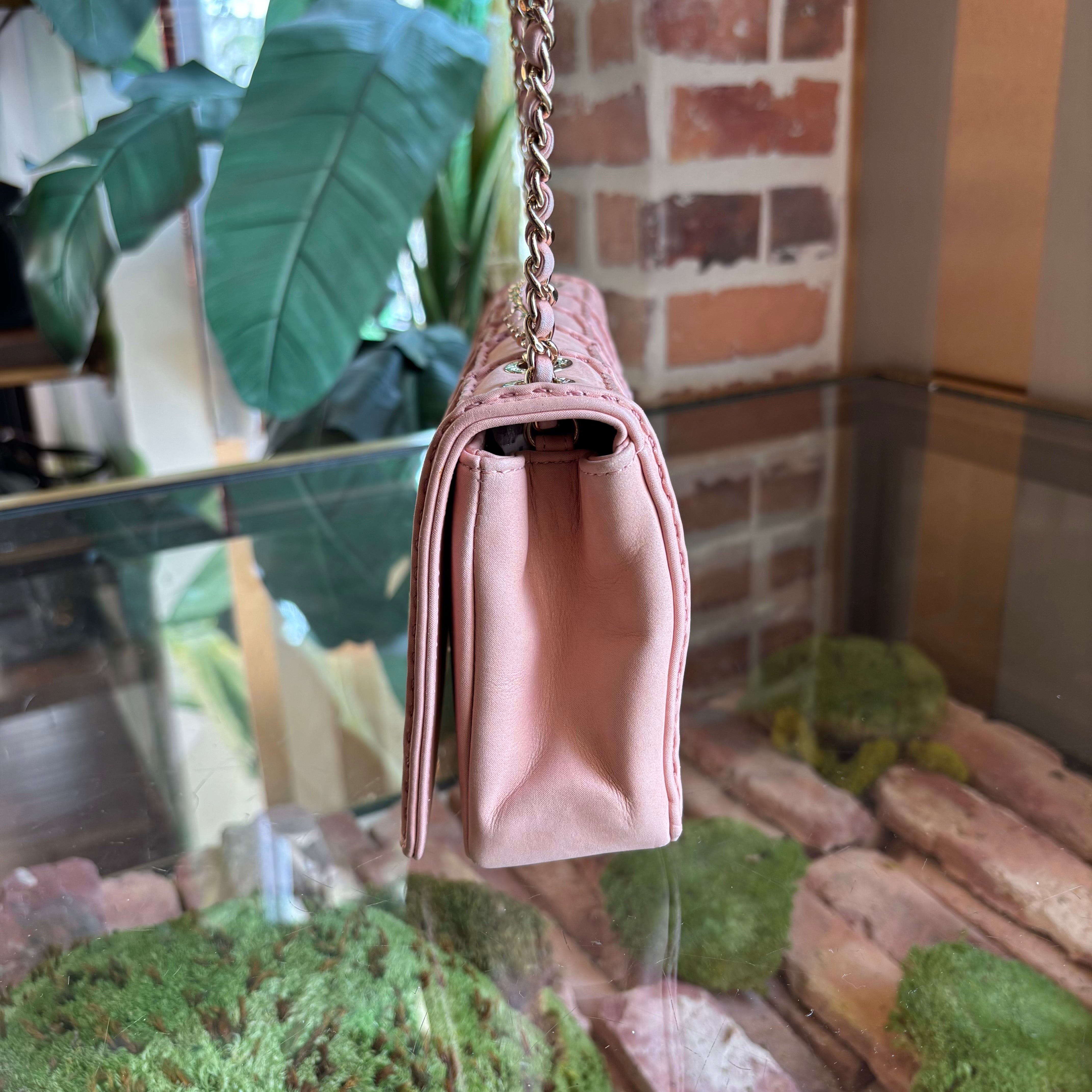 CHANEL Pink Square Quilt Lambskin Flap 2.55