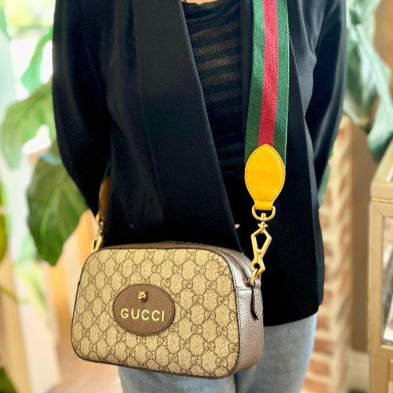 GUCCI Neo Vintage Beige New Acero Crop GG Supreme Monogram Web Shoulde