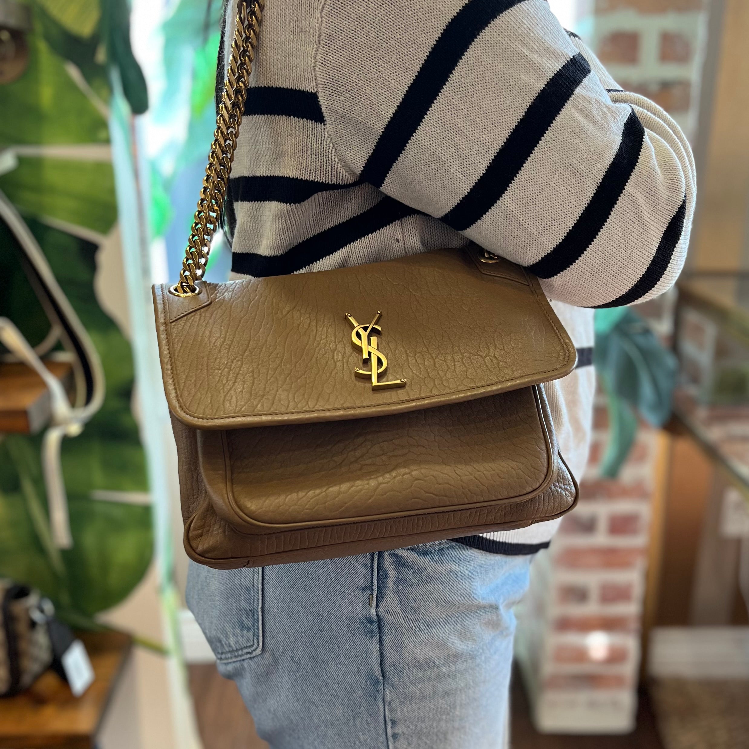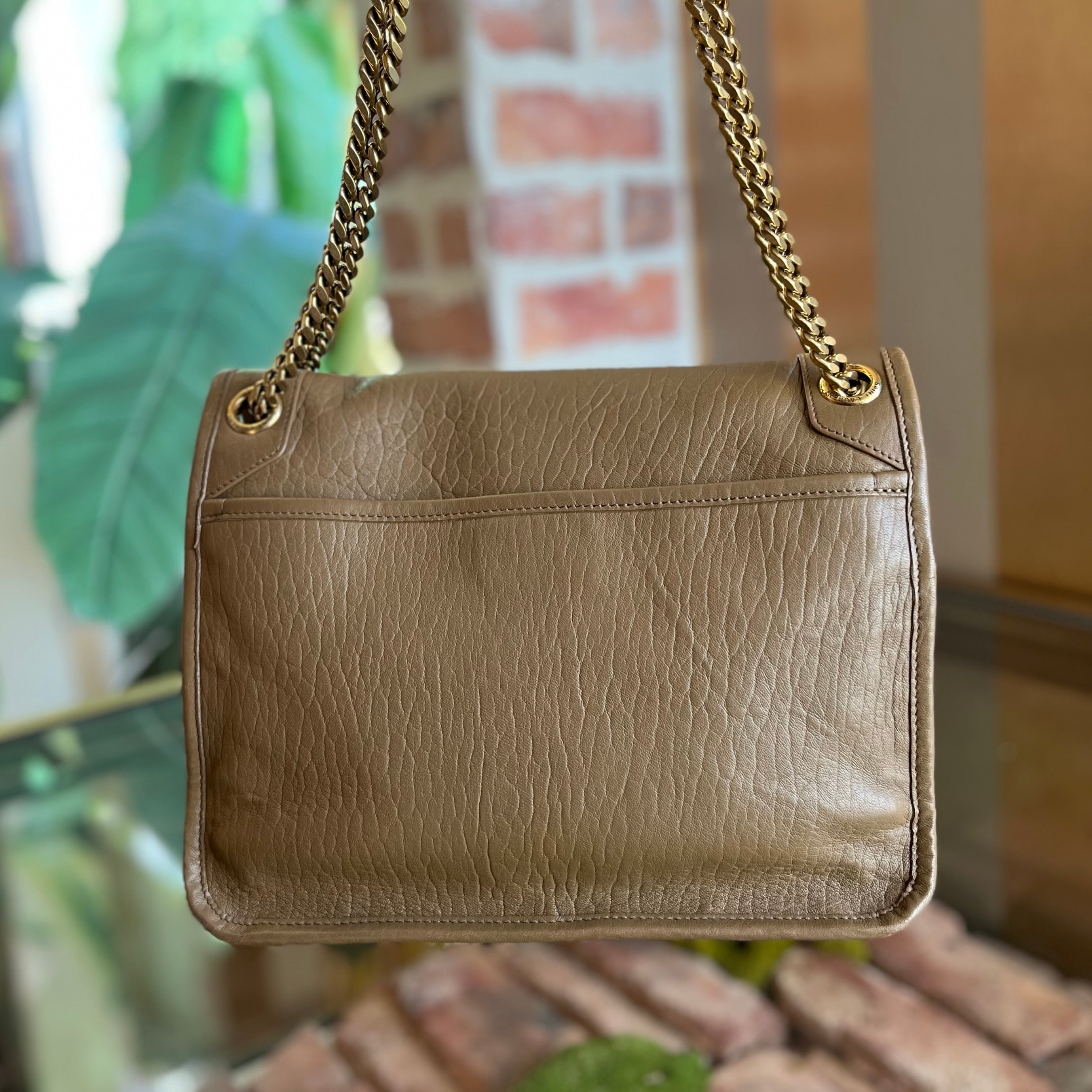 SAINT LAURENT Brown Grained Lambskin Leather Niki Shoulder bag