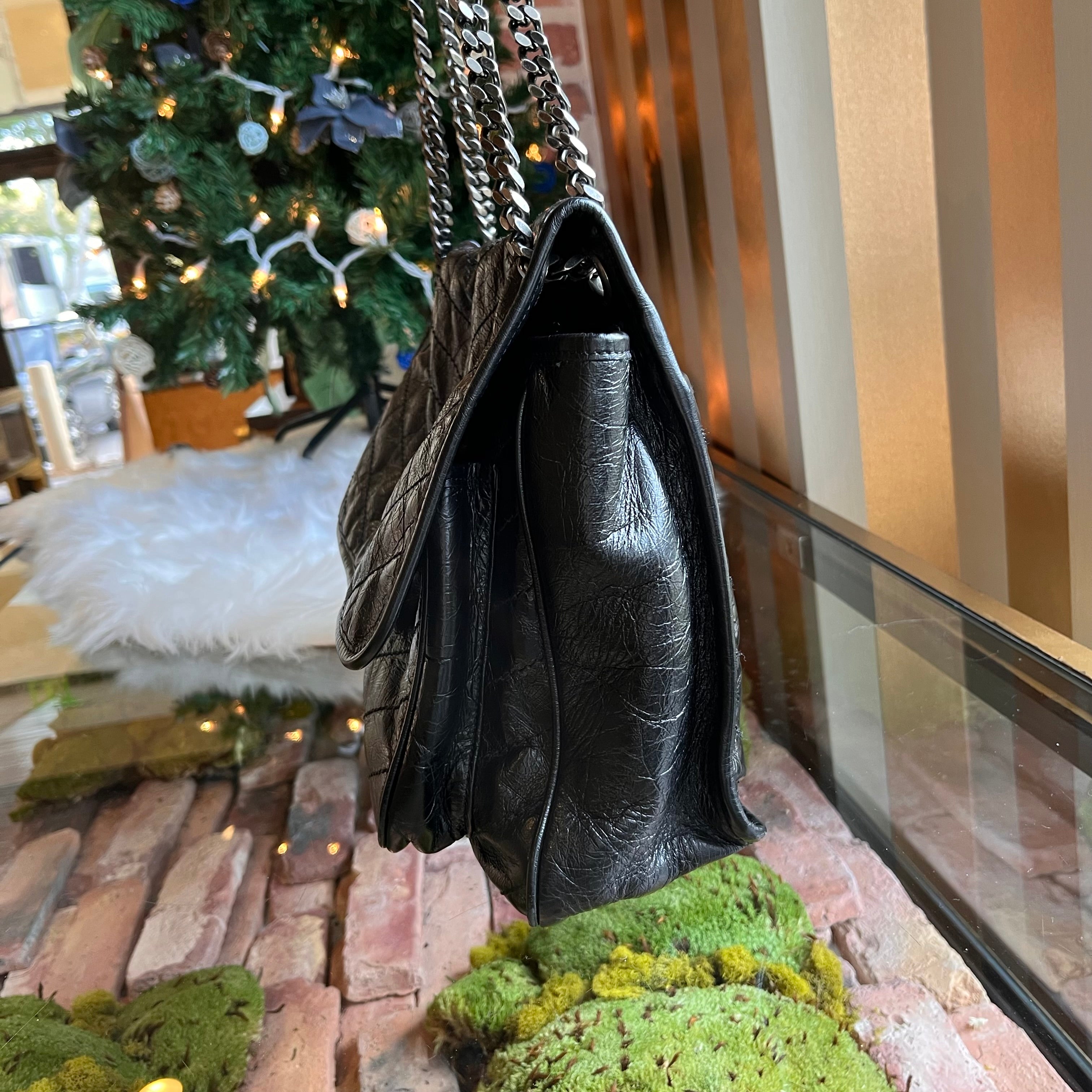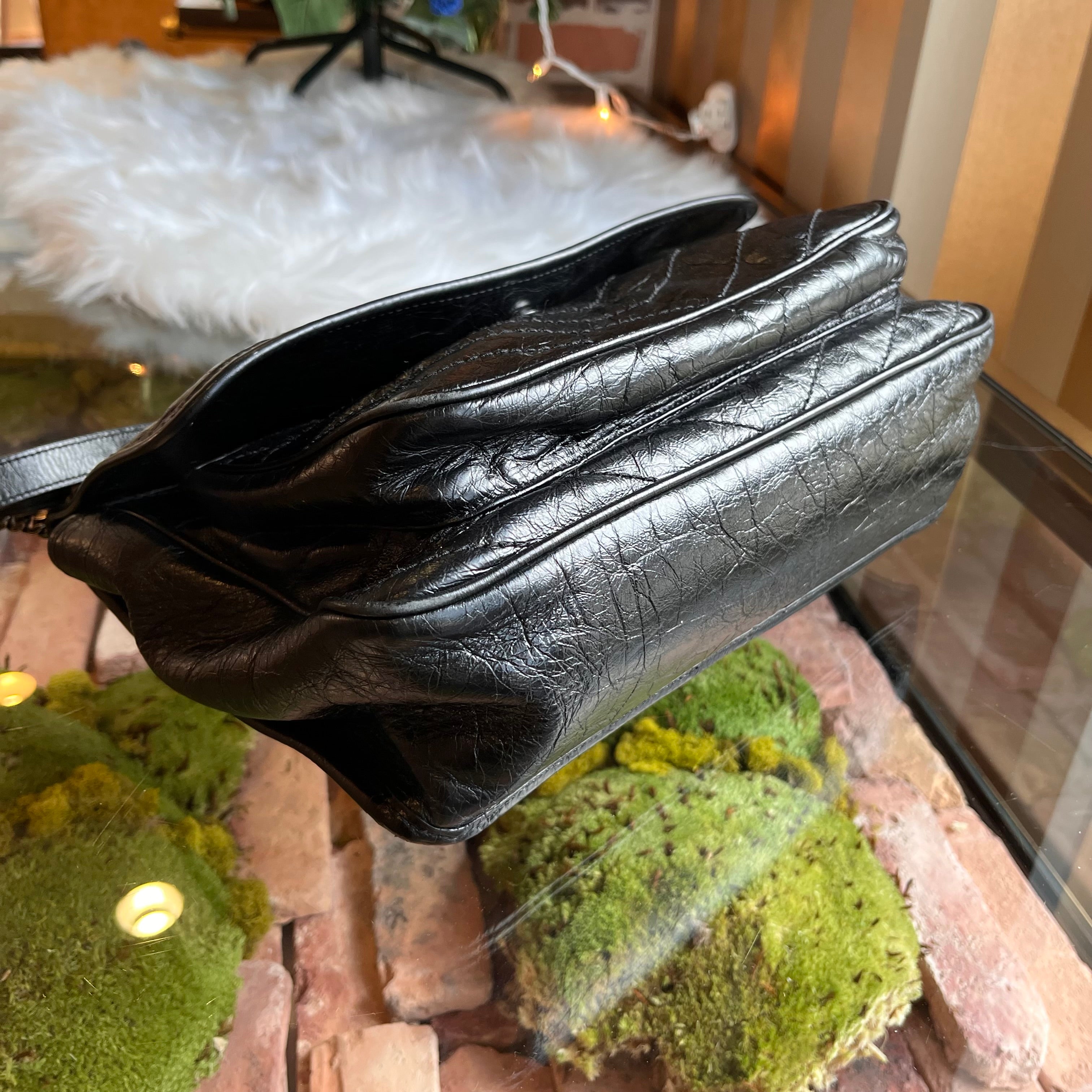 SAINT LAURENT Niki Medium Crackled Calfskin Shoulder Bag