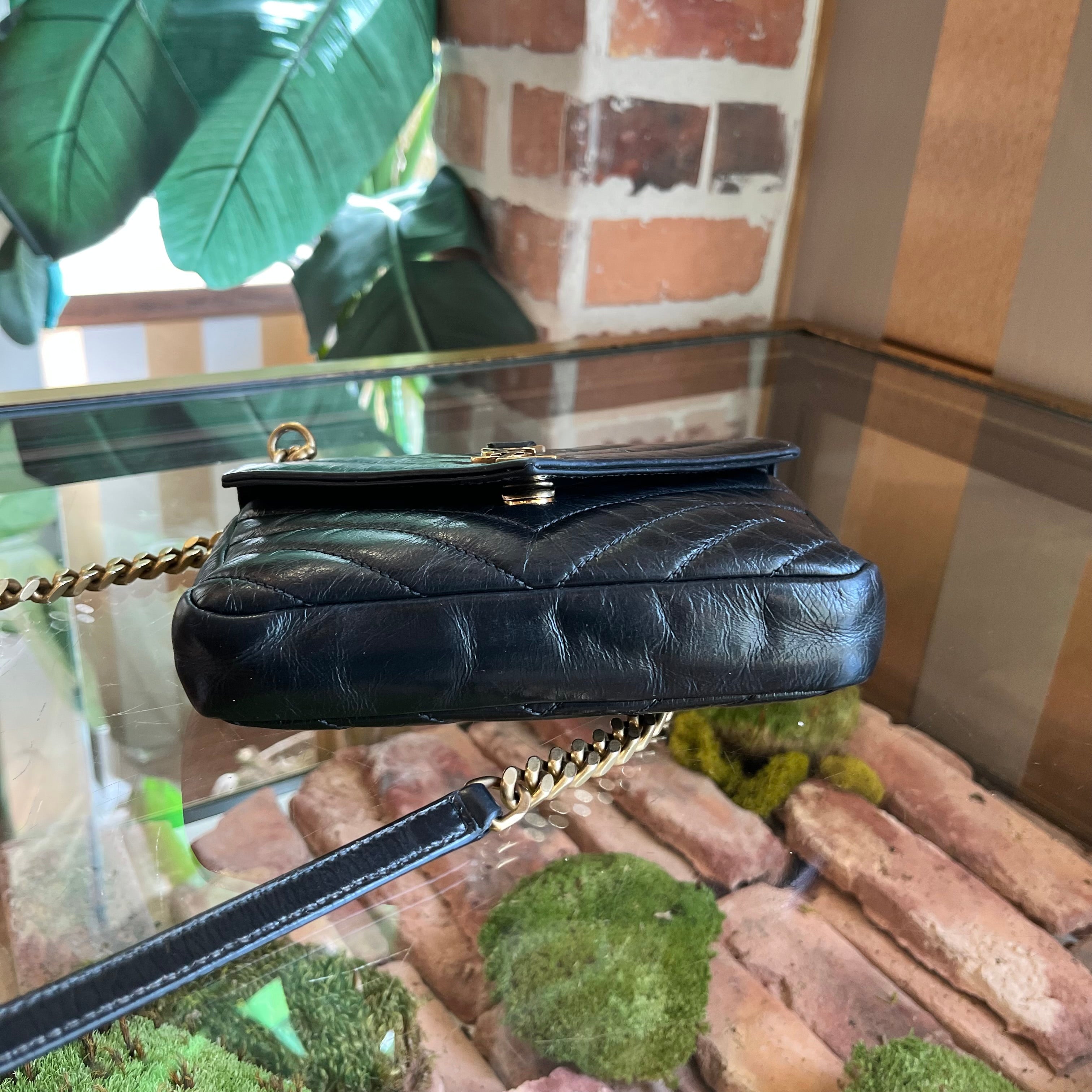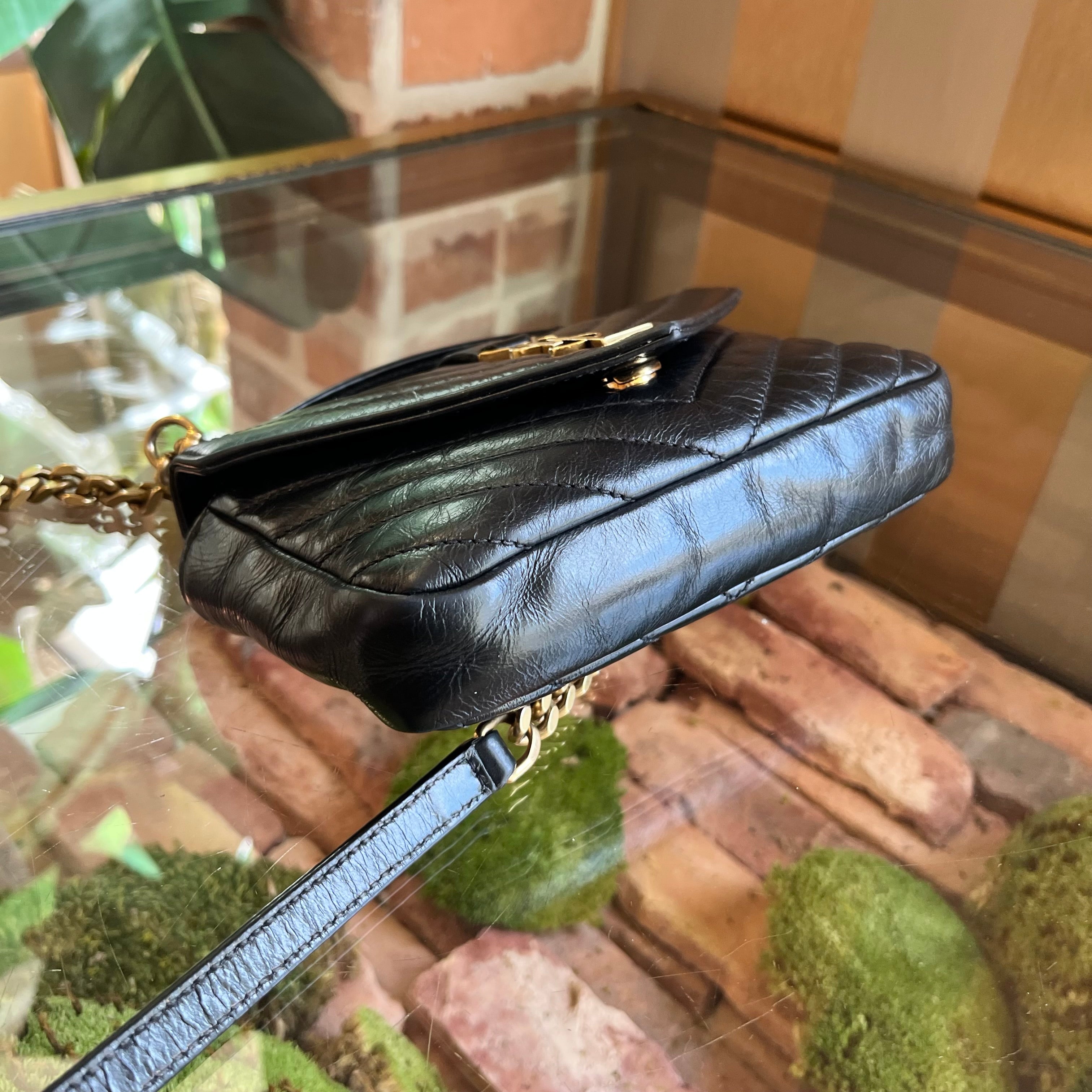 SAINT LAURENT Mini College Shiny Crackled Leather Shoulder Bag