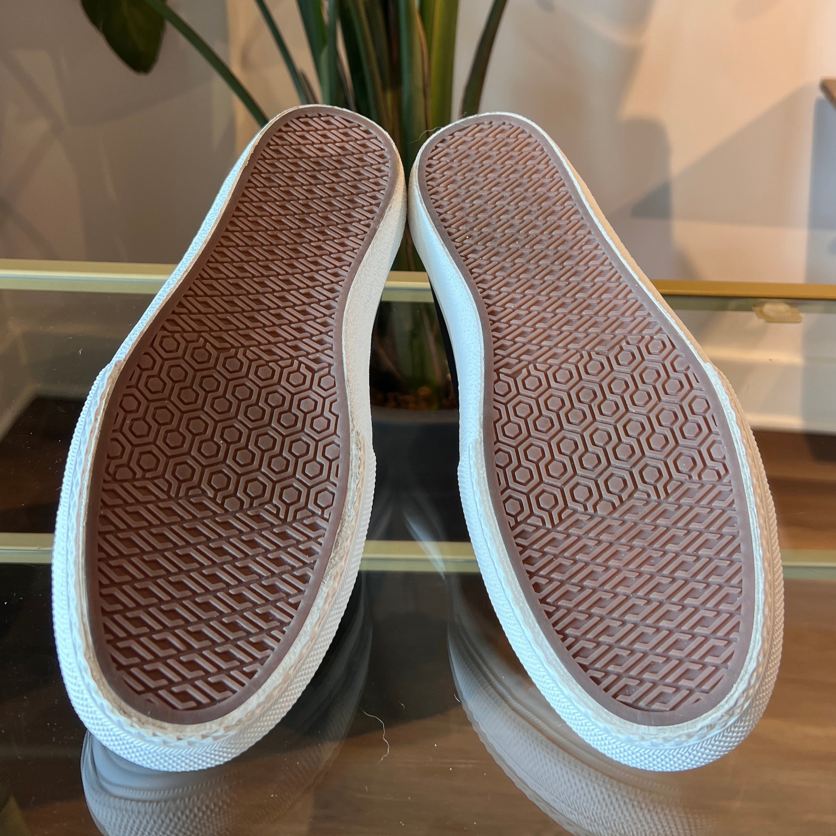 - Exterior: They're in very good condition. The soles are worn consistently with previous moderate use. The rubber midsoles displays scuffing, transfer marks and gentle soiling. The coated canvas displays gentle wear while remaining vibrant and unfaded. Overall, it's in very good condition.