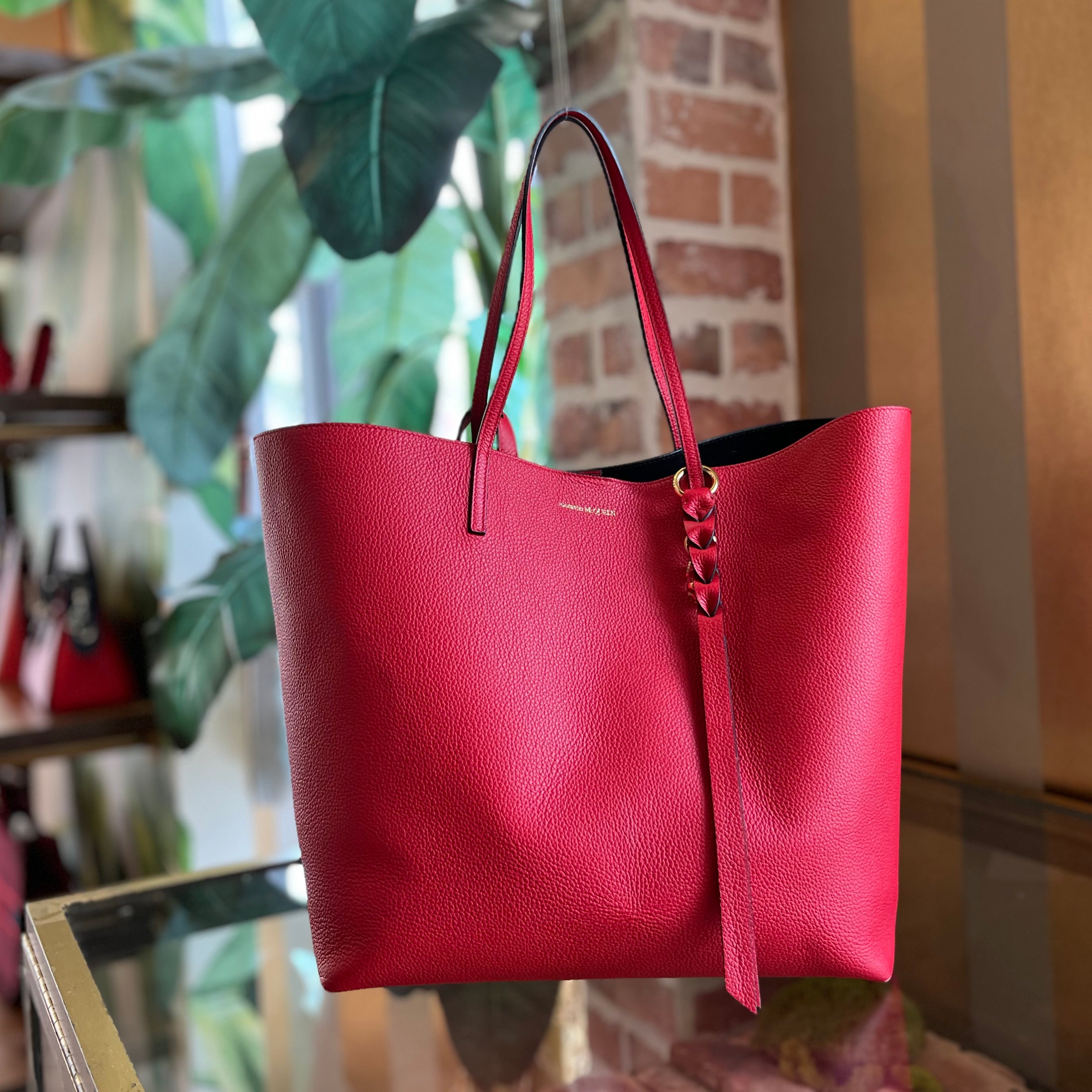 ALEXANDER MCQUEEN Skull Shopper Red Grained Calfskin Tote