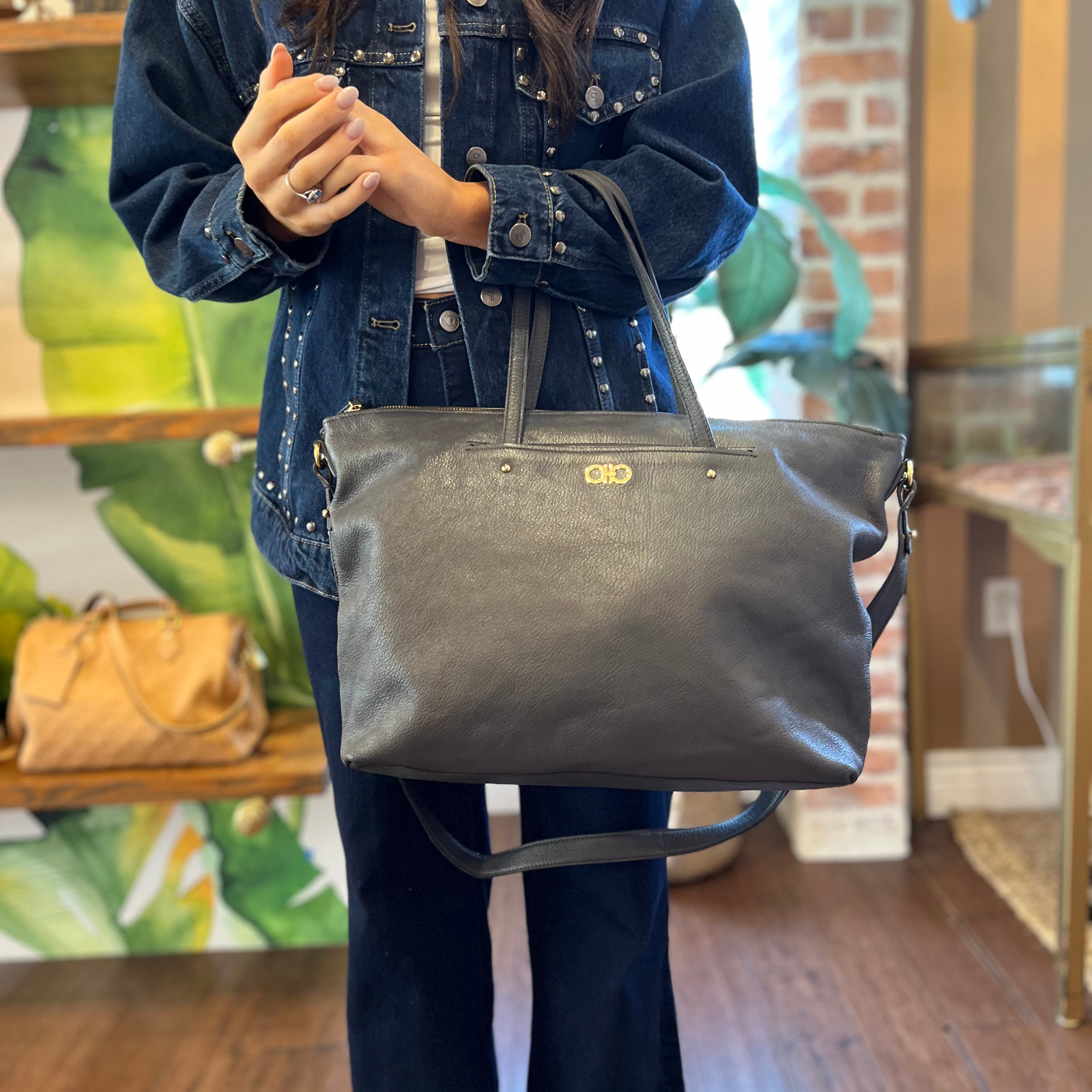 SALVATORE FERRAGAMO Mika Gray Leather Tote Bag