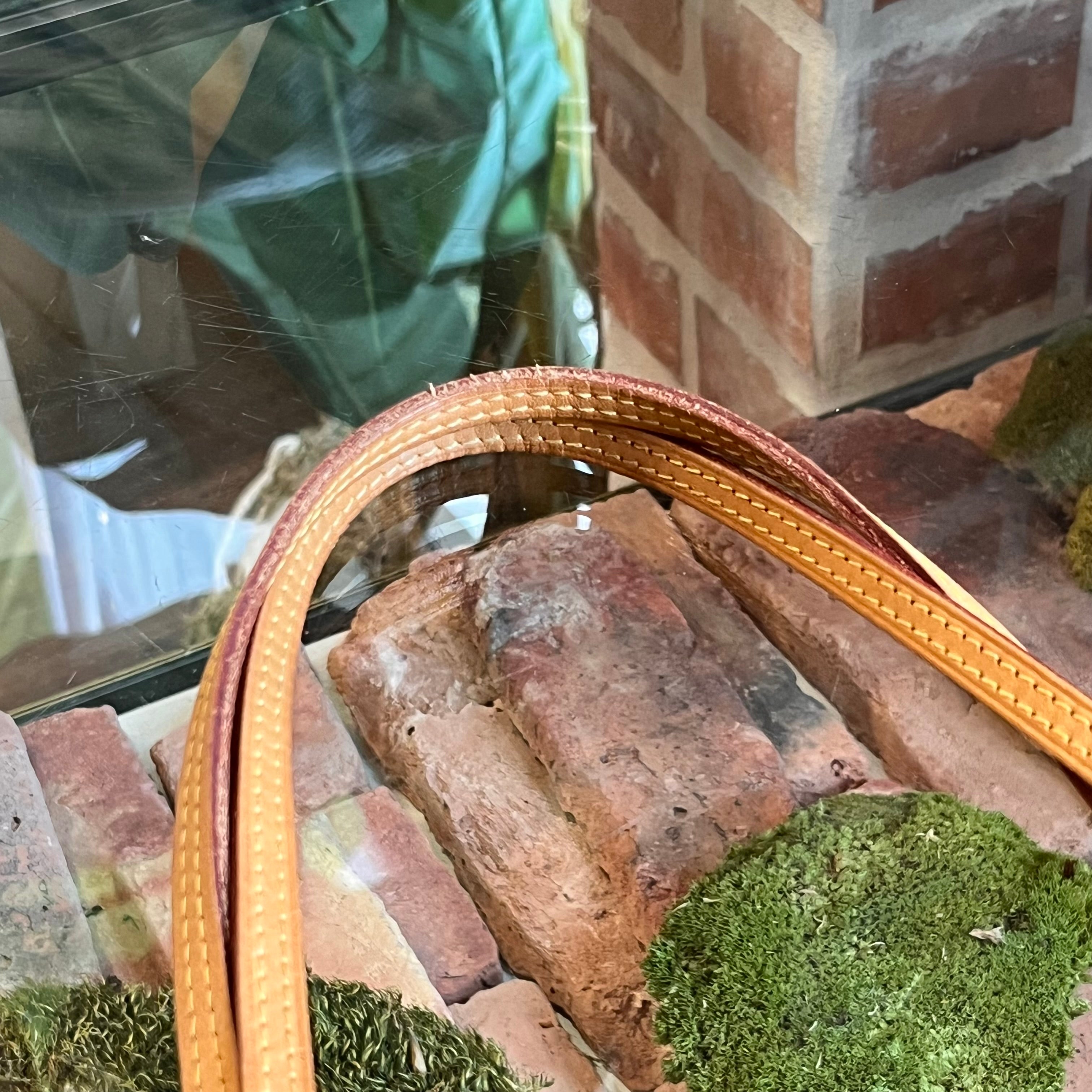 - Handle + Vachetta: The vachetta leather has developed a medium honey patina with areas appearing darker, soiling, gentle lifting, rubbing. scratches, creasing and water/oil spots.