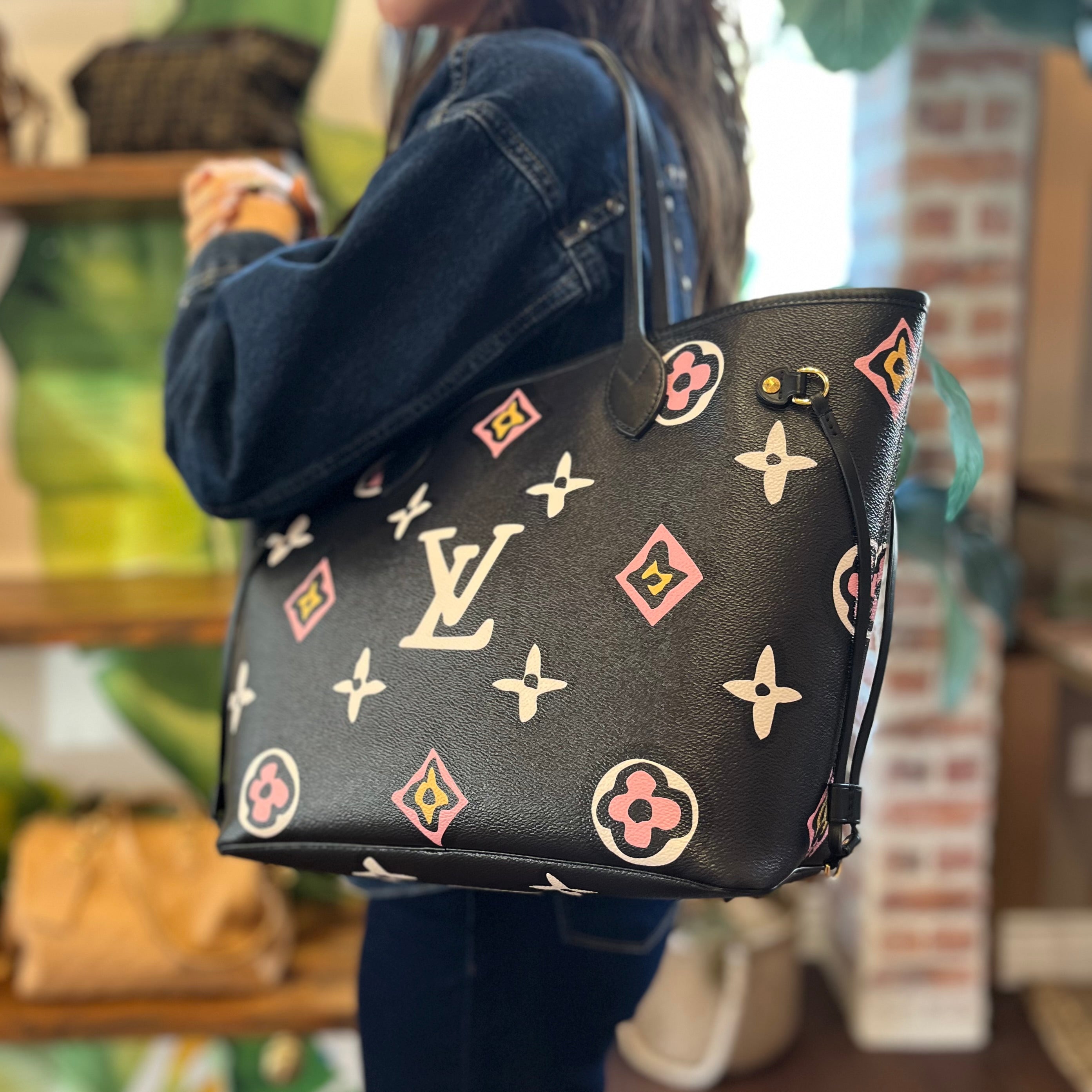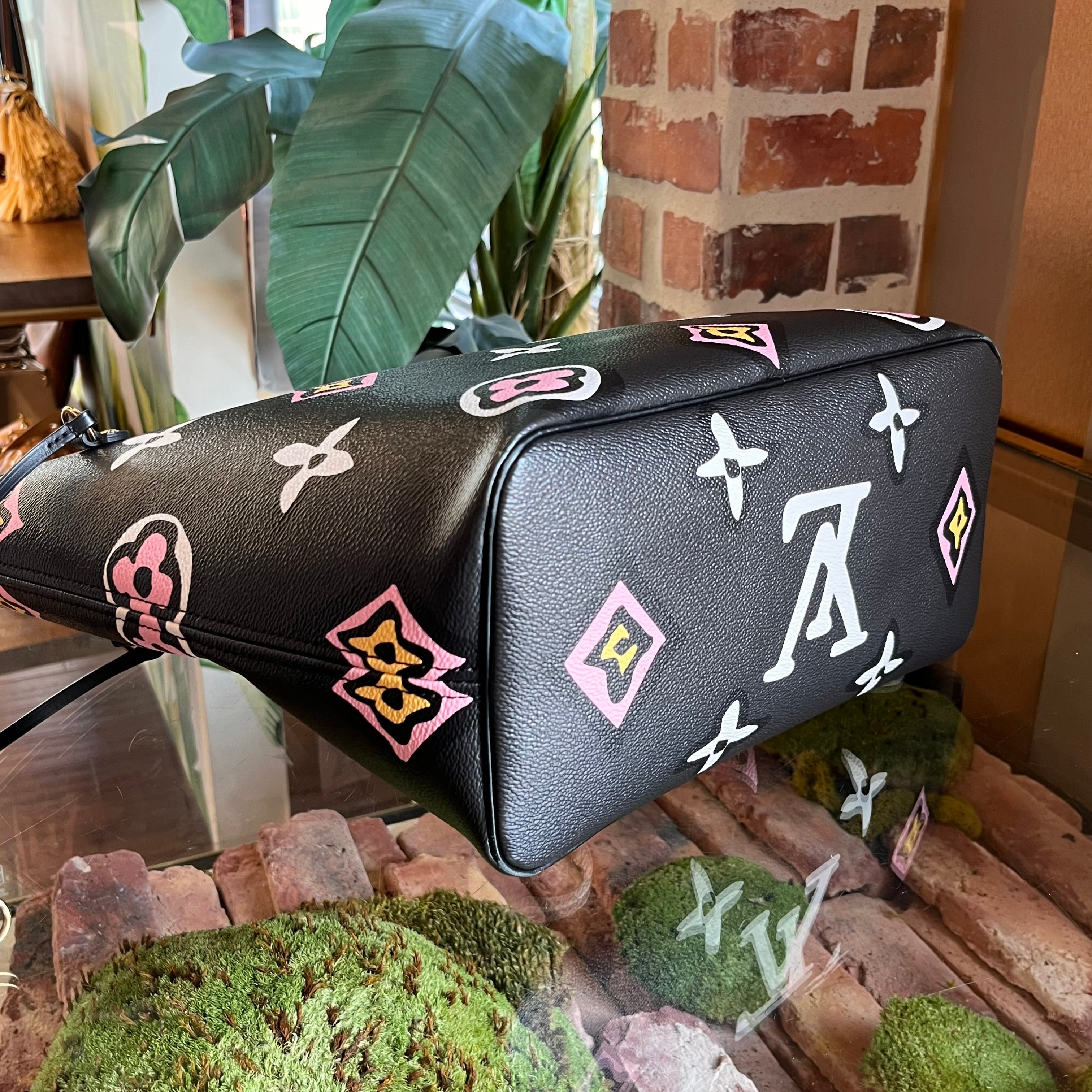 LOUIS VUITTON Neverfull MM Wild At Heart Black Canvas Tote