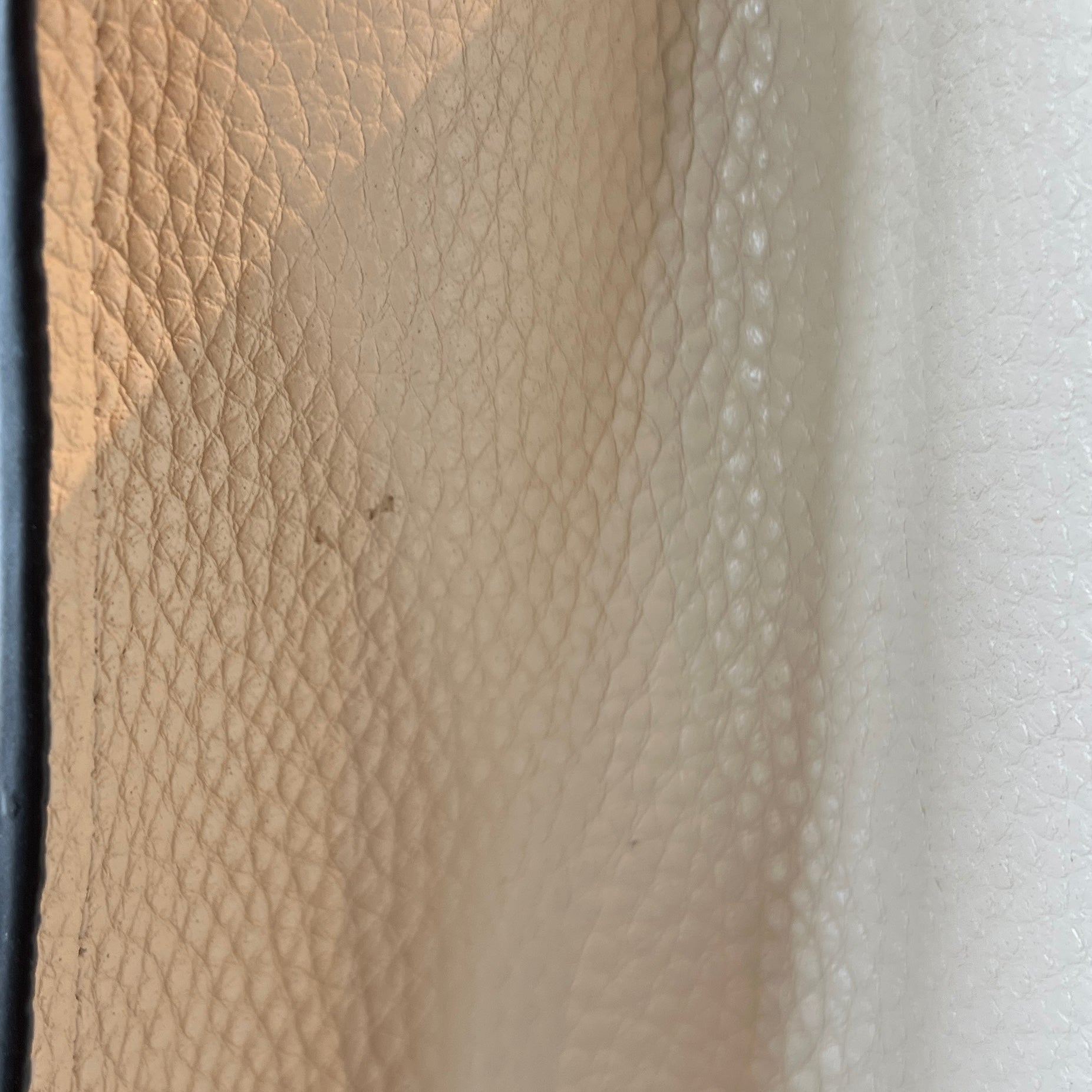 - Interior: The leather lining features some white markings, which may be inherent to the material or a result of handling. Scratches.