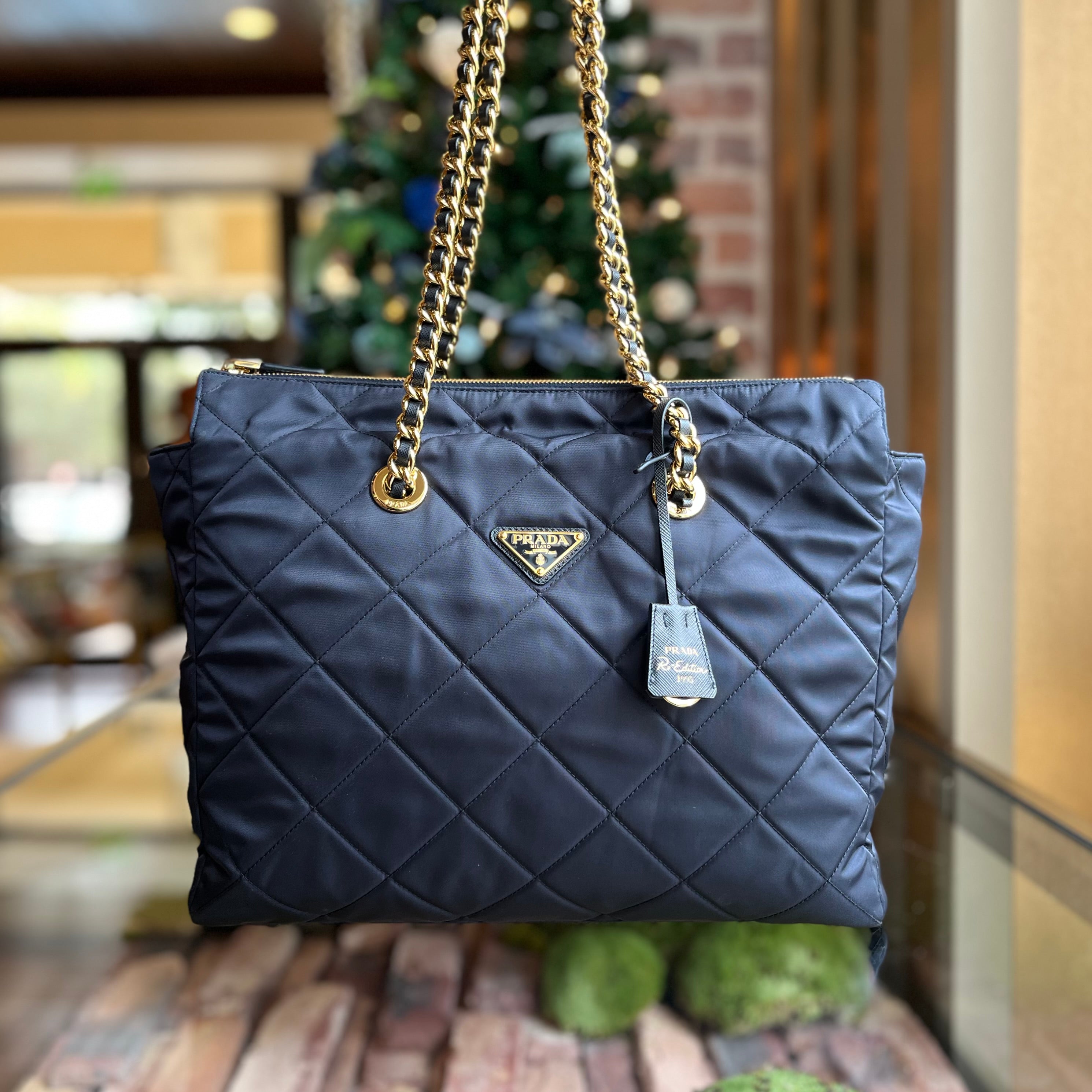 PRADA 1995 Re-Edition Large Navy Blue Impuntu Quilted Nylon Tote Bag