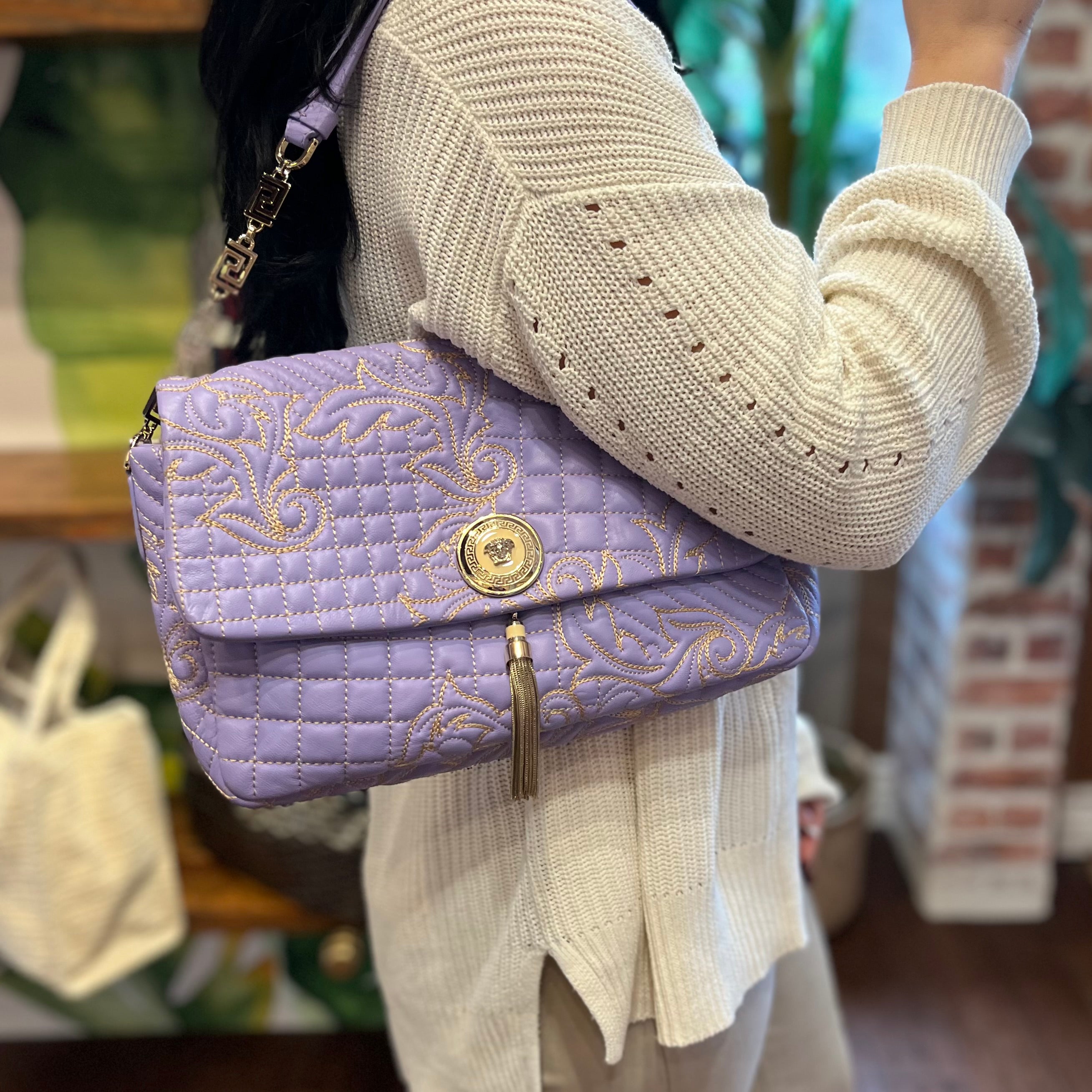 VERSACE Vanitas Medea Flap Purple Quilted Barocco Shoulder Bag