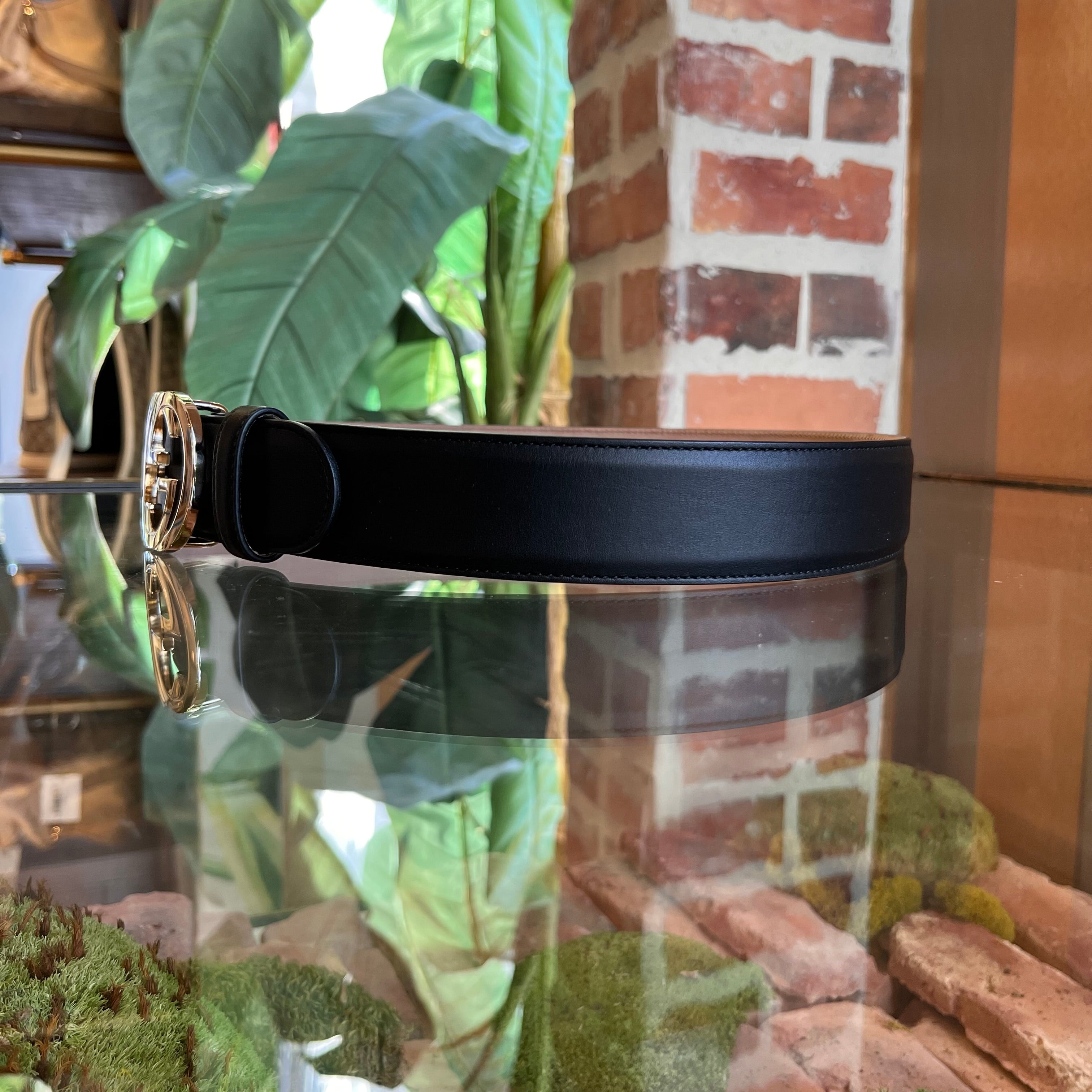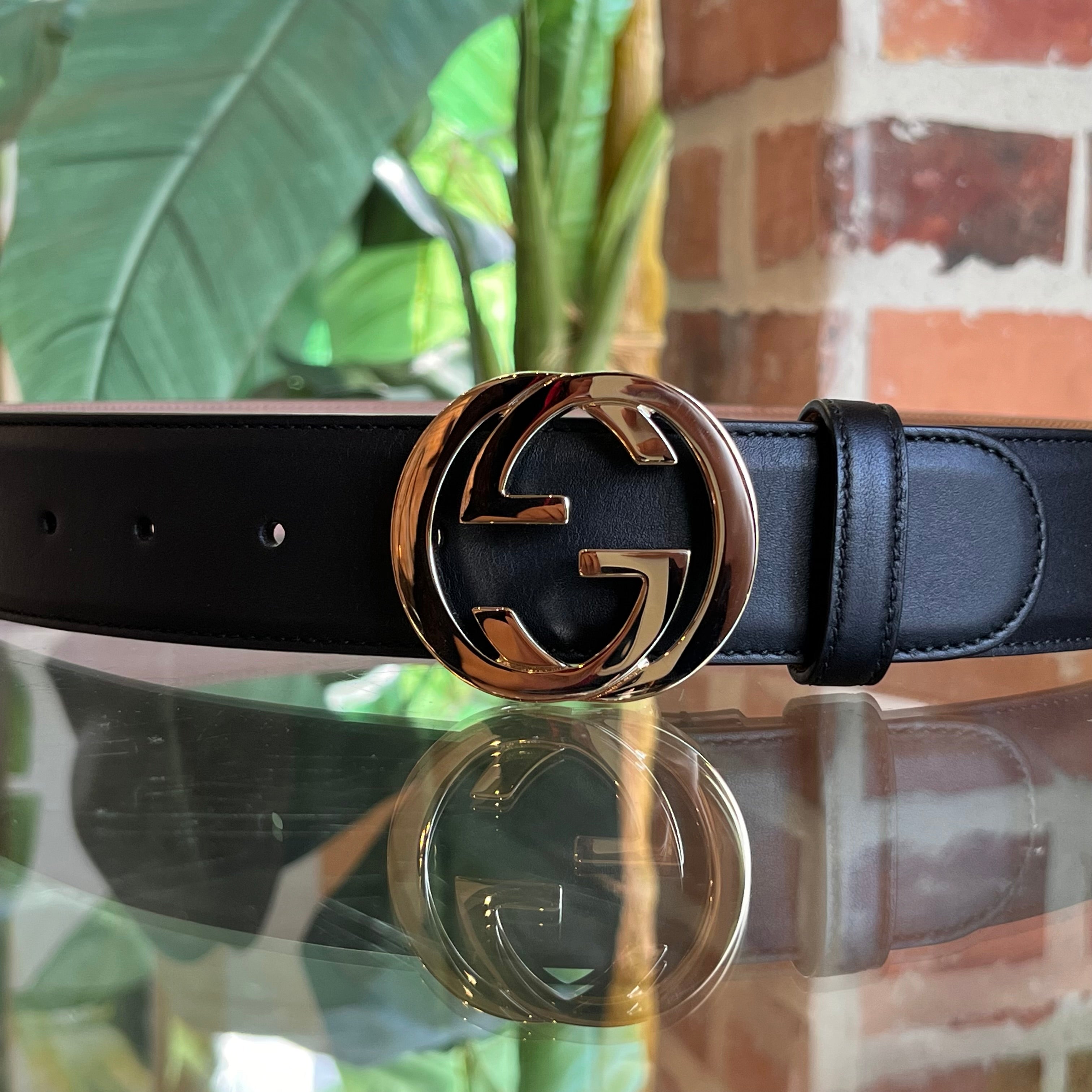 GUCCI Interlocking G Black Leather Belt 75/30(2US)