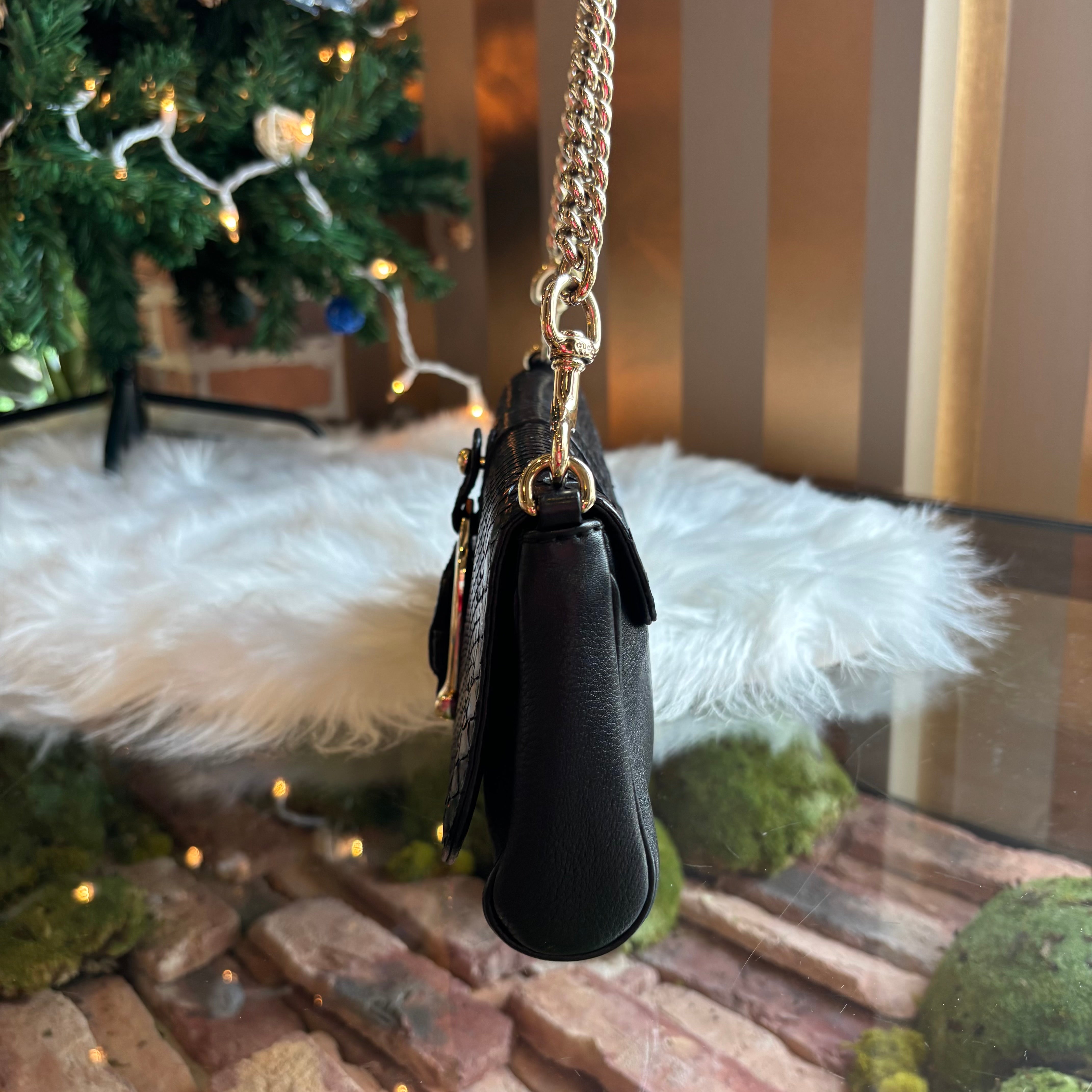 GUCCI Black Python Greenwich Chain Clutch