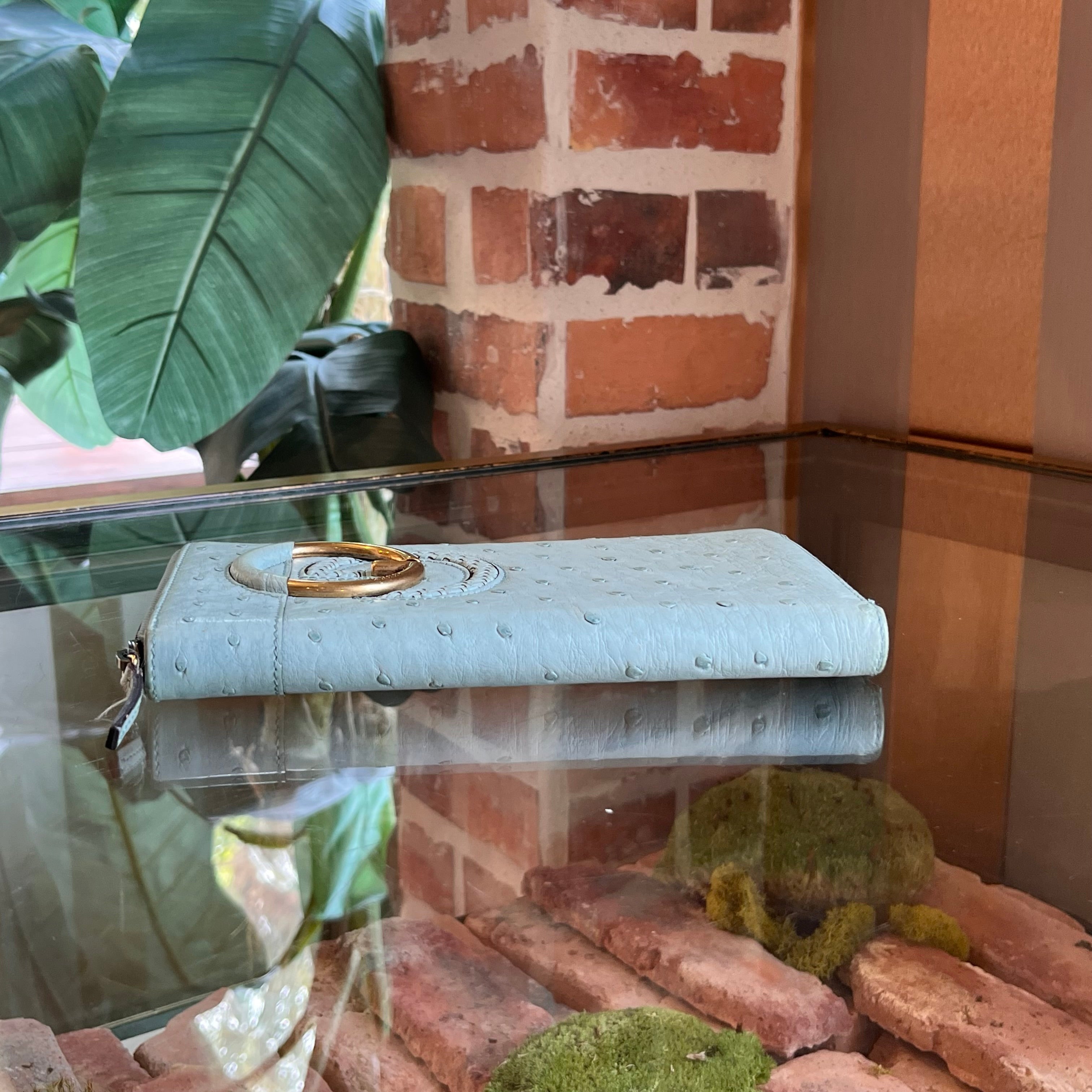 GUCCI Long Zip Organizer Blue Ostrich Interlocking G Wallet