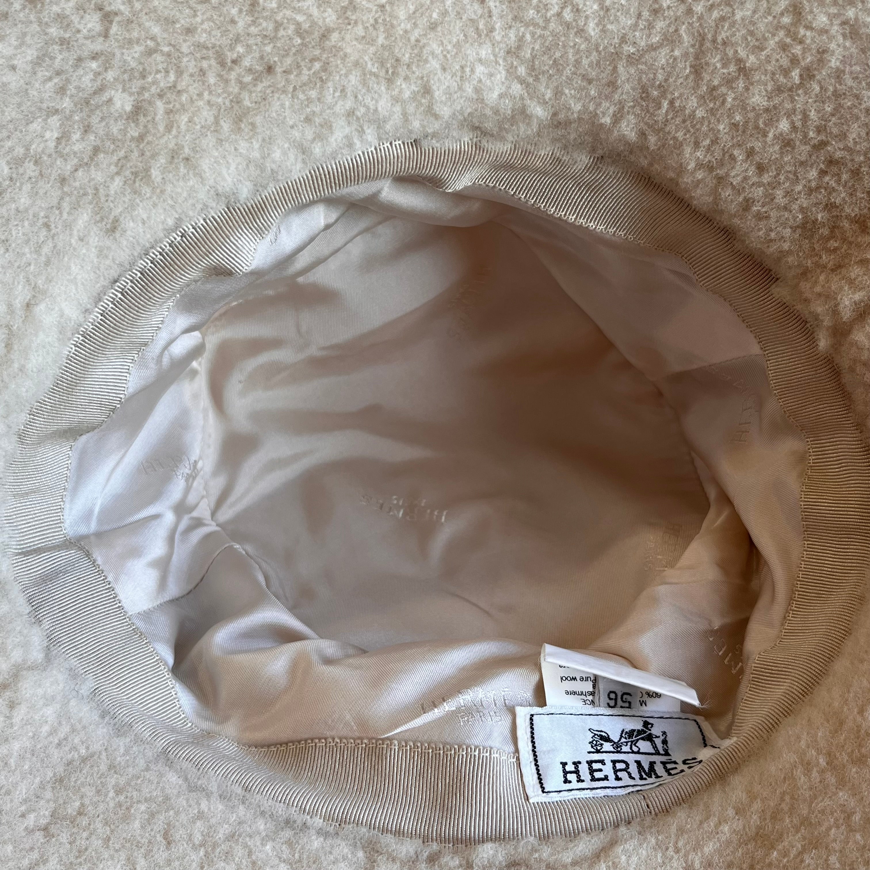HERMES Beige Shearling Cashmere Bucket Hat SZ56