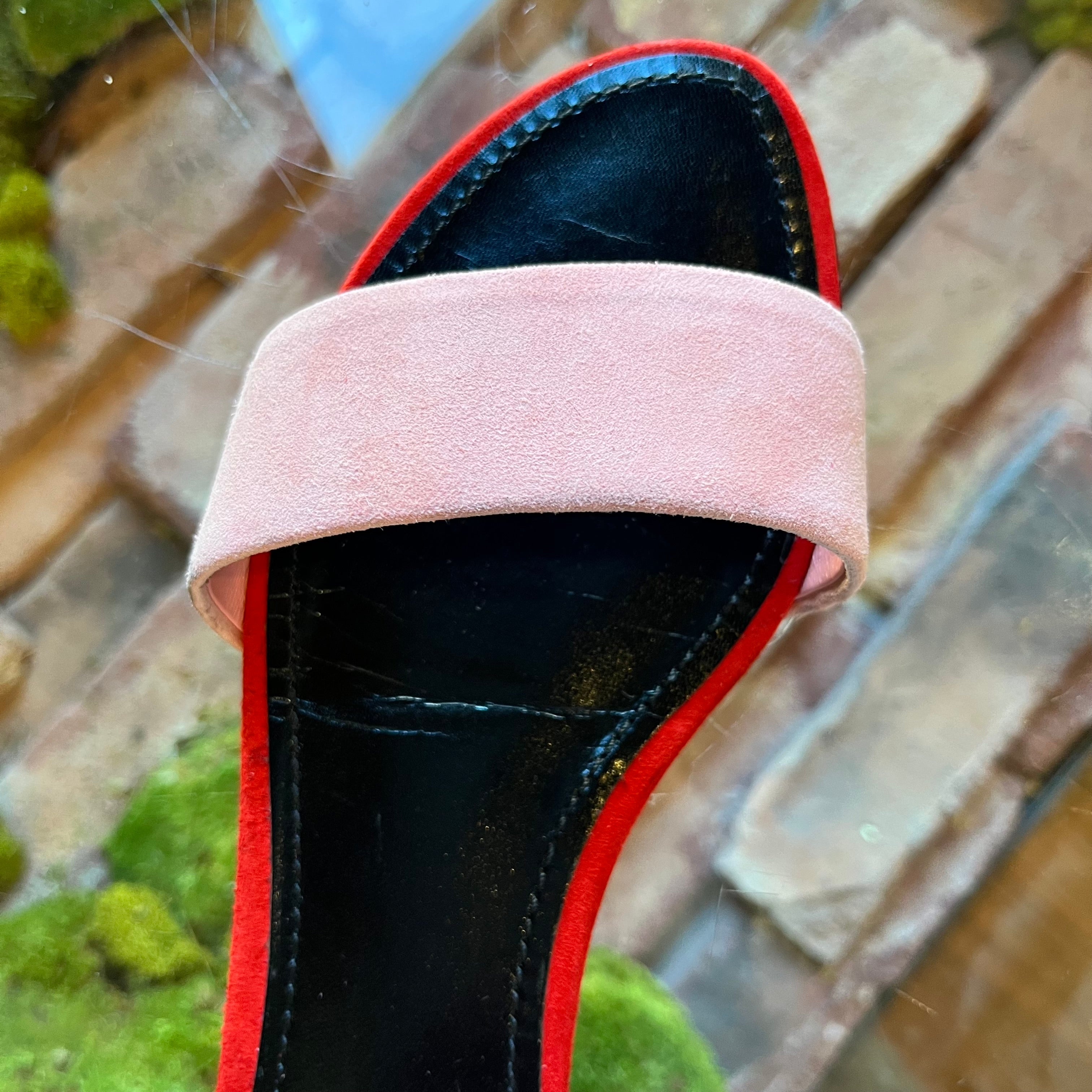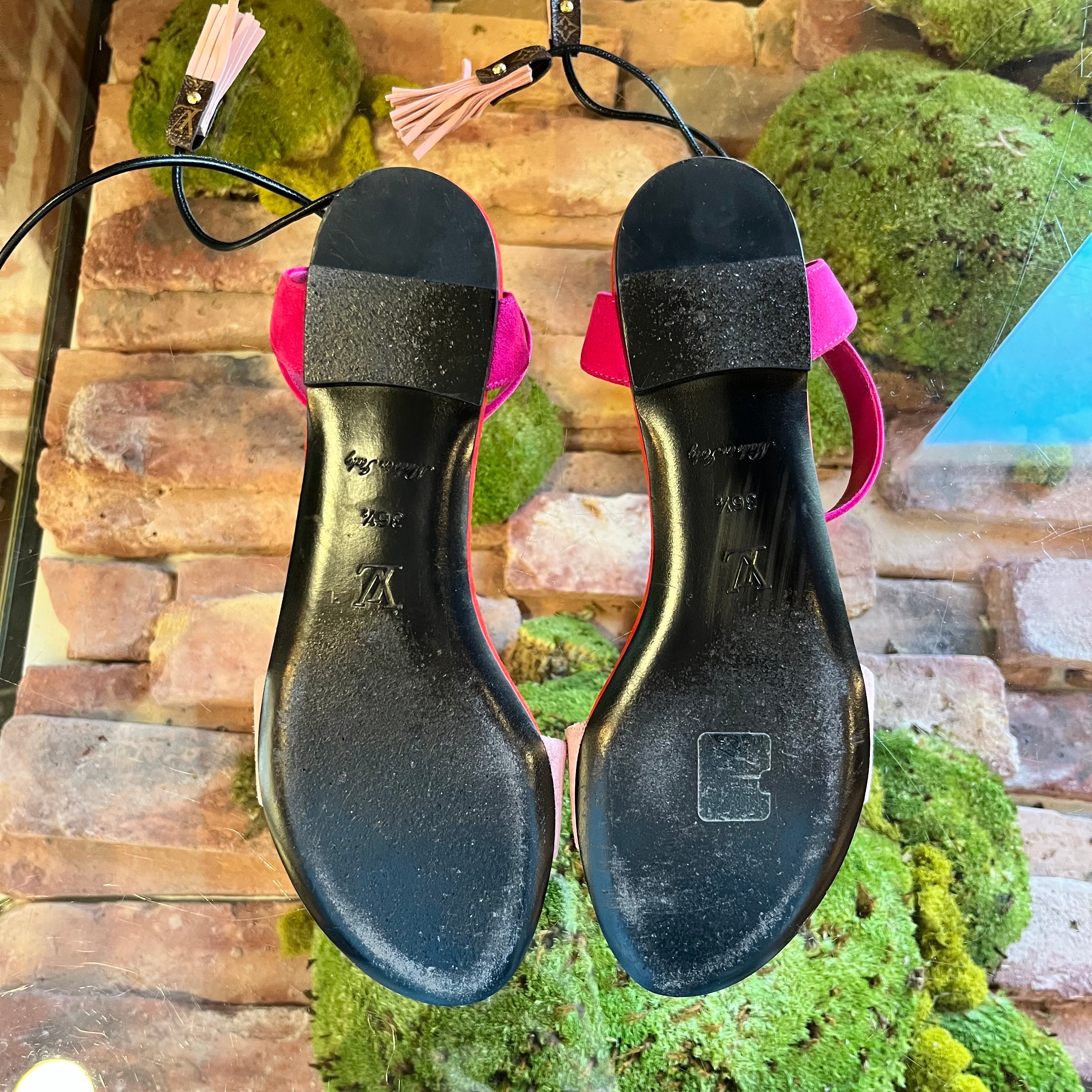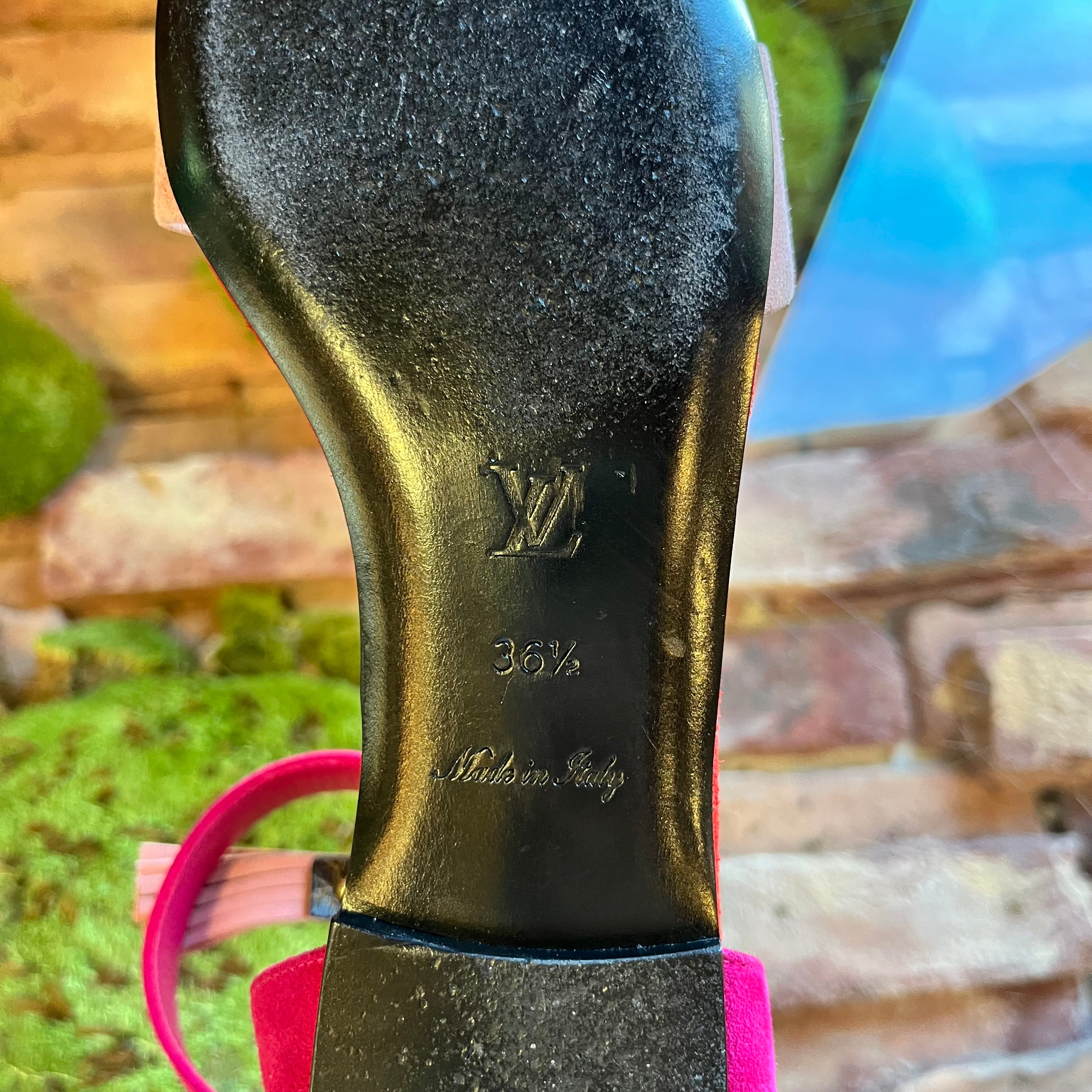 LOUIS VUITTON Pink Red Suede Rita Flat Sandals SZ 36.5 (6.5 US)