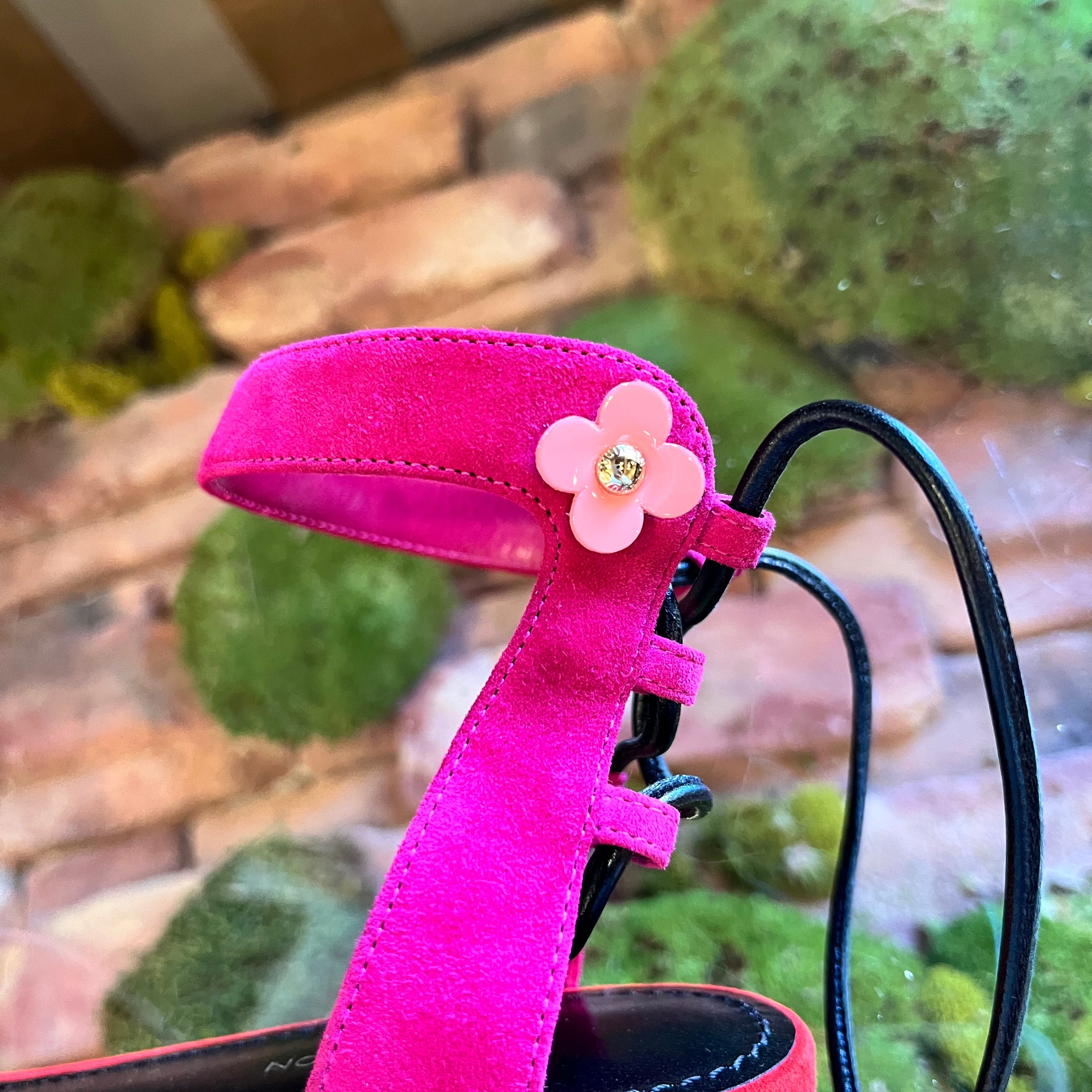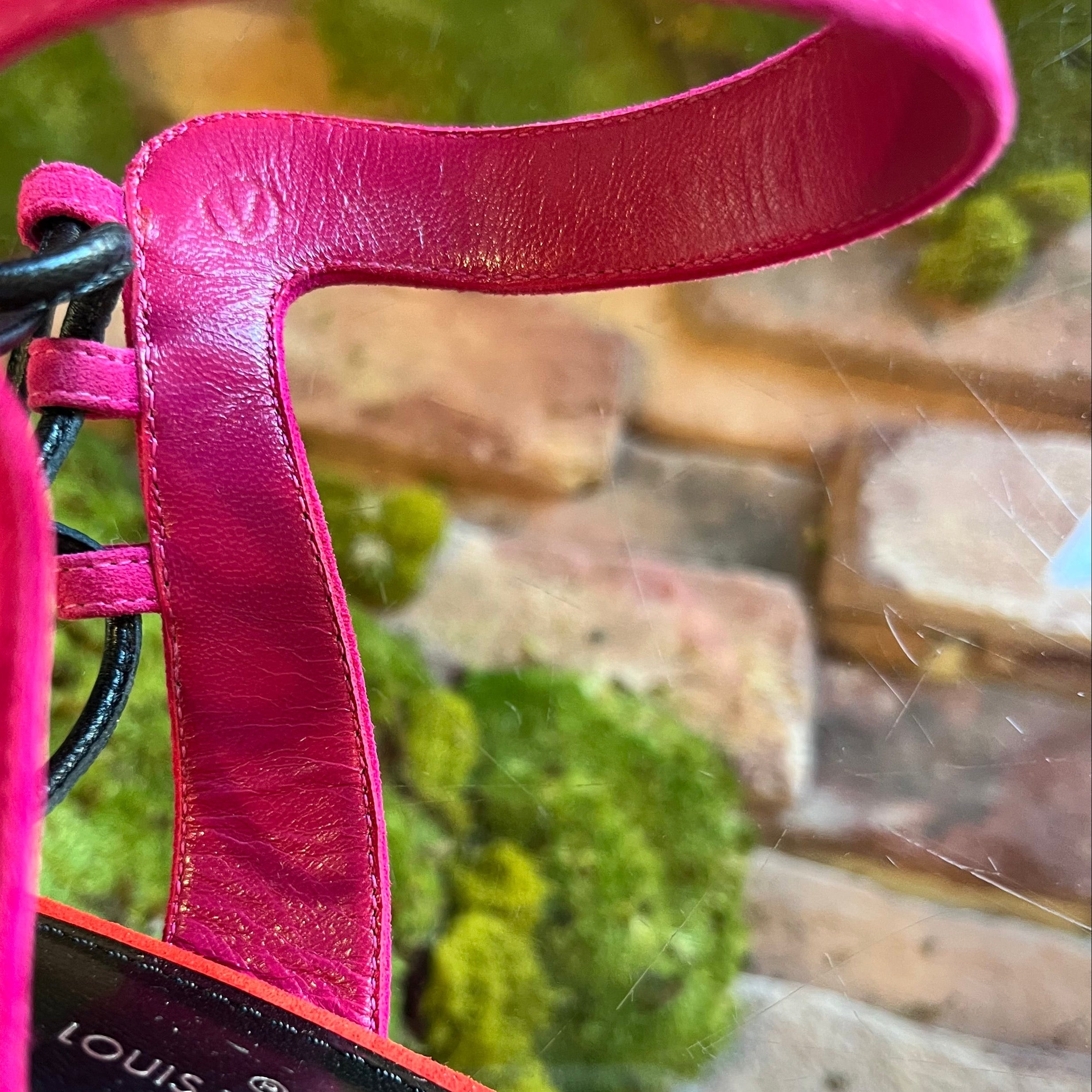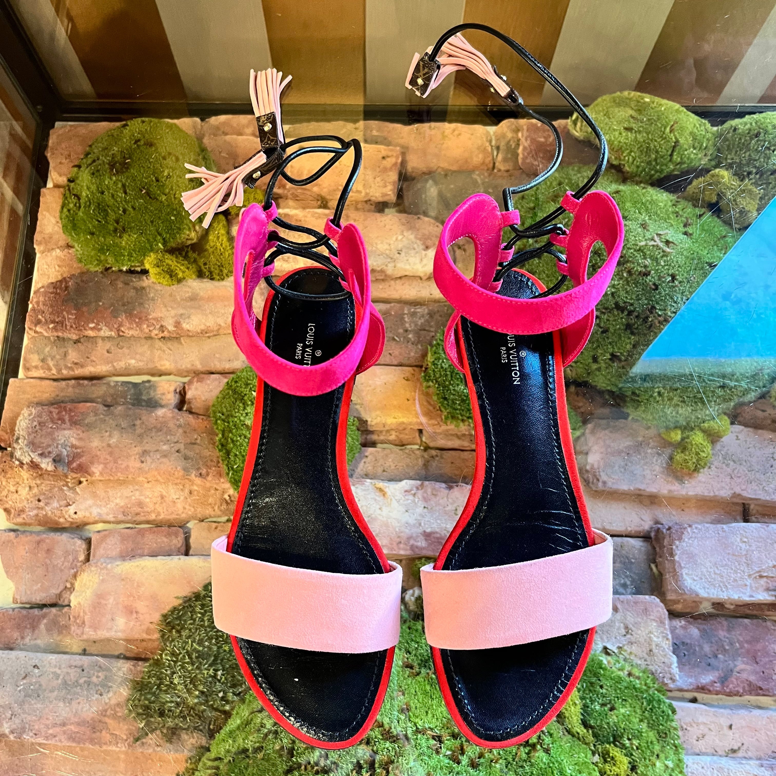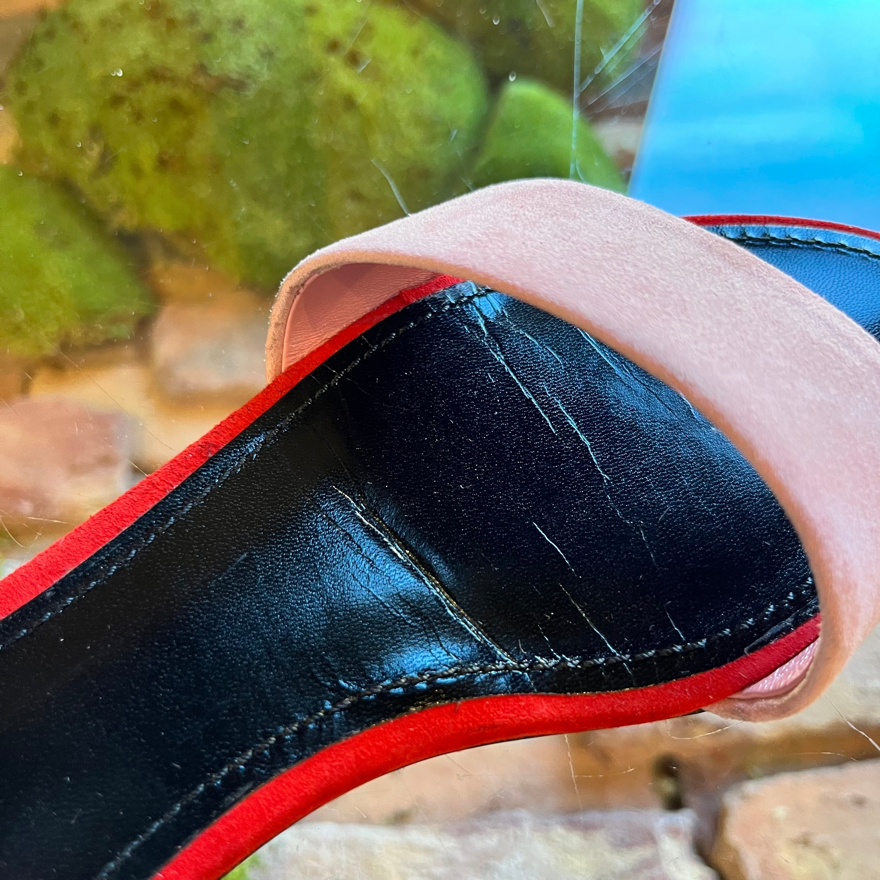 LOUIS VUITTON Pink Red Suede Rita Flat Sandals SZ 36.5 (6.5 US)