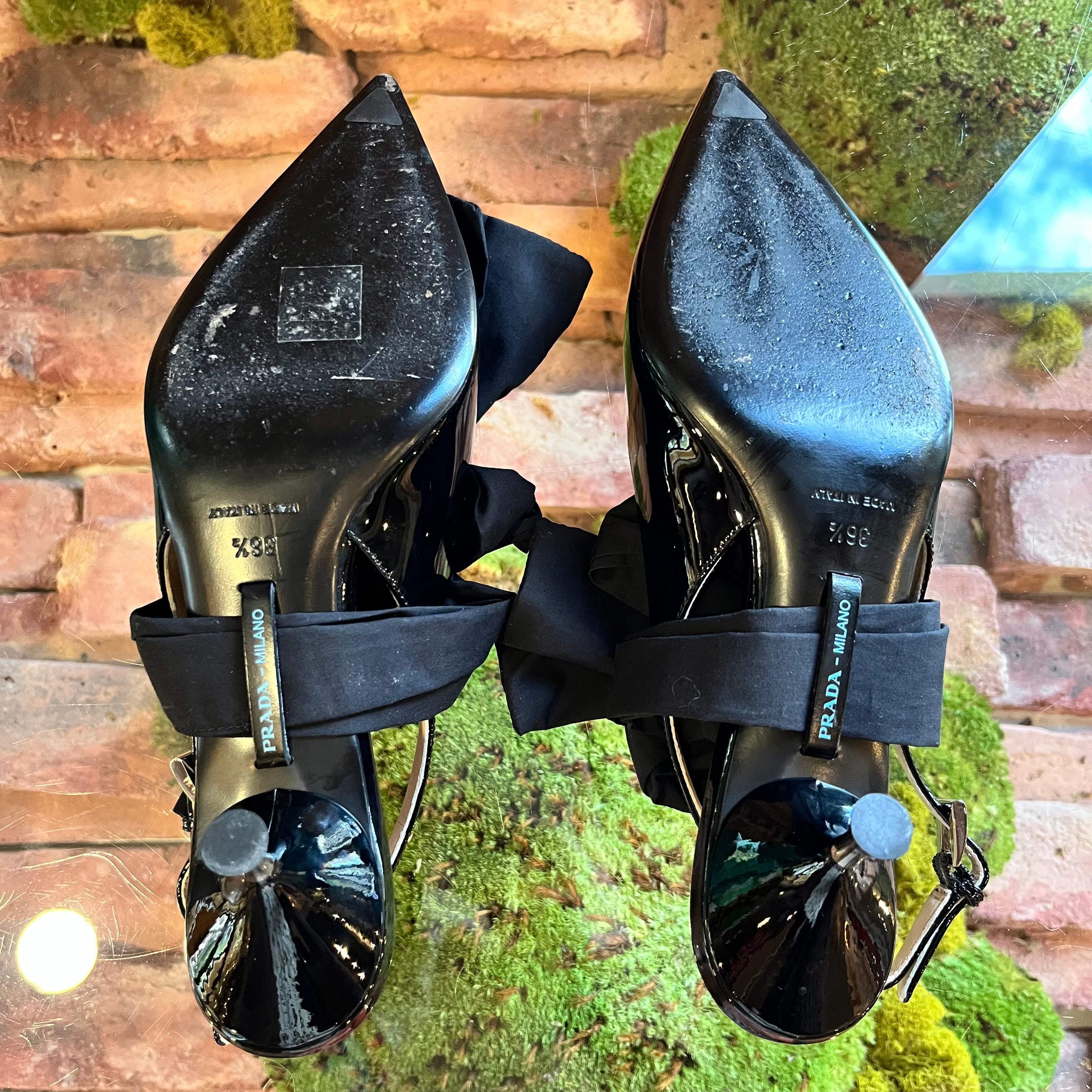 PRADA Black Patent Leather Pointed Toe Sling Backs w/bow SZ 36.5 (6.5 US)