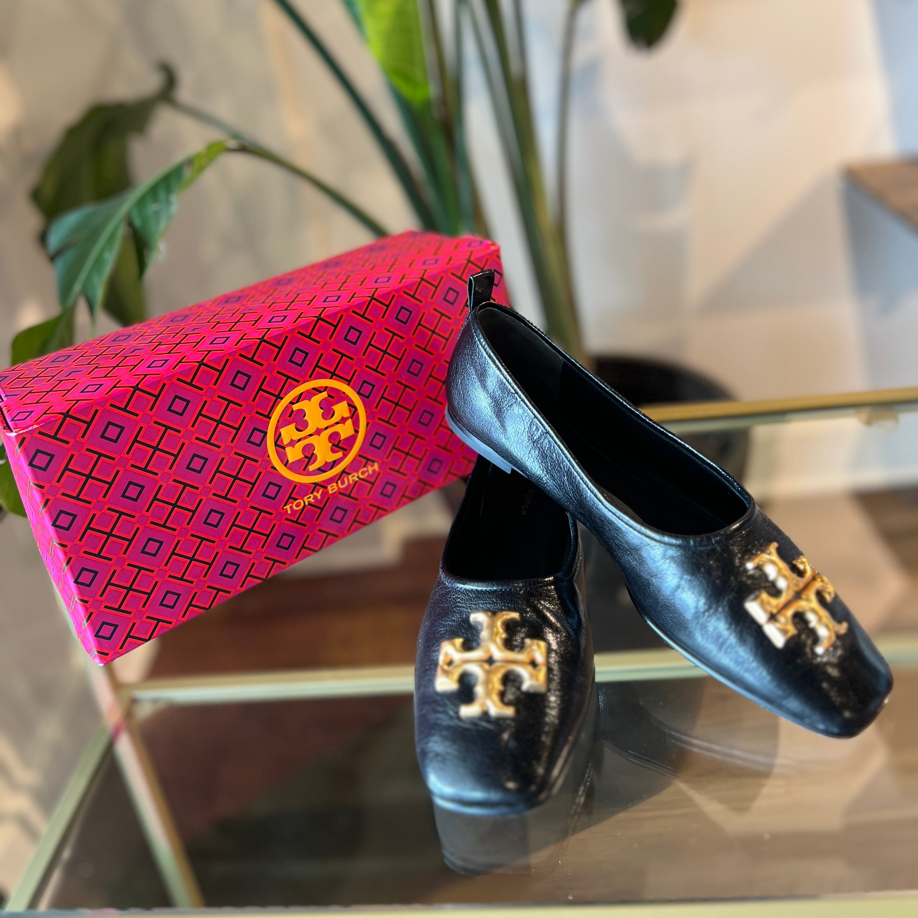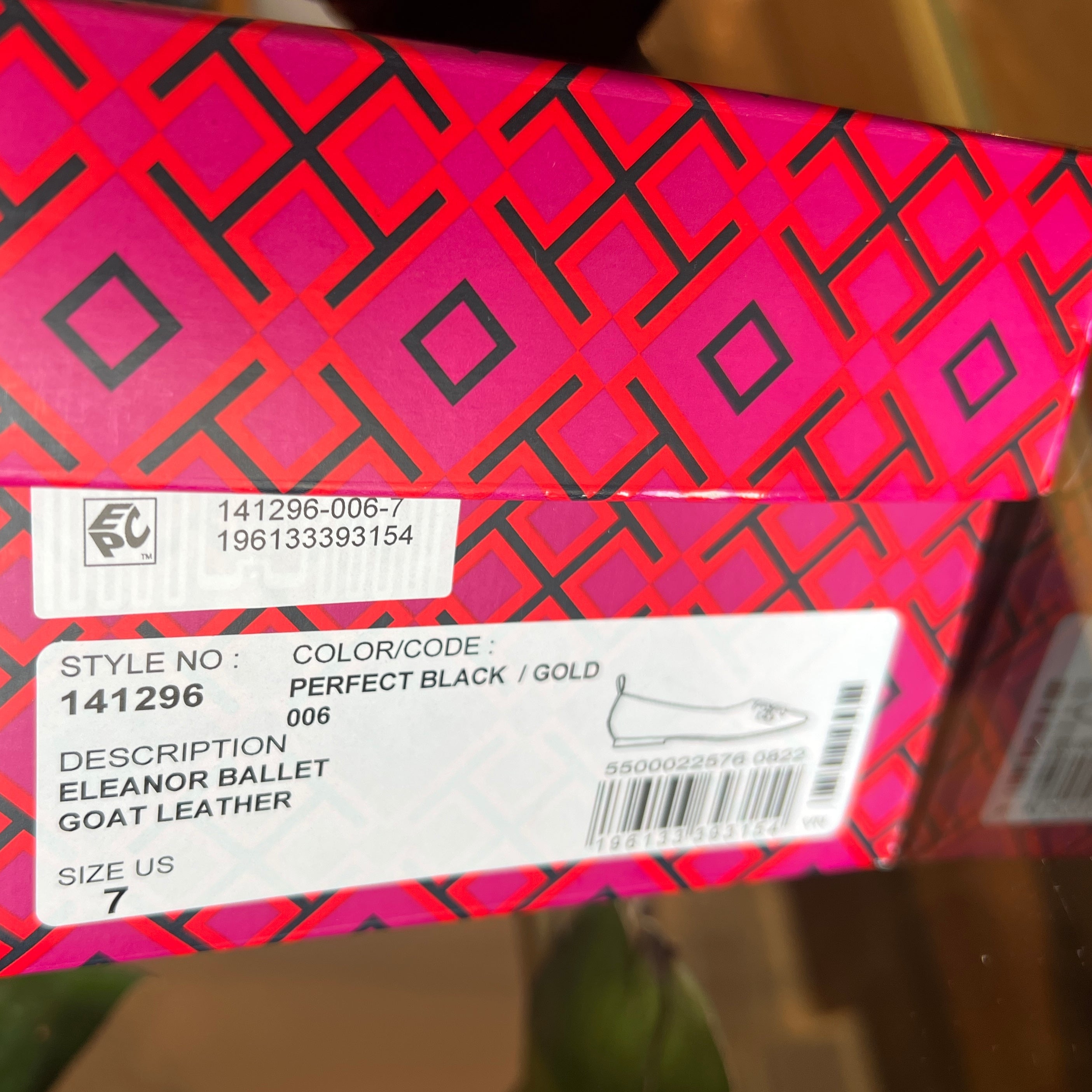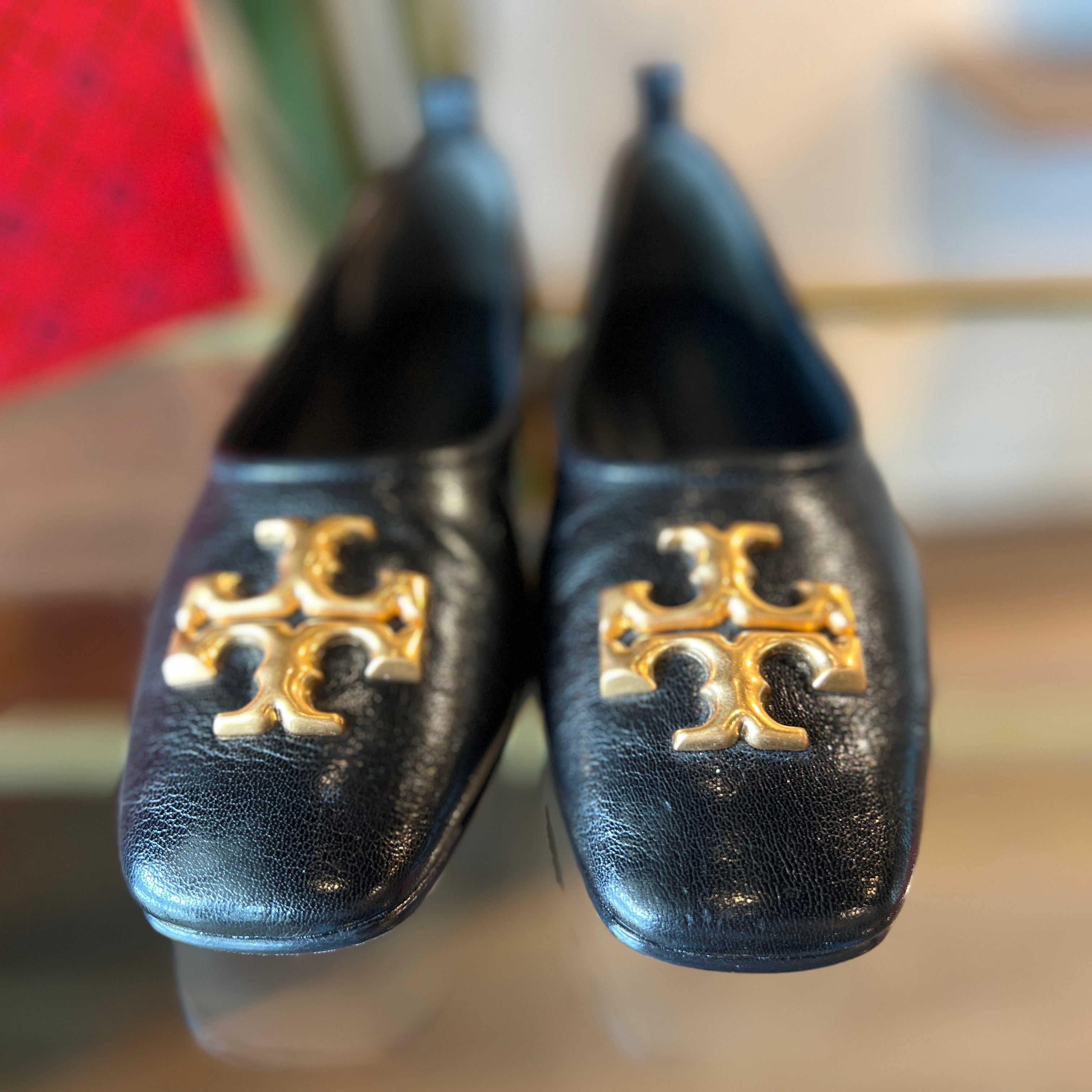 TORY BURCH Eleanor Ballet Flats Black and Gold SZ 7