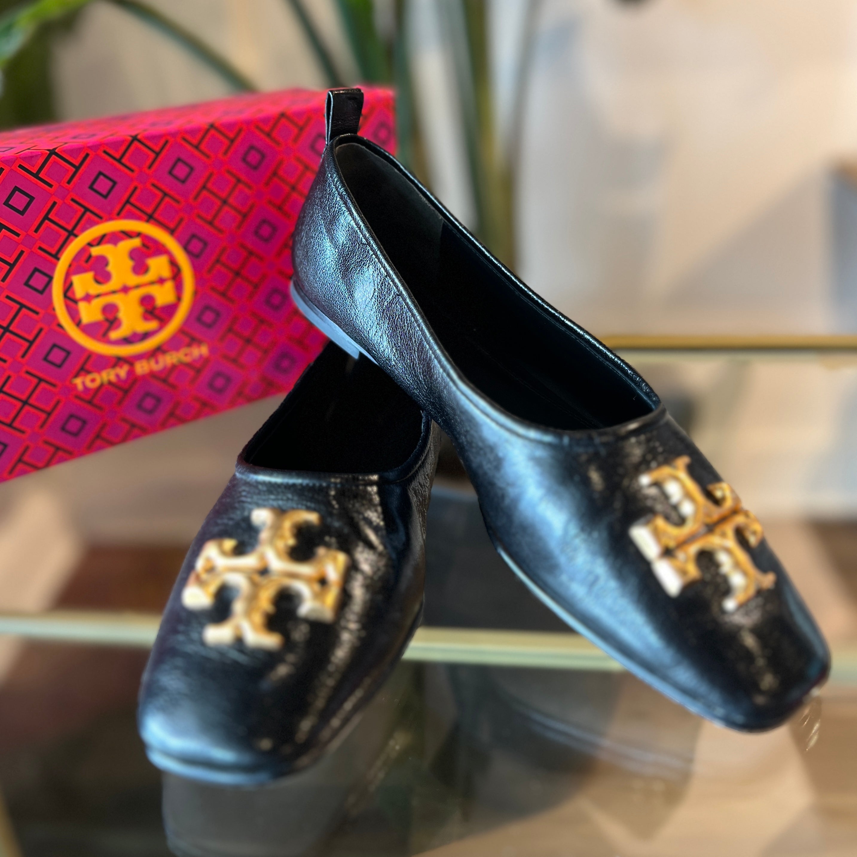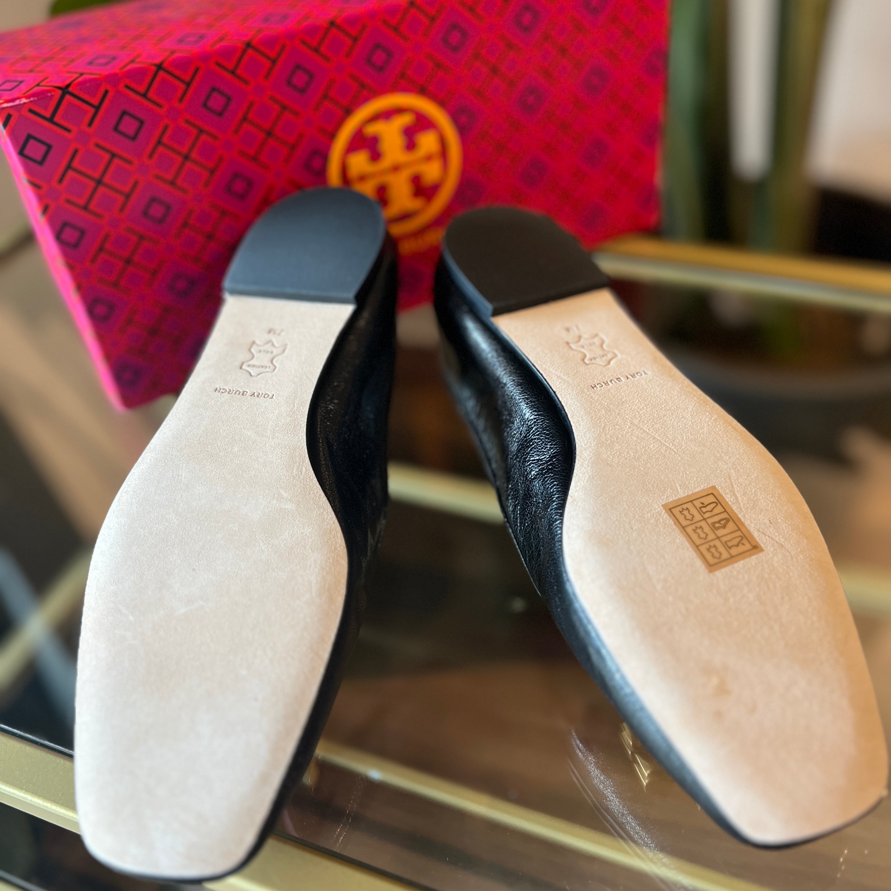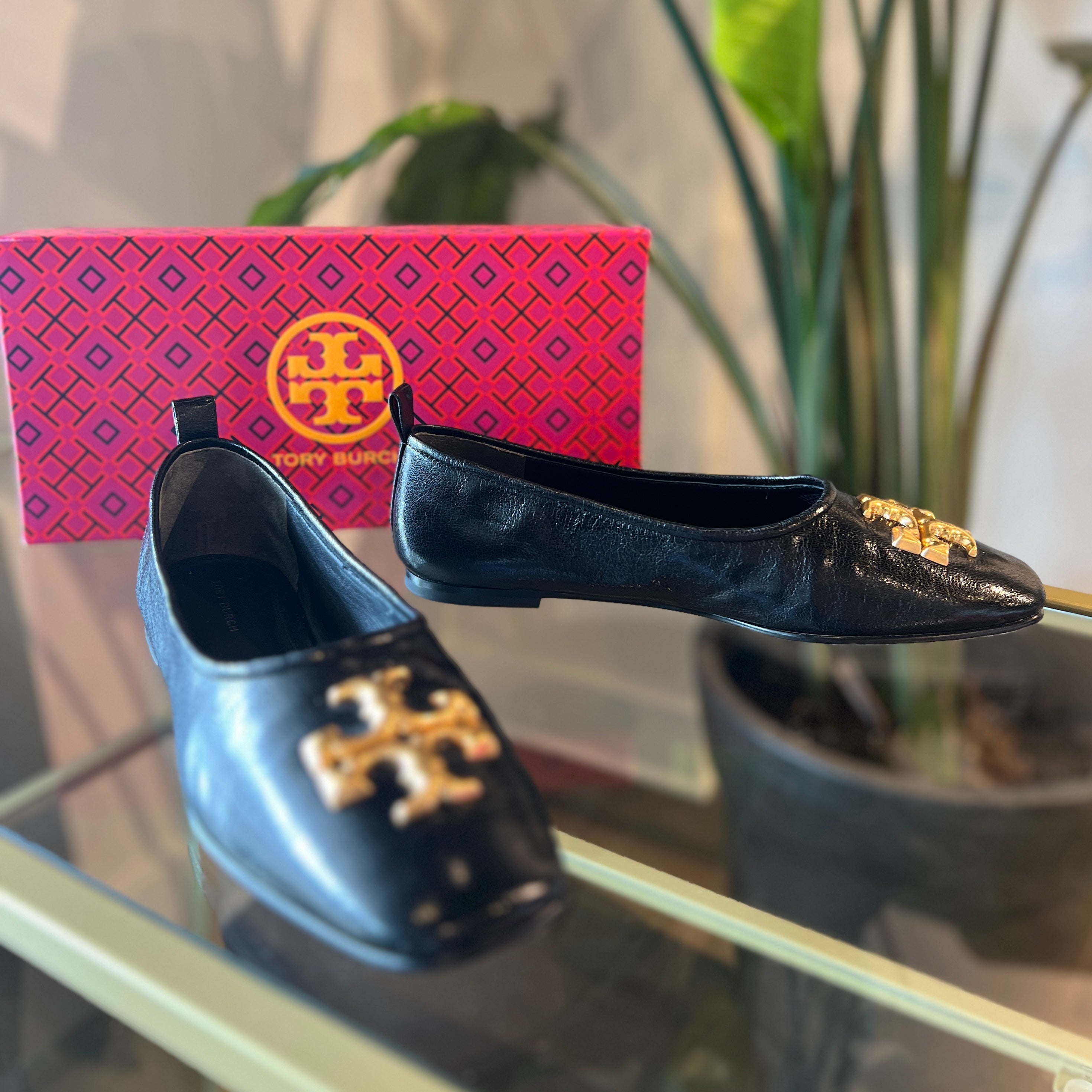 TORY BURCH Eleanor Ballet Flats Black and Gold SZ 7