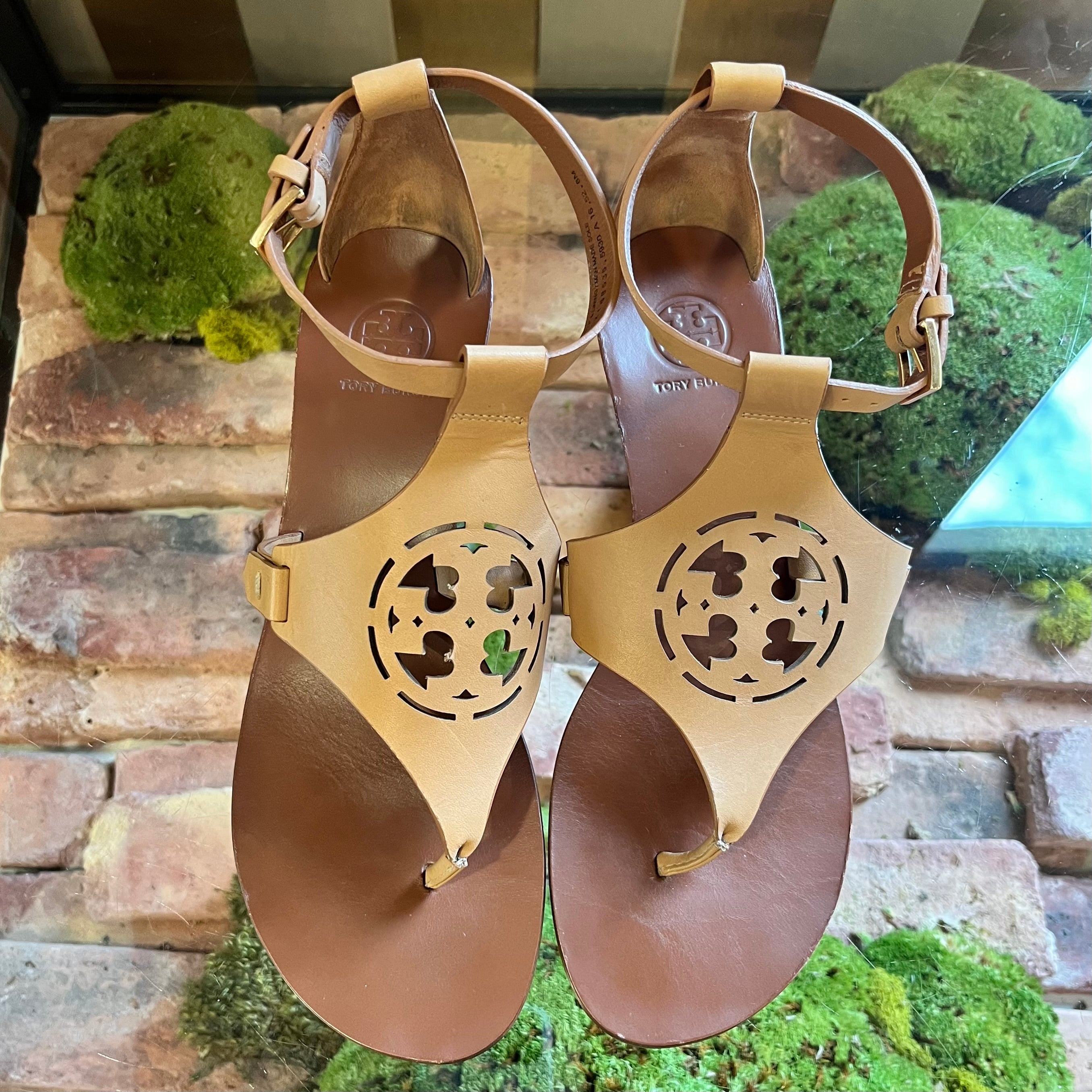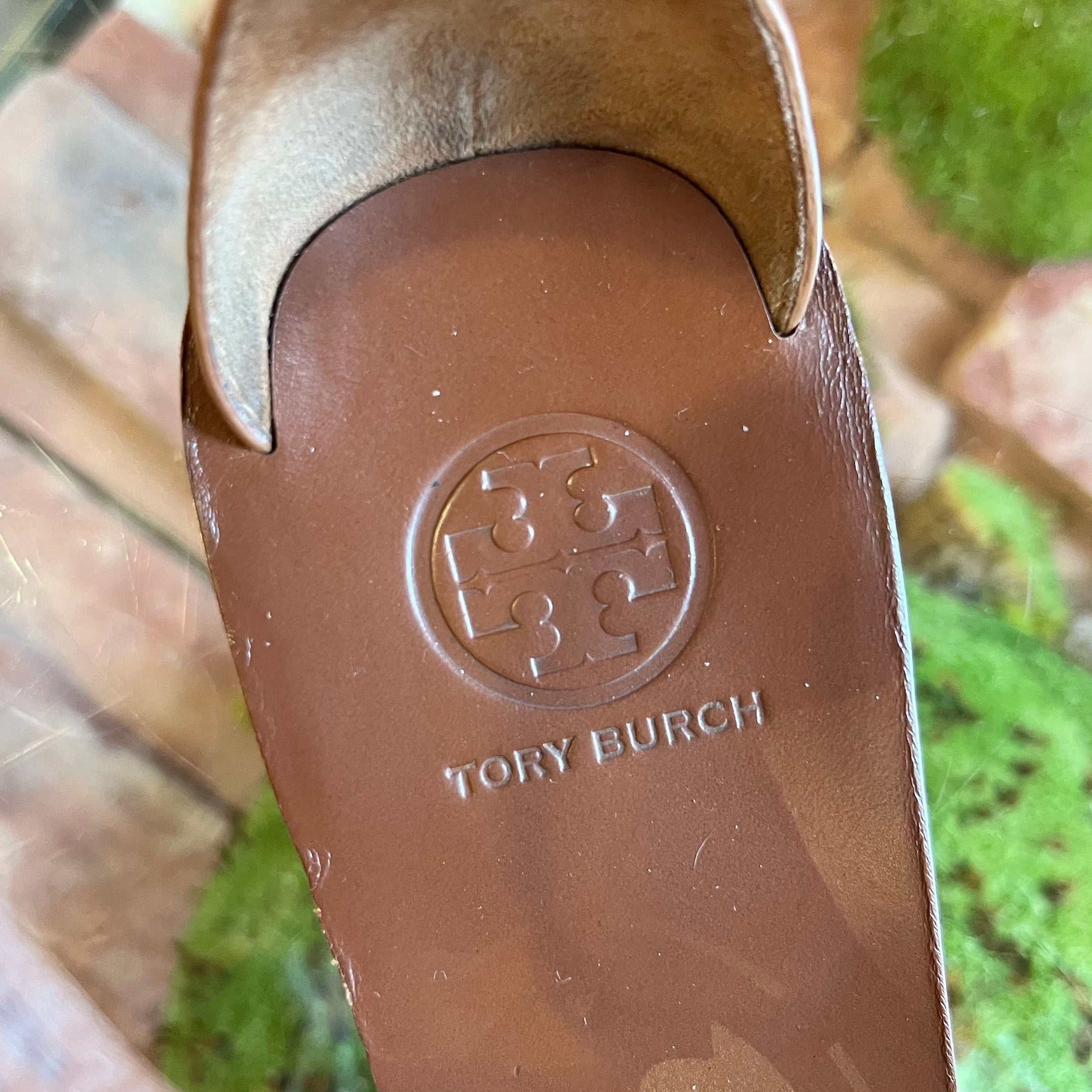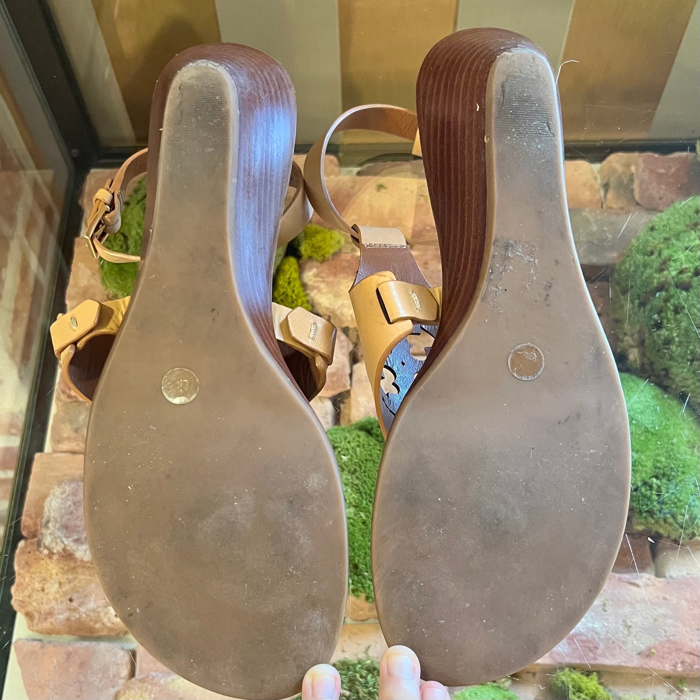 TORY BURCH Tan Leather Zoey Ankle Wedges SZ 38 (8 US)