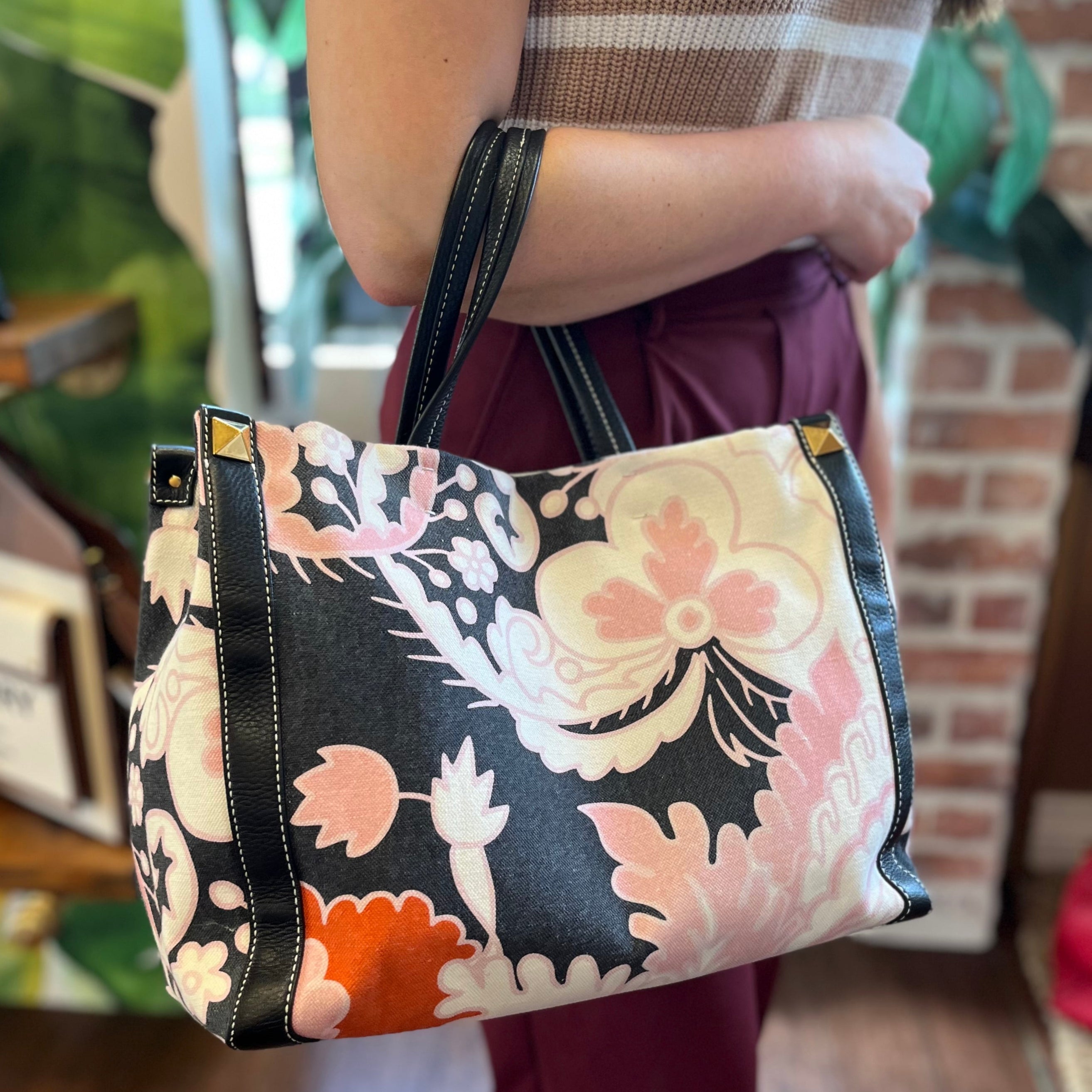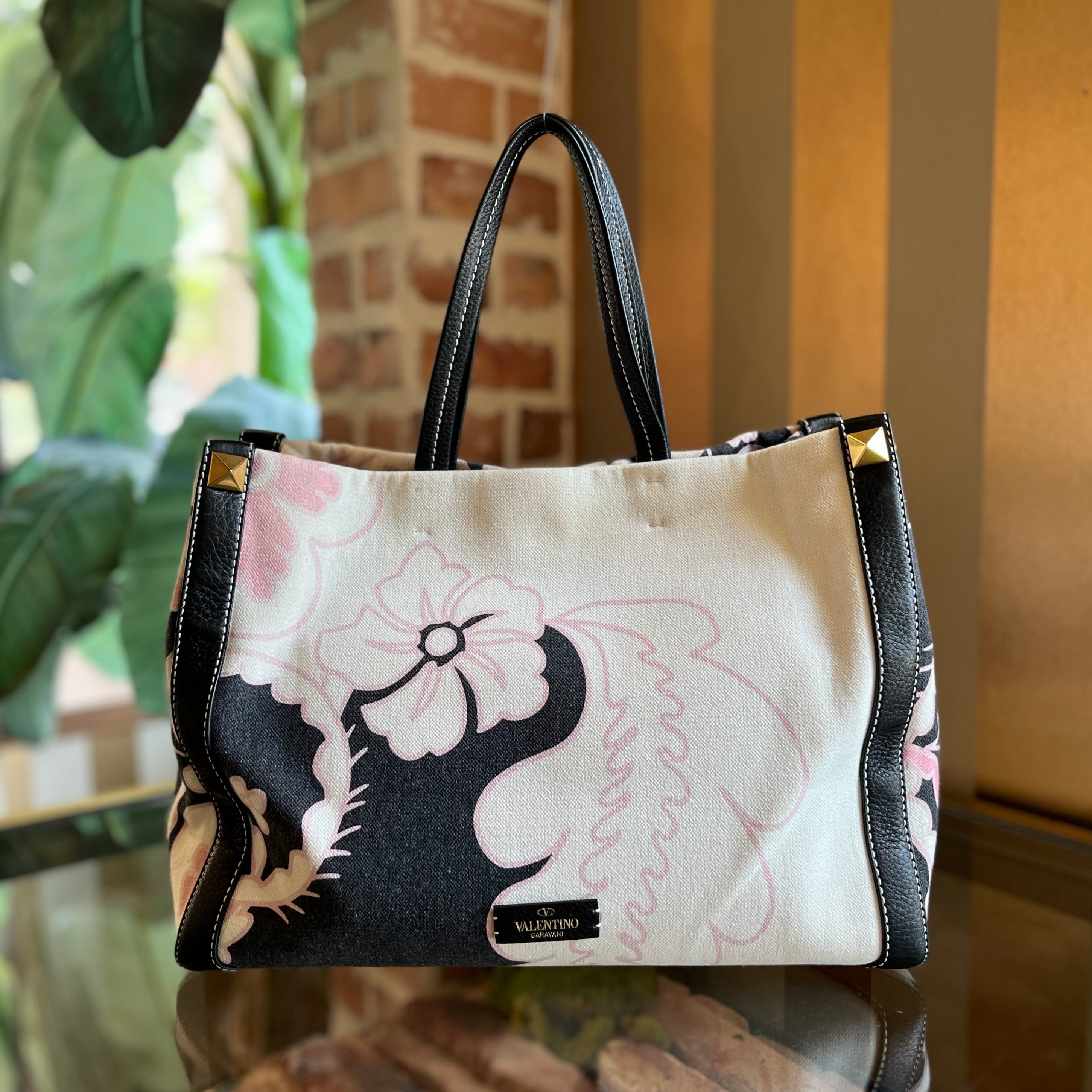 VALENTINO Floral Print Canvas Tote Second-Hand Collections