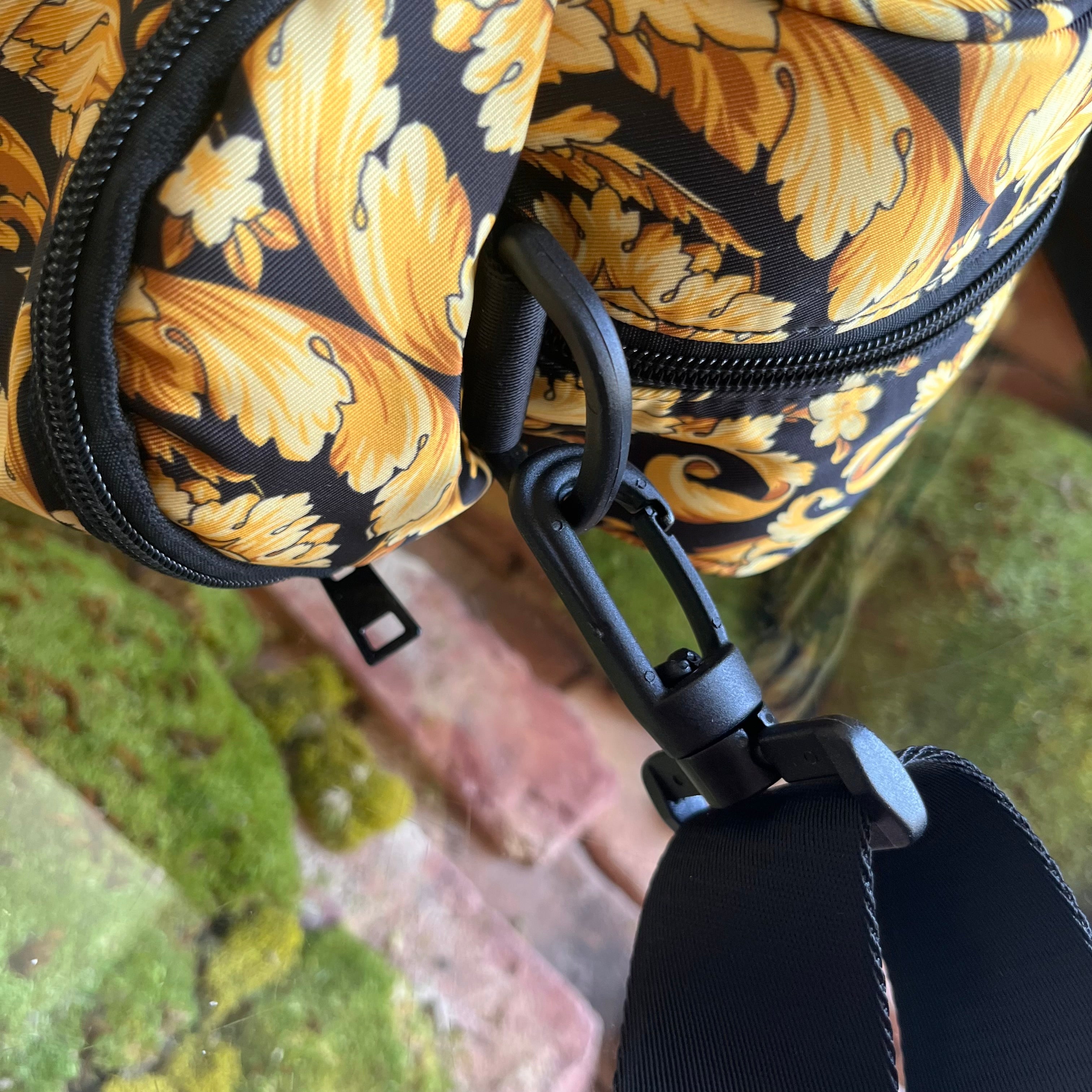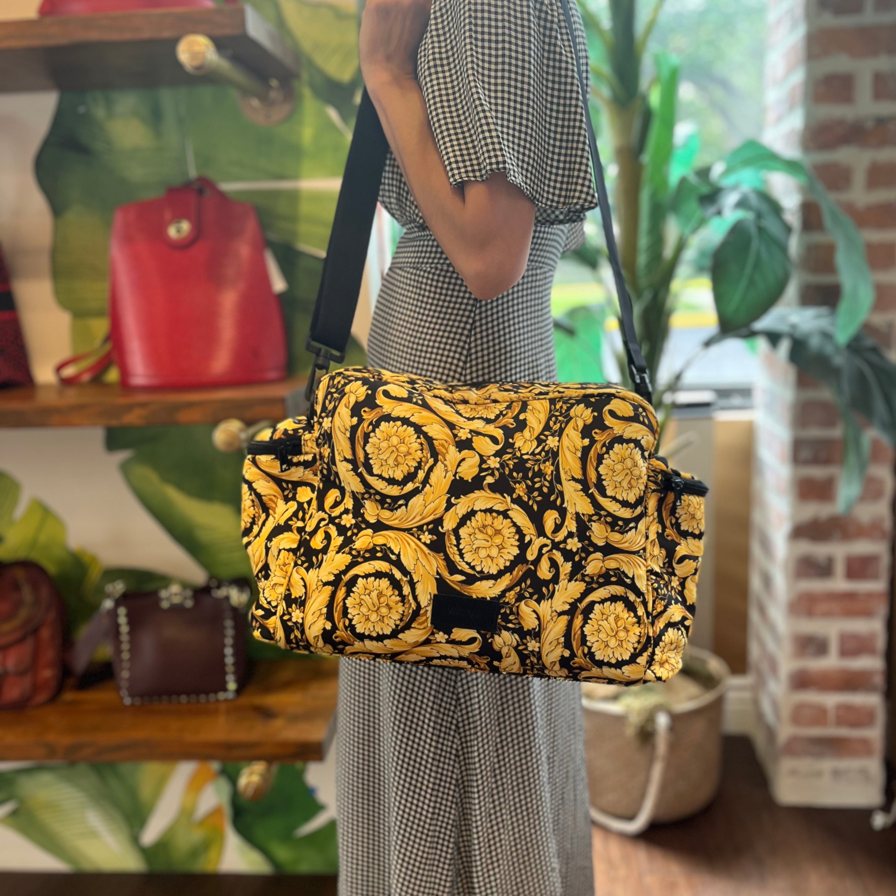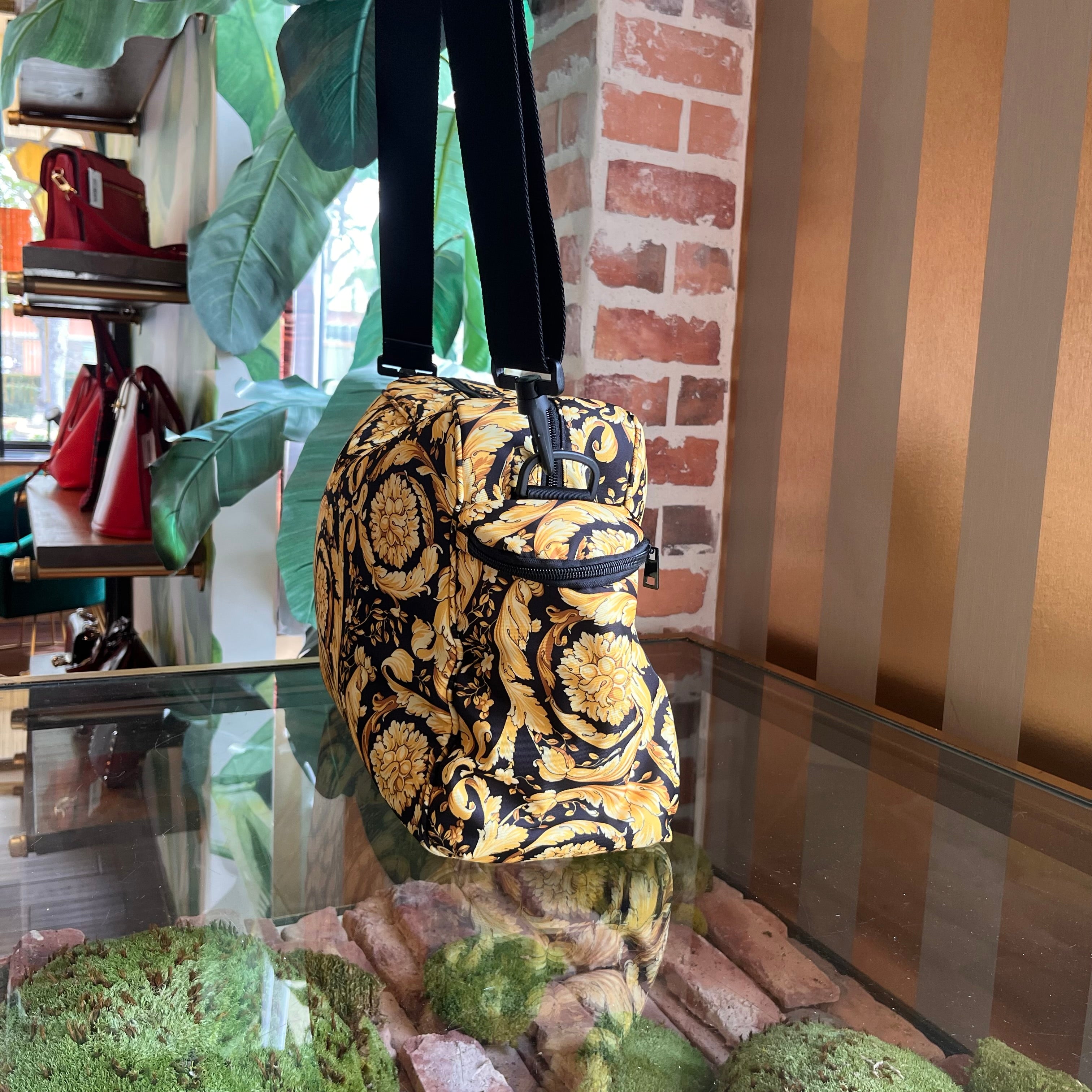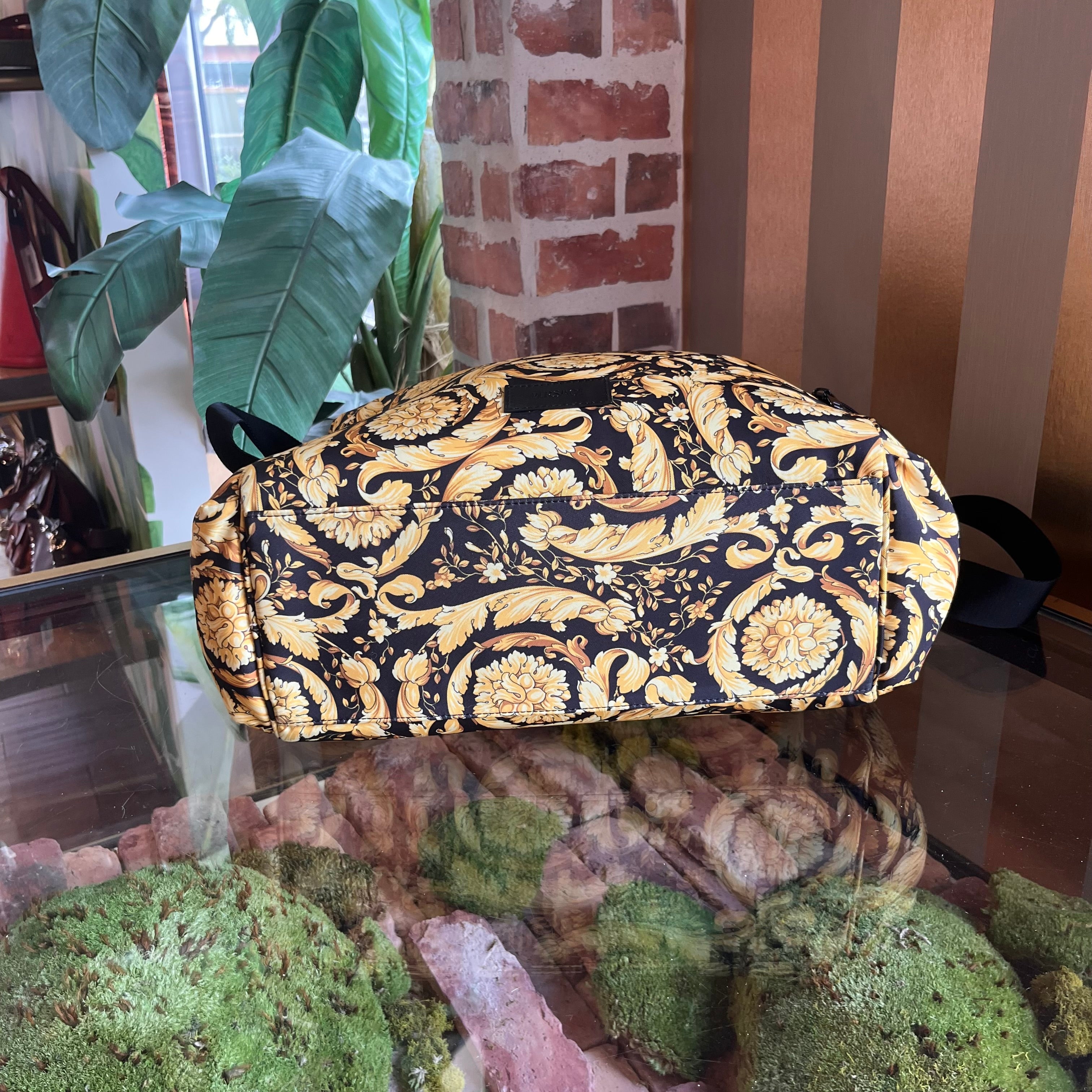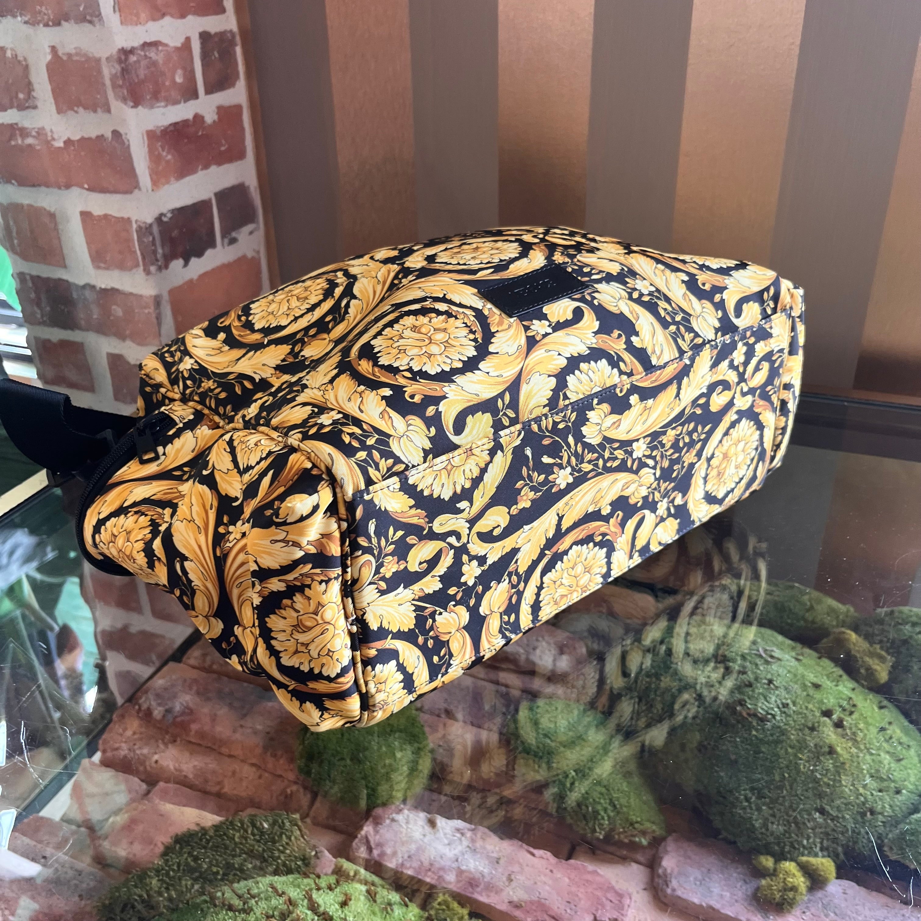 VERSACE Black Gold Nylon Baroque Diaper Bag