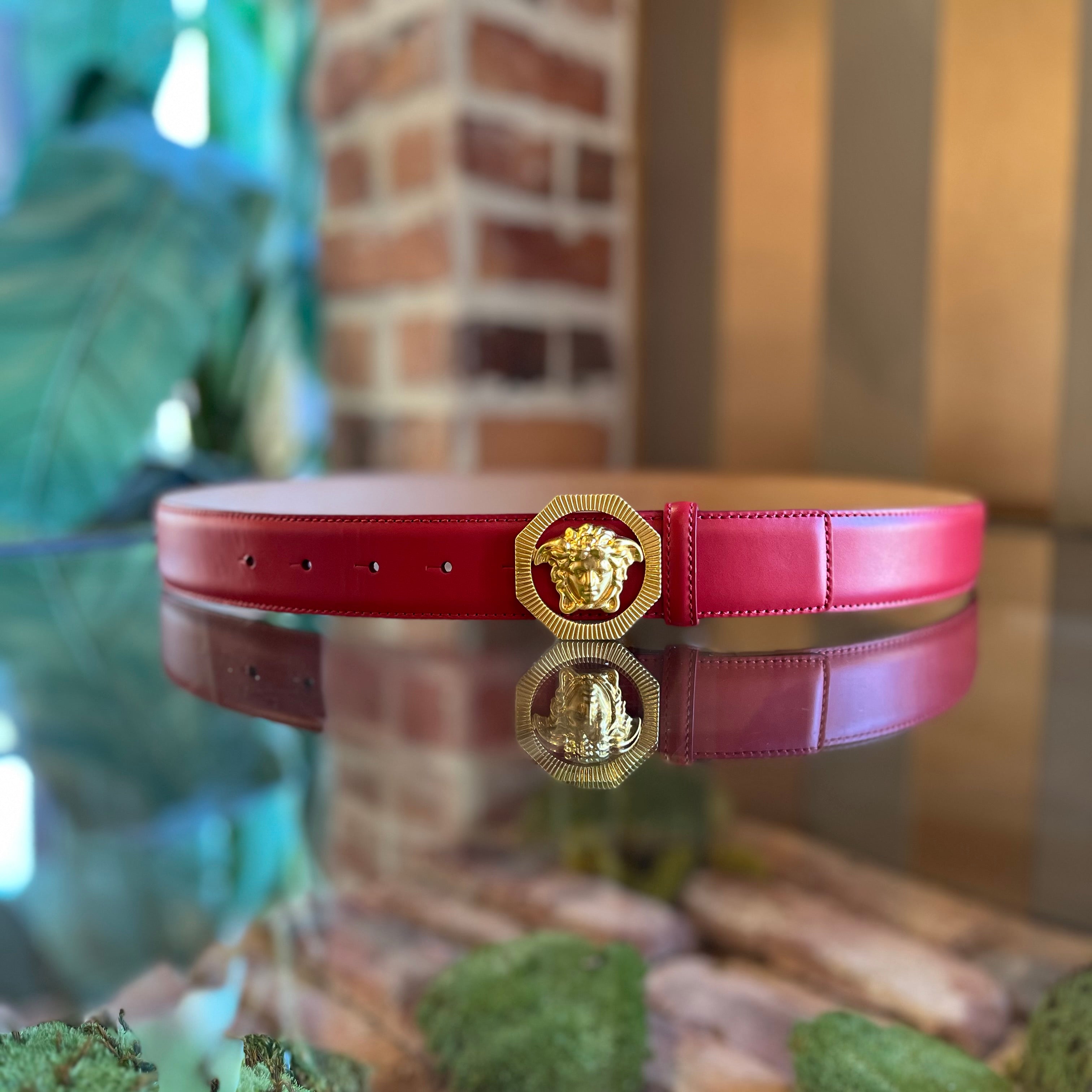 VERSACE Hexagon Medusa Buckle Red Leather Belt 100/4 (SZ XL)