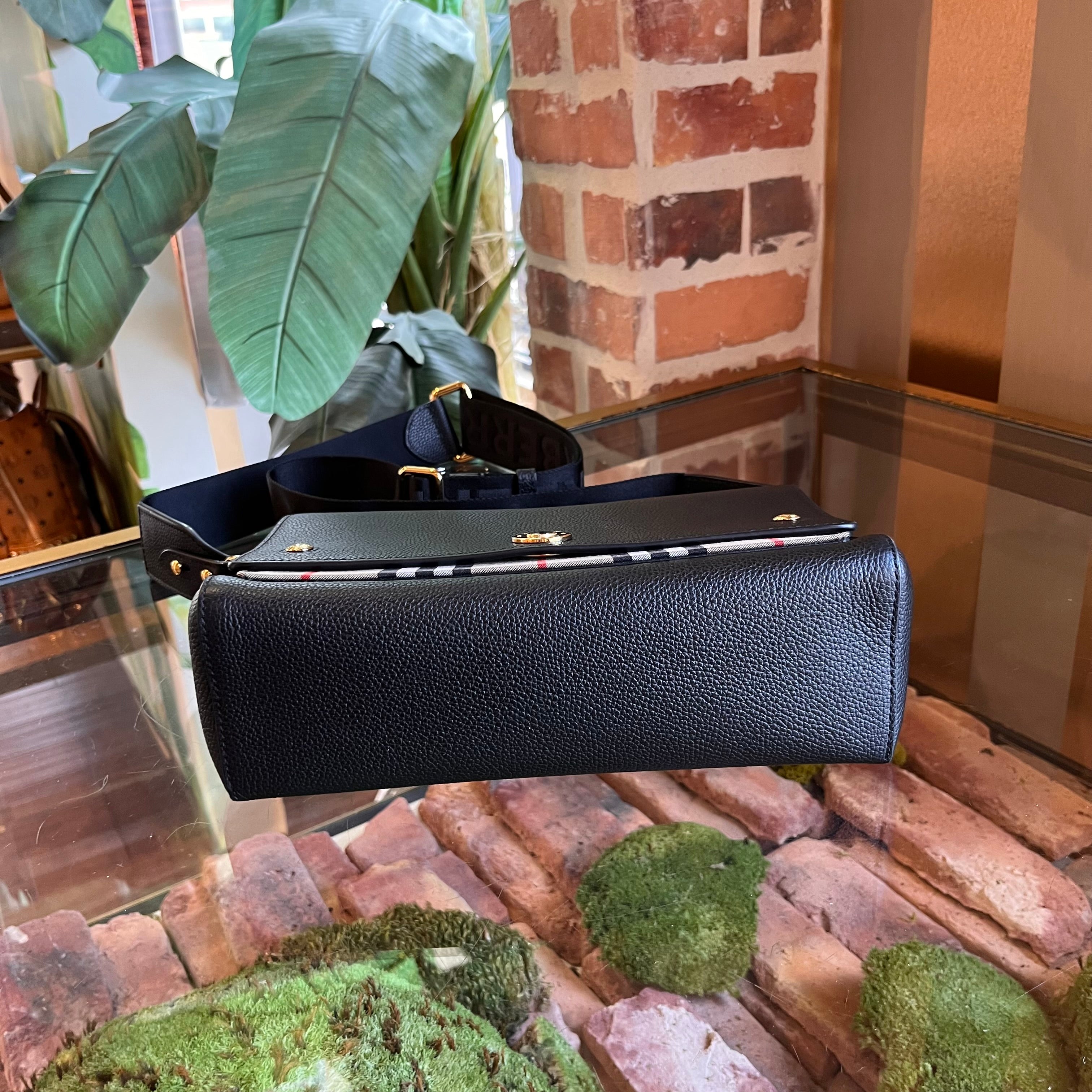 BURBERRY Note Medium Vintage Check Black Leather Crossbody Bag