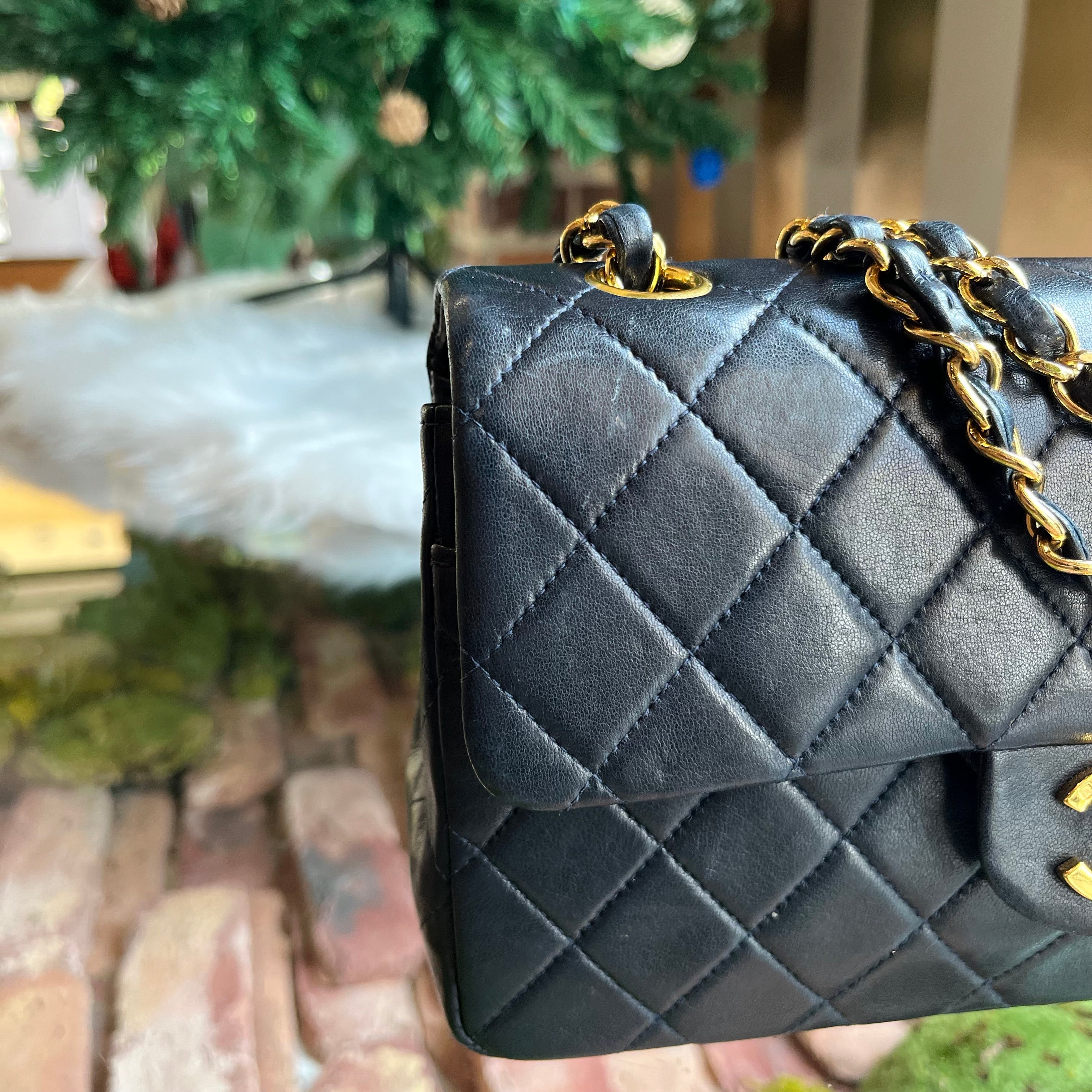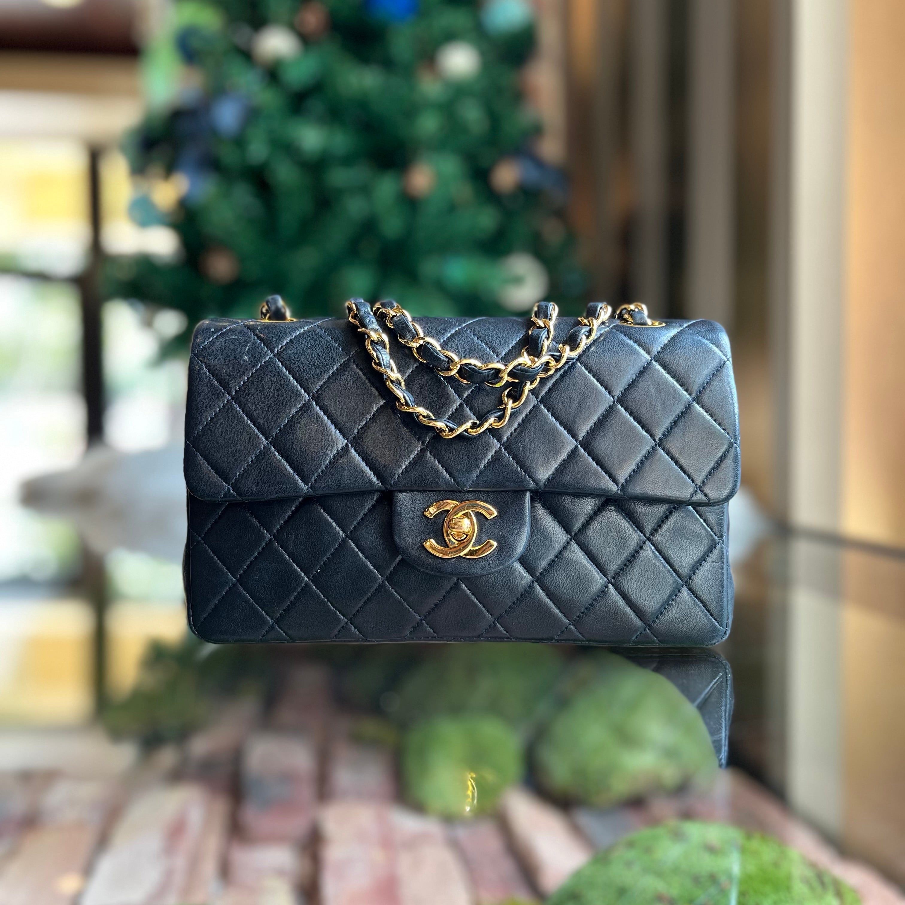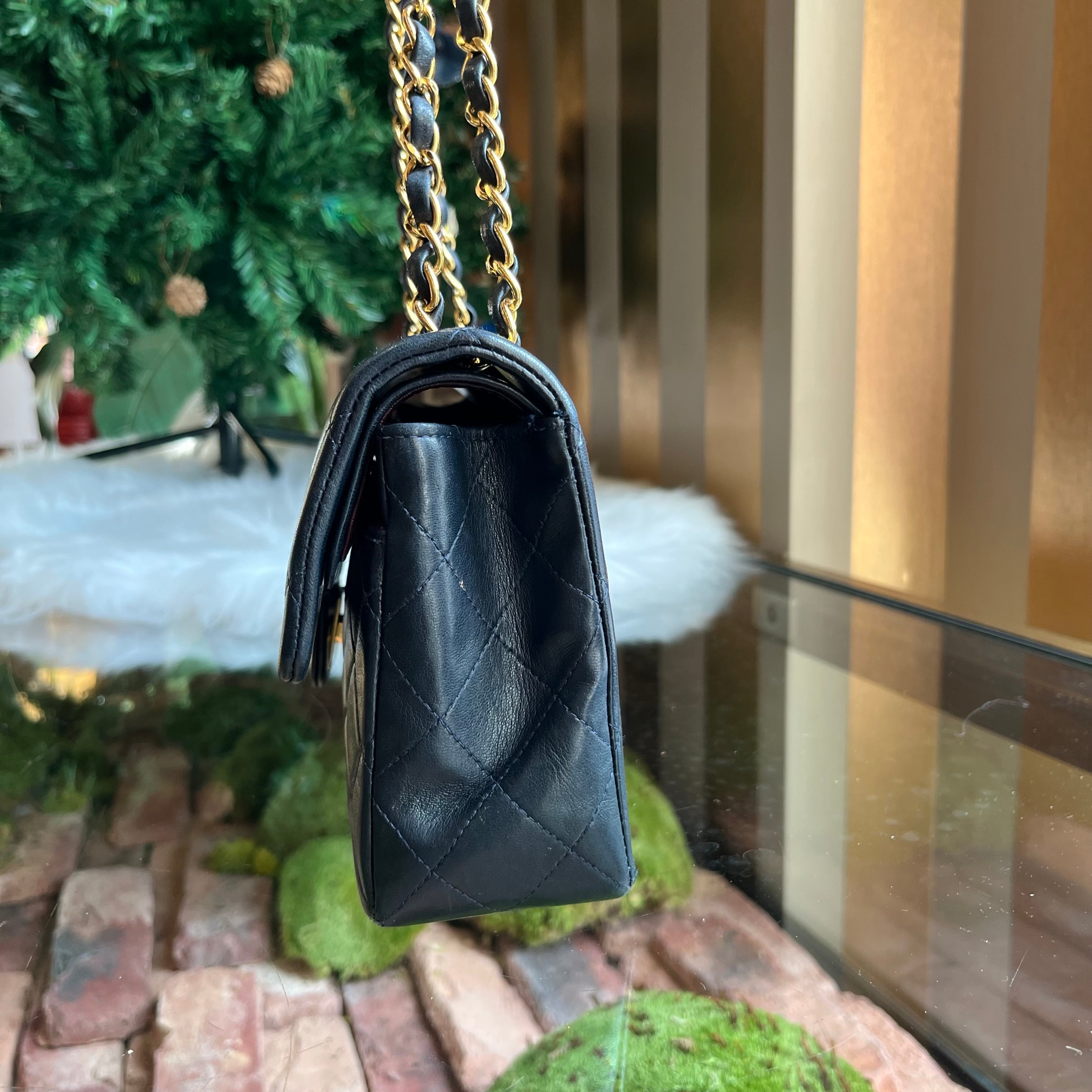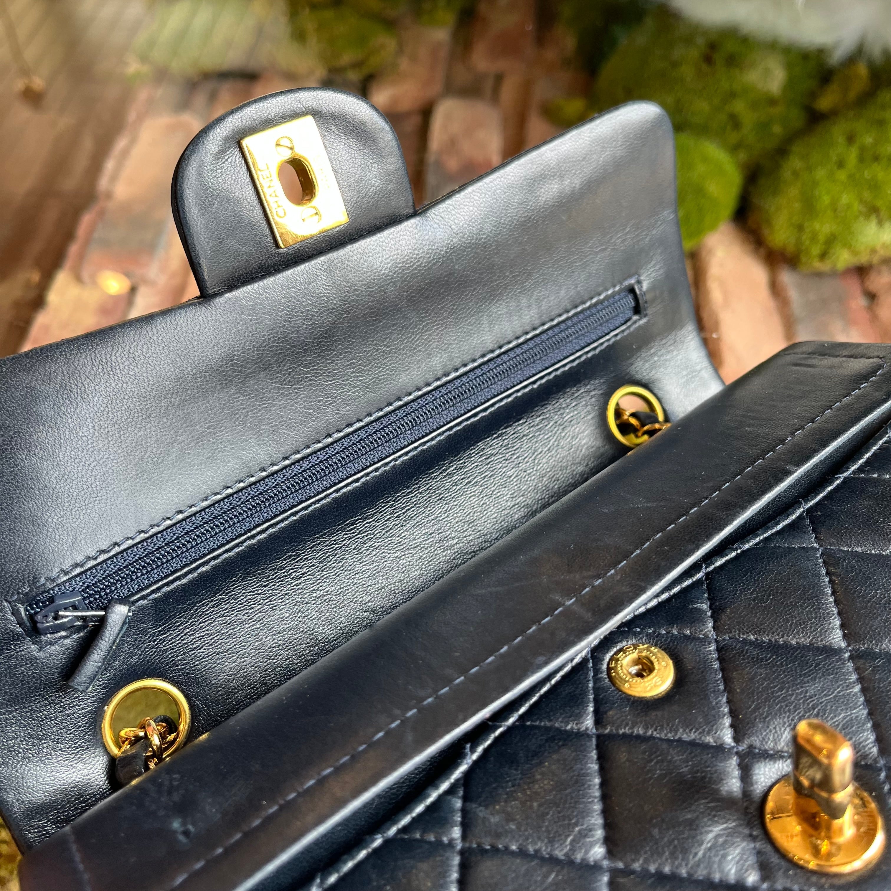 CHANEL Double Flap Small Navy Blue Quilted Lambskin Vintage Shoulder Bag