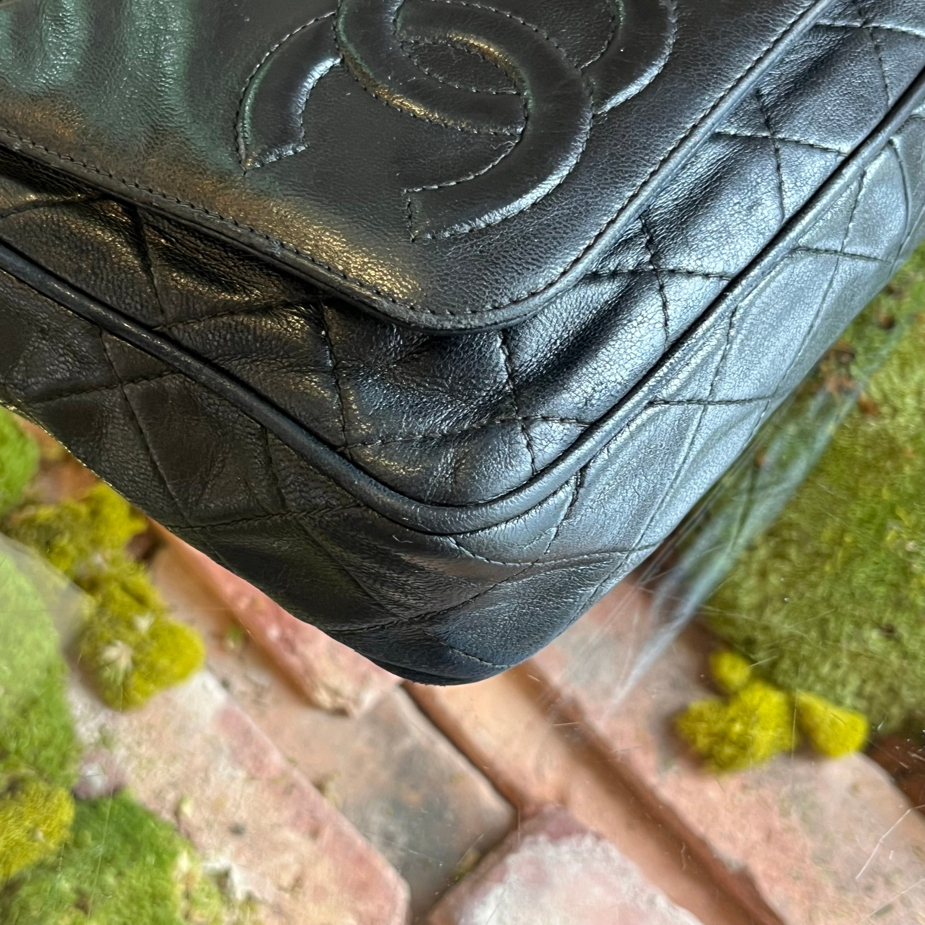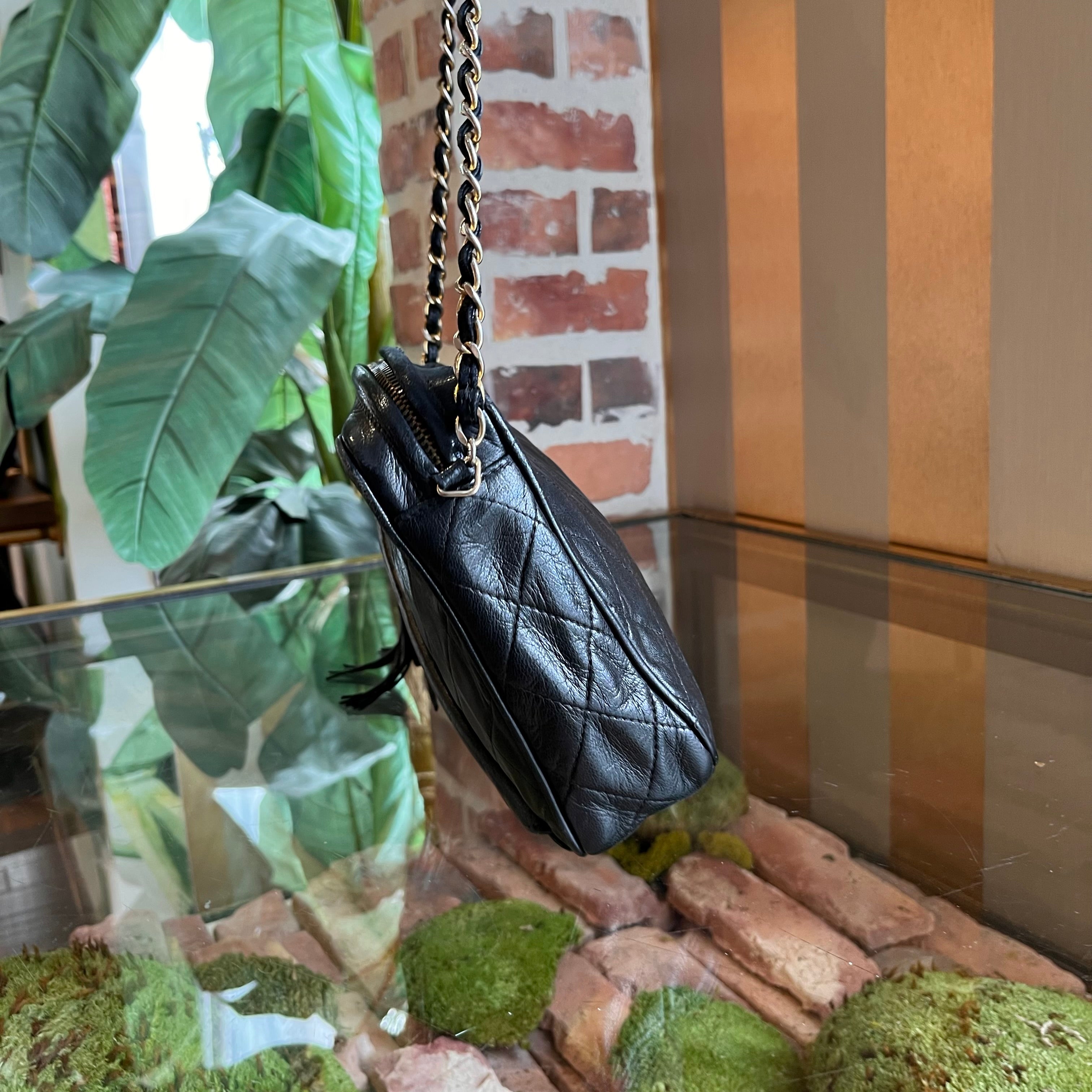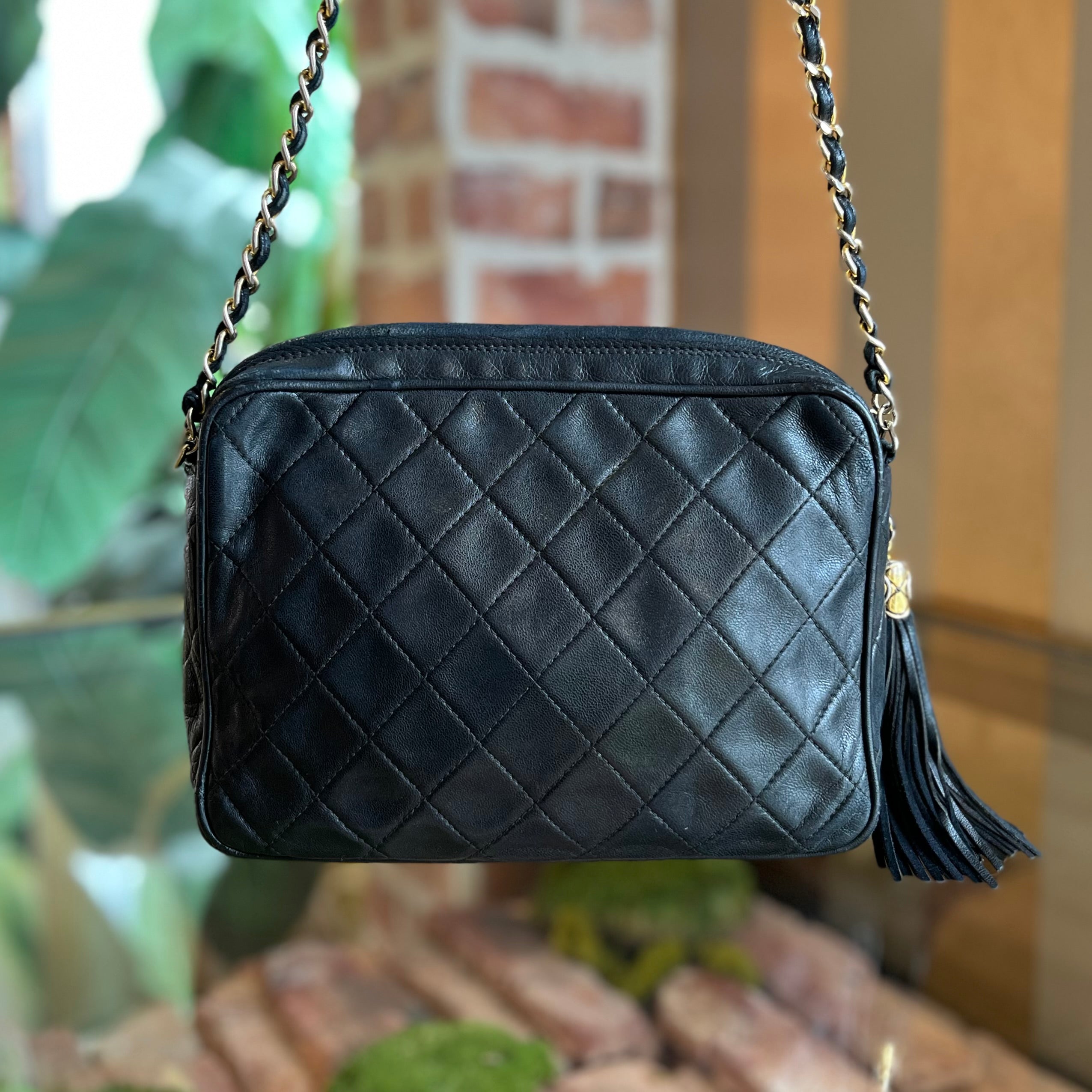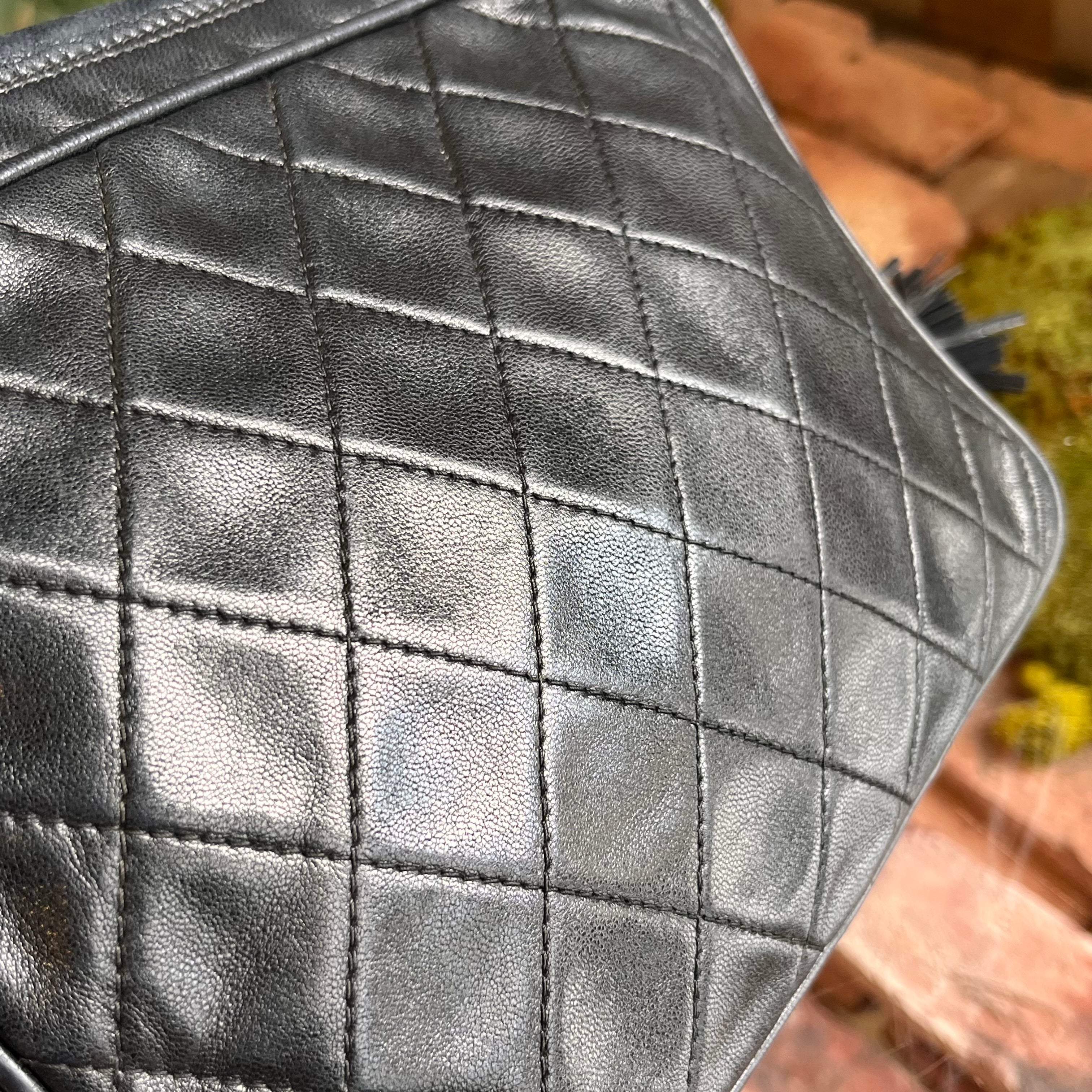 CHANEL Black Quilted Lambskin Front Pocket Tassel CC Vintage Crossbody Bag